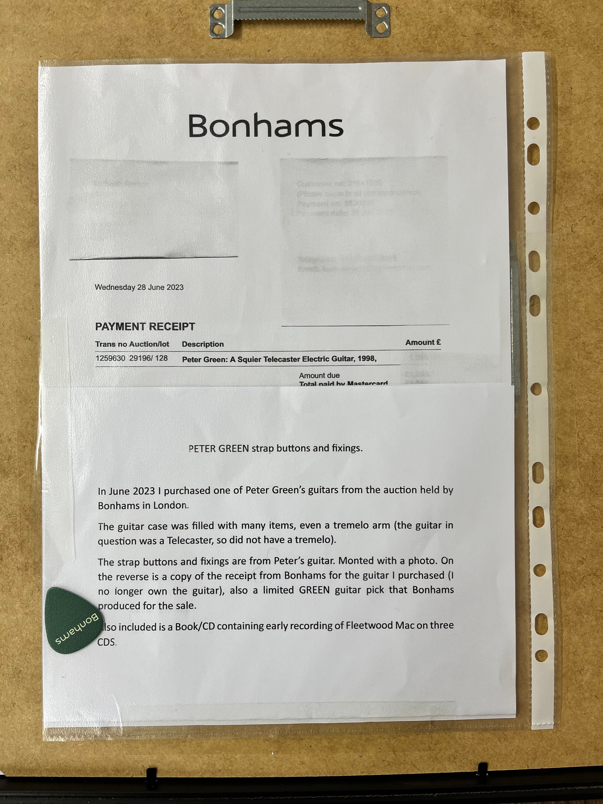 *Sold on behalf of the vendor, who purchased Lot 128 from the Bonhams “Man of the World: The Peter Green Collection” auction on 28th June 2023. Bearing a letter to the reverse concerning the provenance and a copy of the auction lot receipt. Sold with a book and three CD set of early Fleetwood Mac recordings
