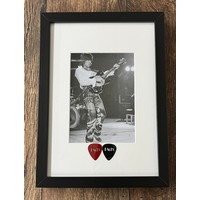 Peter Green - strap buttons with related fixings from one of Peter Green's personal guitars, mounted and framed with a photograph of Green