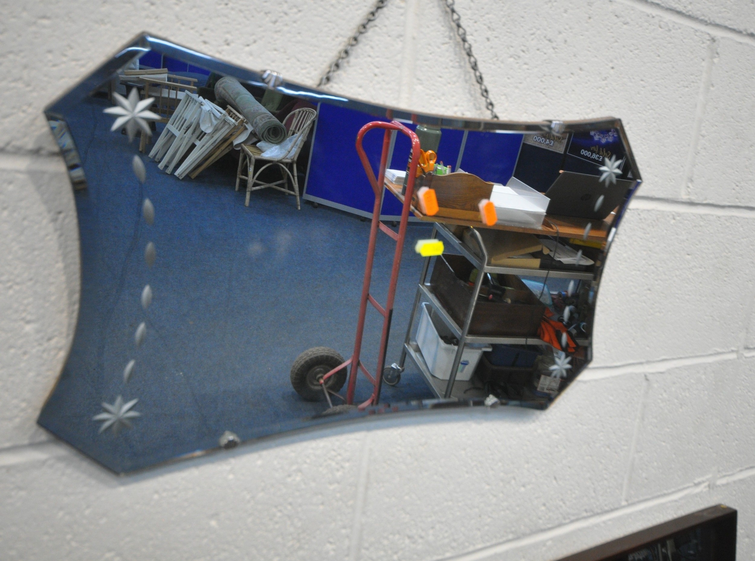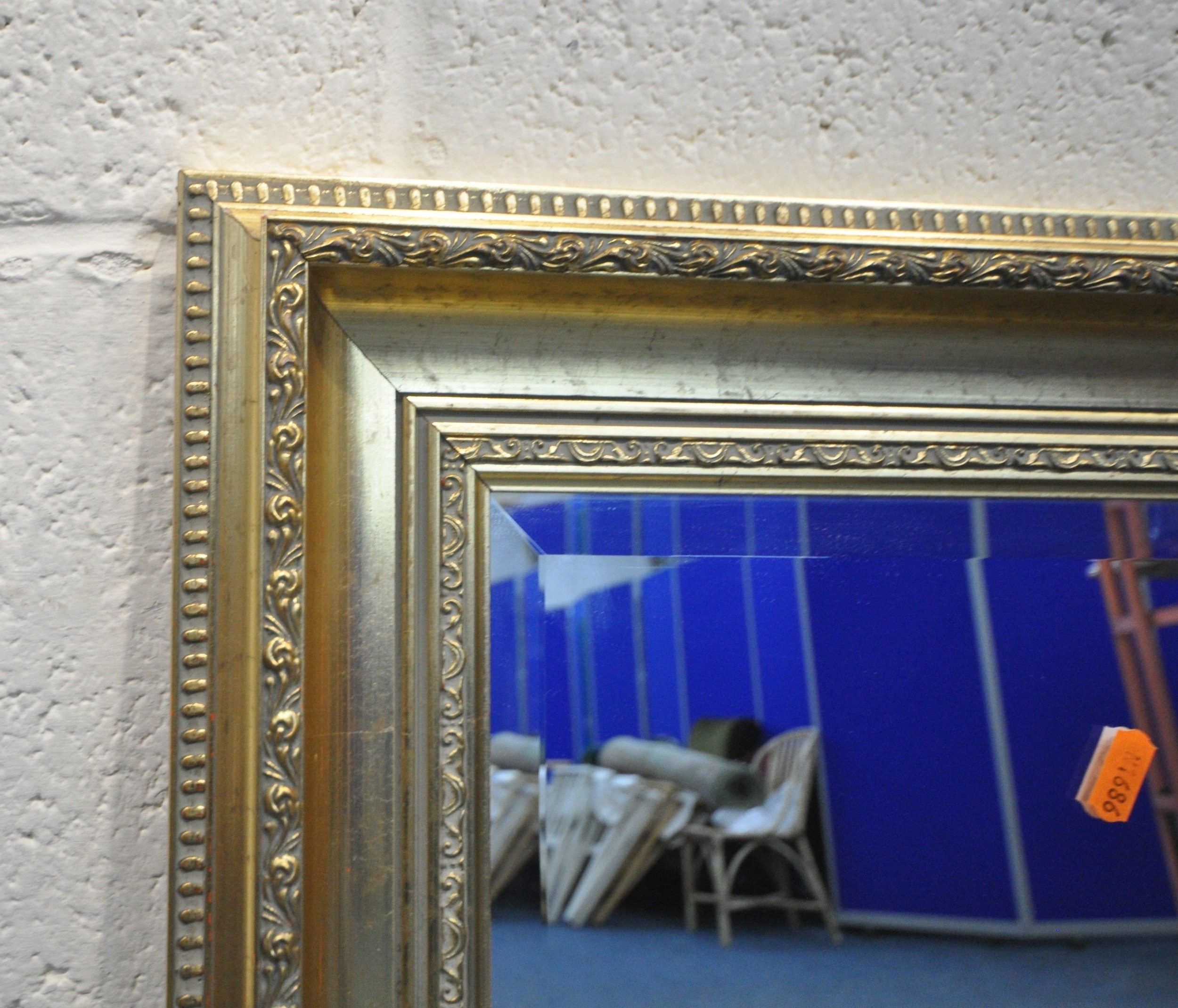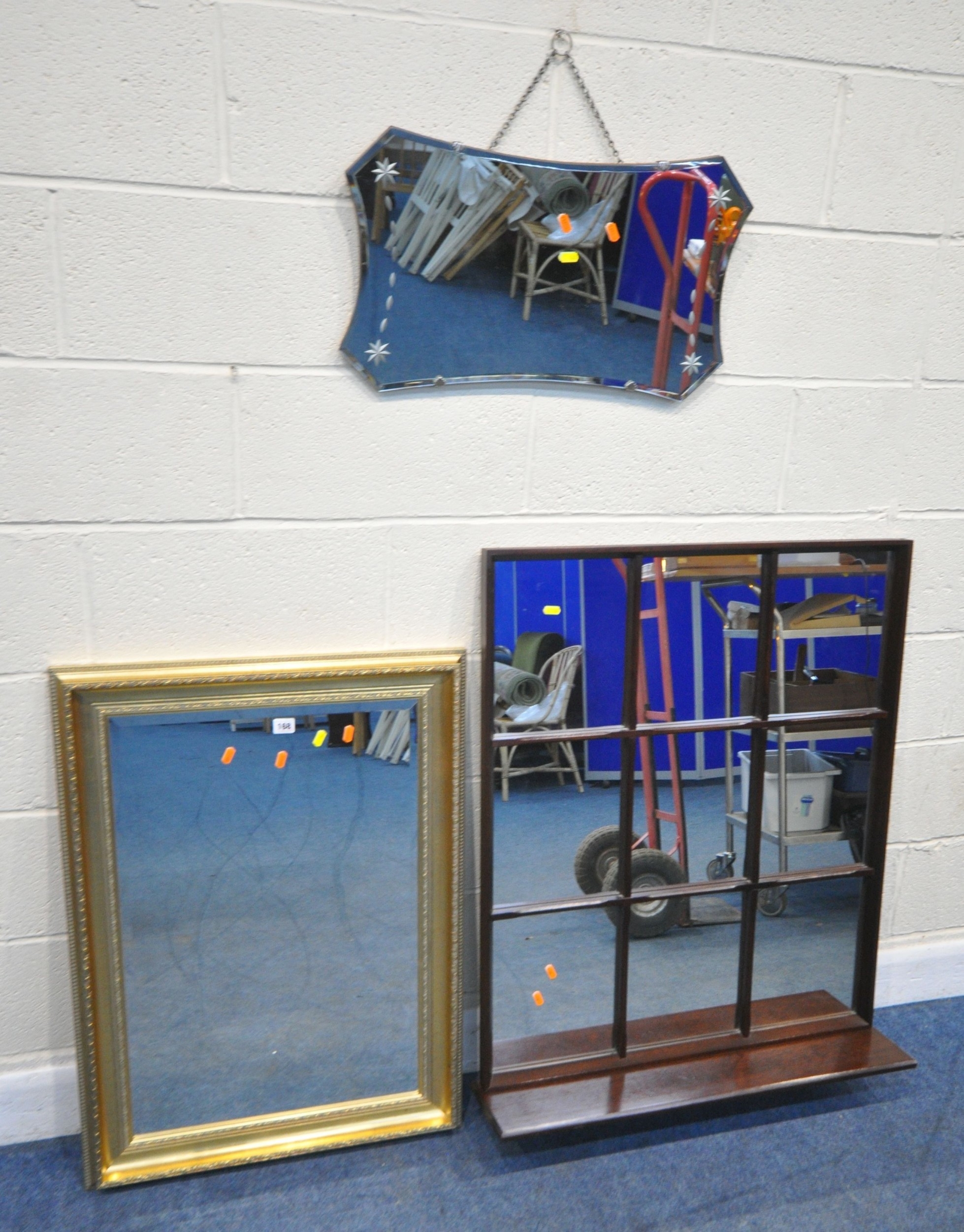 A GILT WOOD FRAMED BEVELLED EDGE WALL MIRROR, 88cm x 65cm, along with two other mirrors, condition report: overall good condition (3)