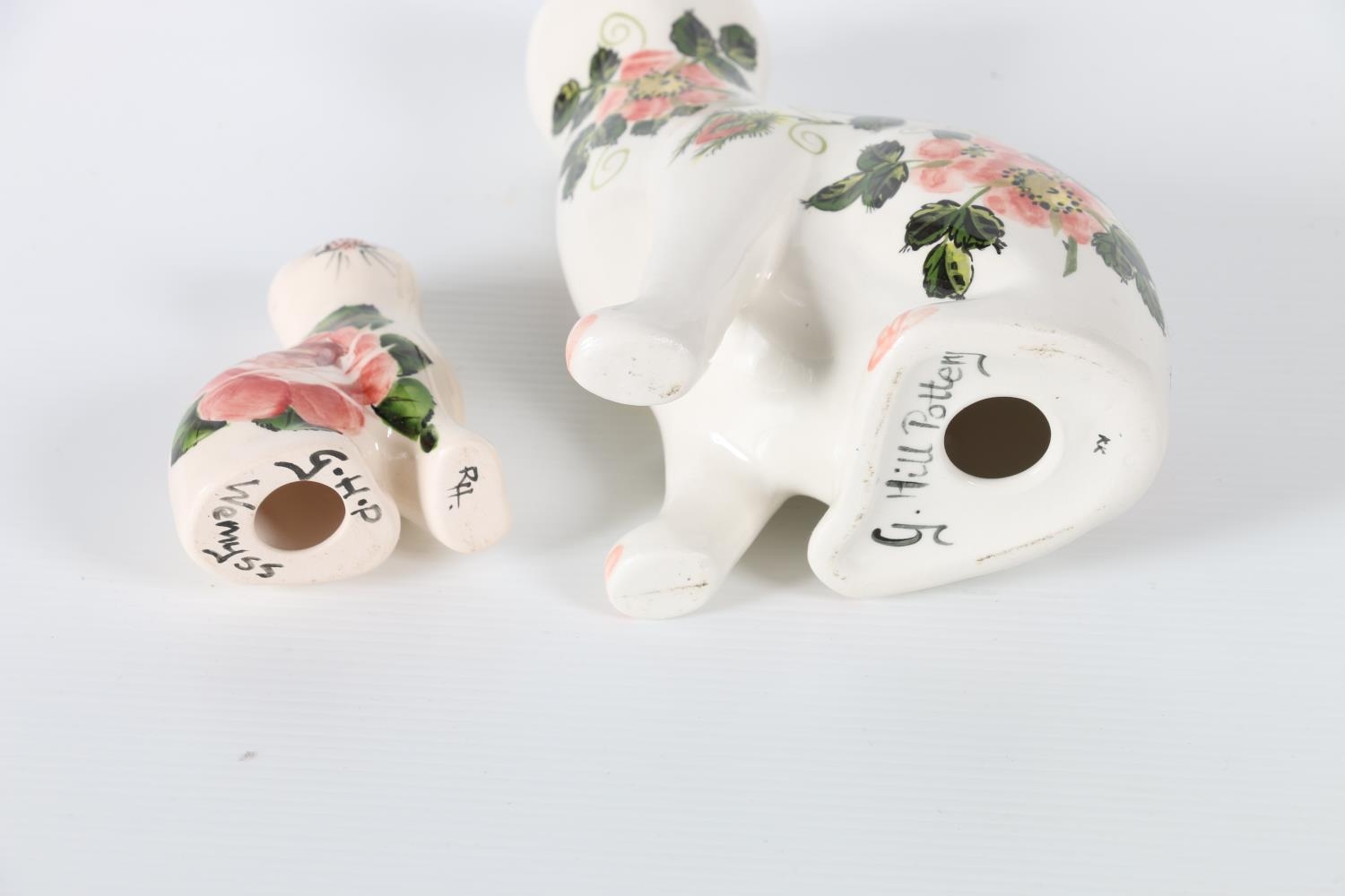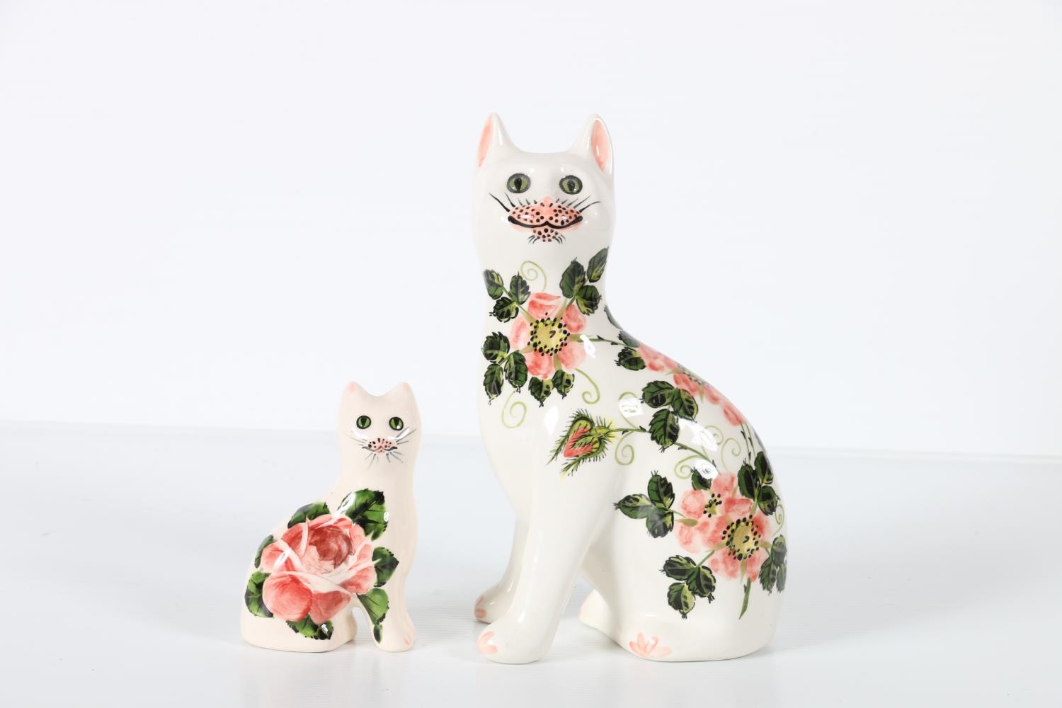Two Griselda Hill Pottery Wemyss style Galle style cats, 18cm and 8cm tall, (2).