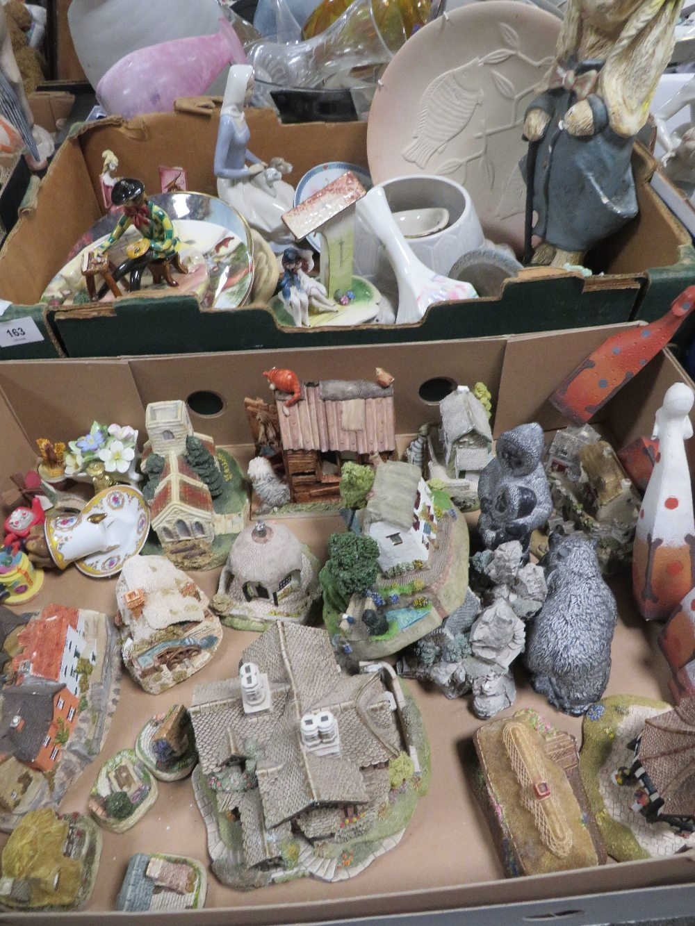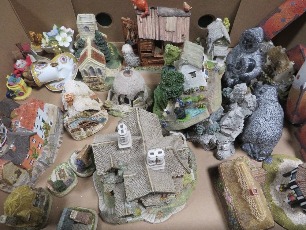 Two trays of assorted ceramics to include Lilliput Lane Cottages, some A/F