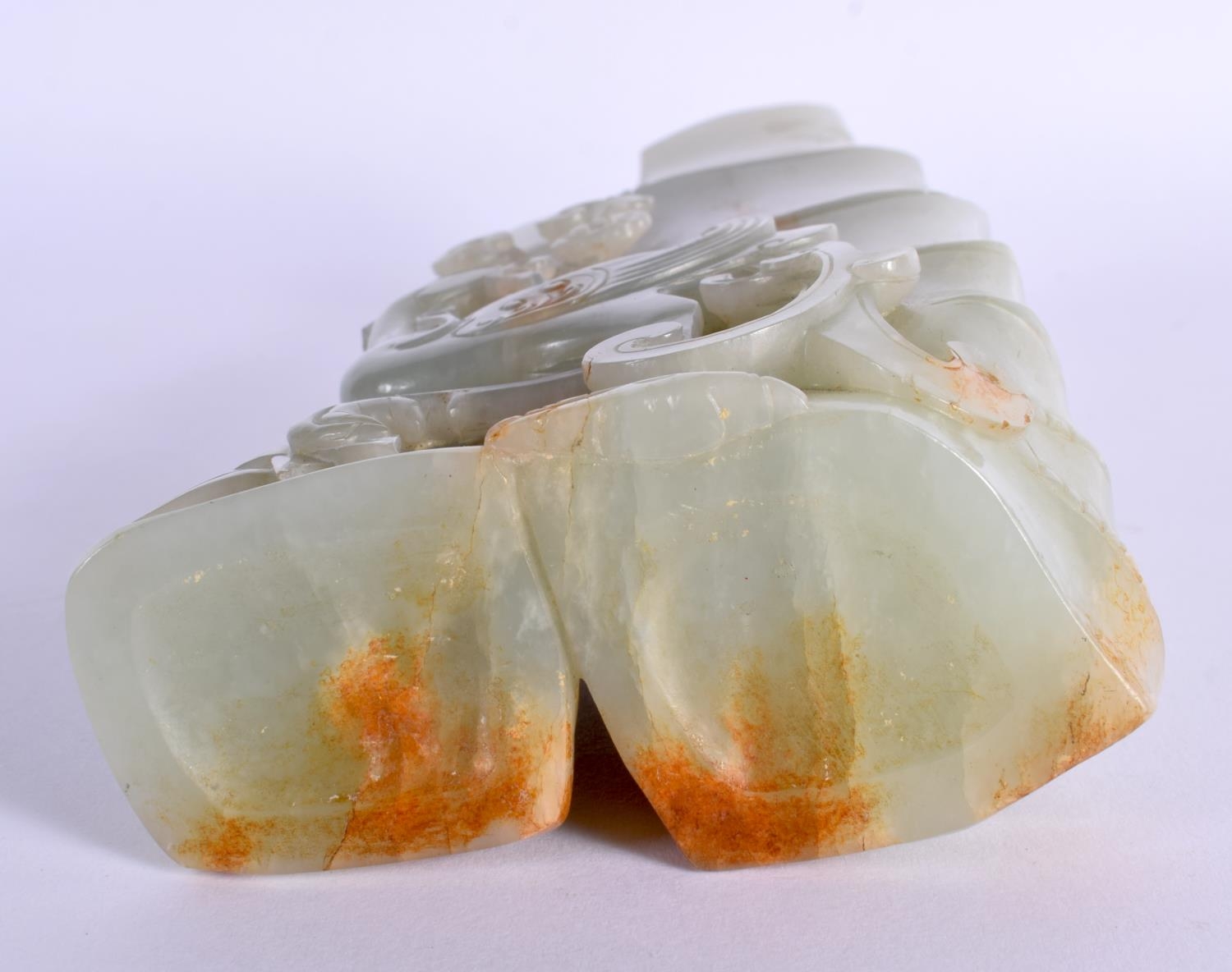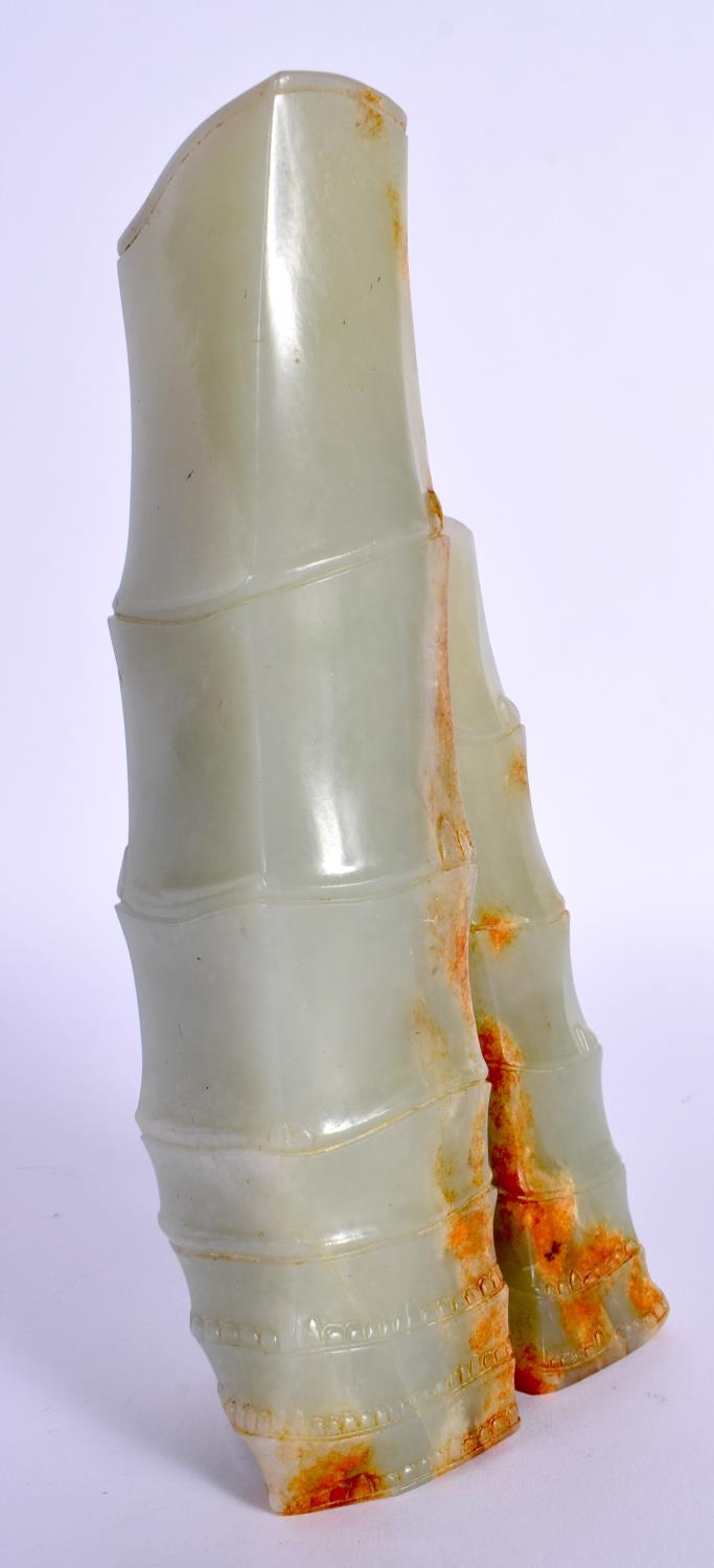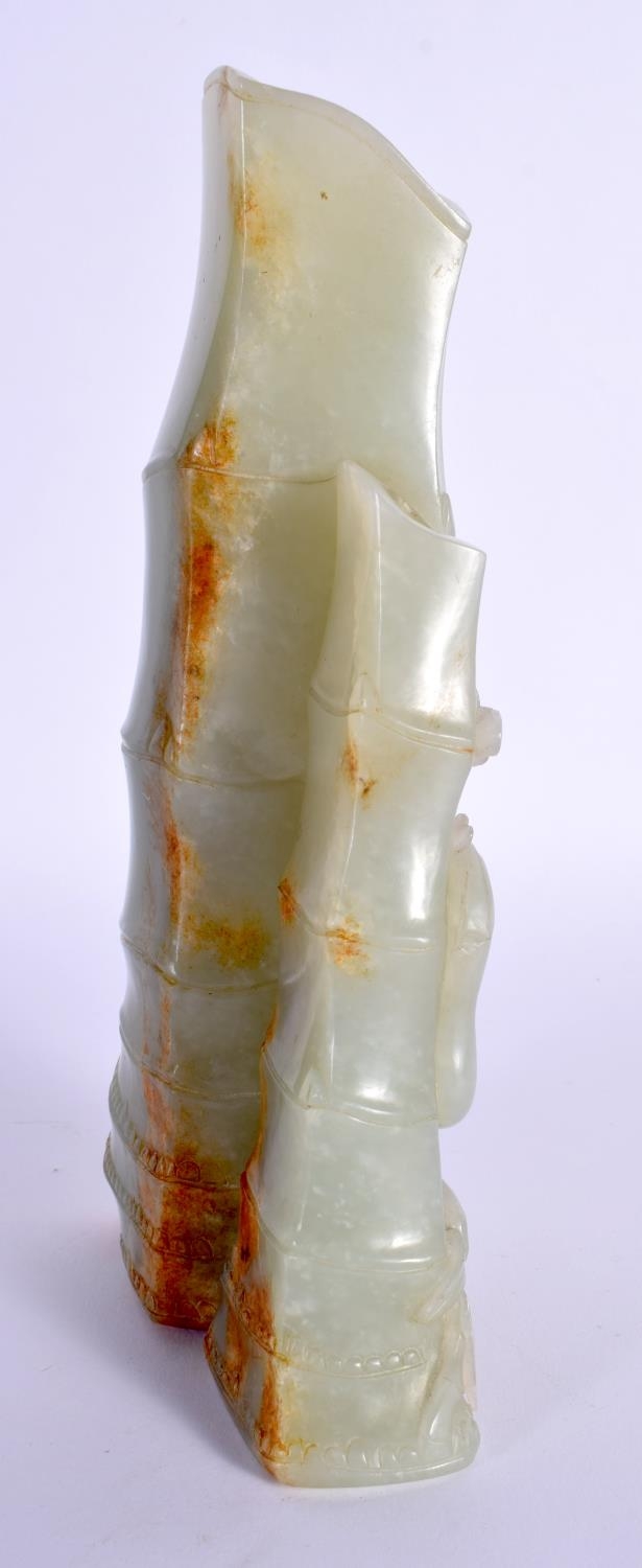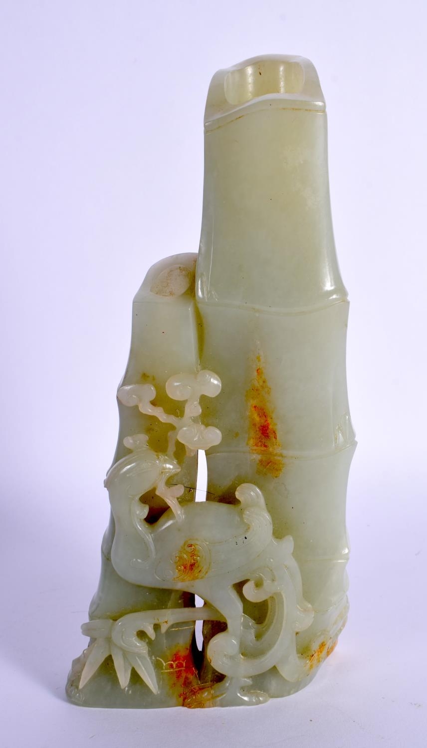 A FINE 19TH CENTURY CHINESE CARVED GREEN JADE VASE Qing overlaid with phoenix birds and lingzhi fungus. 18 cm x 9 cm.