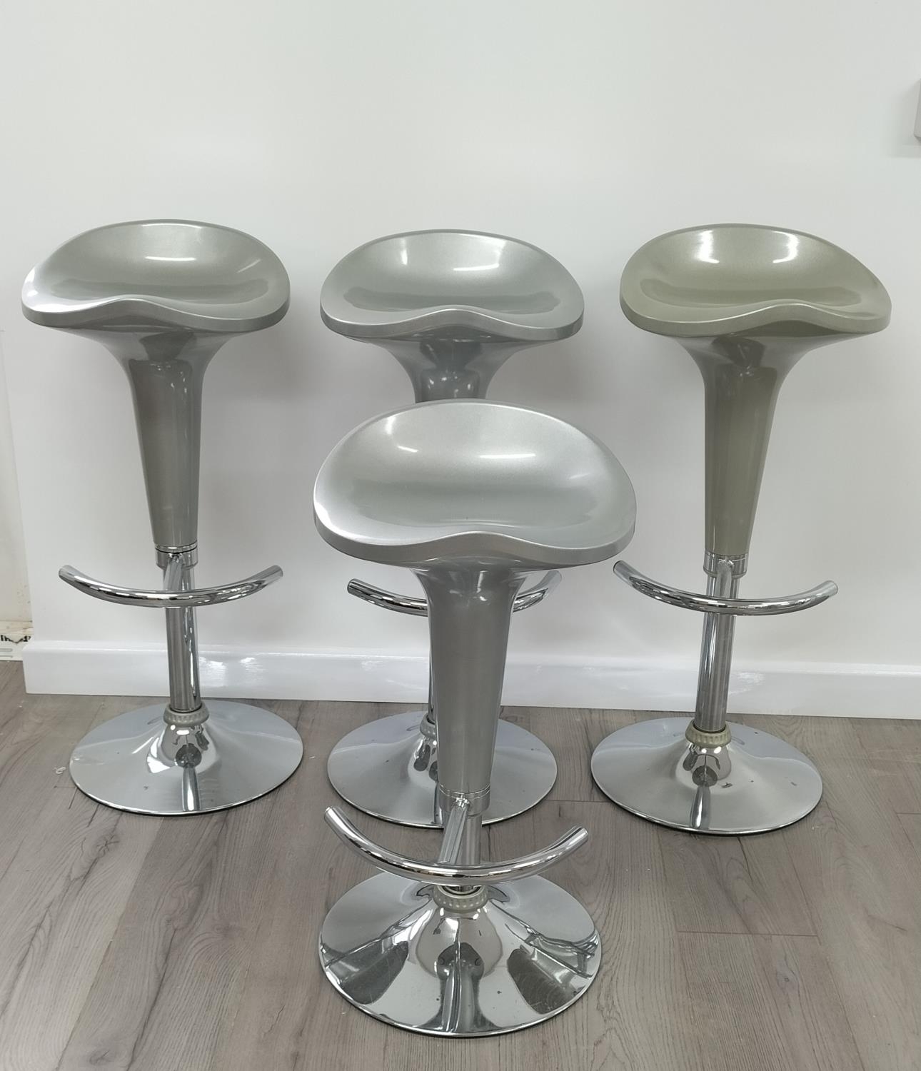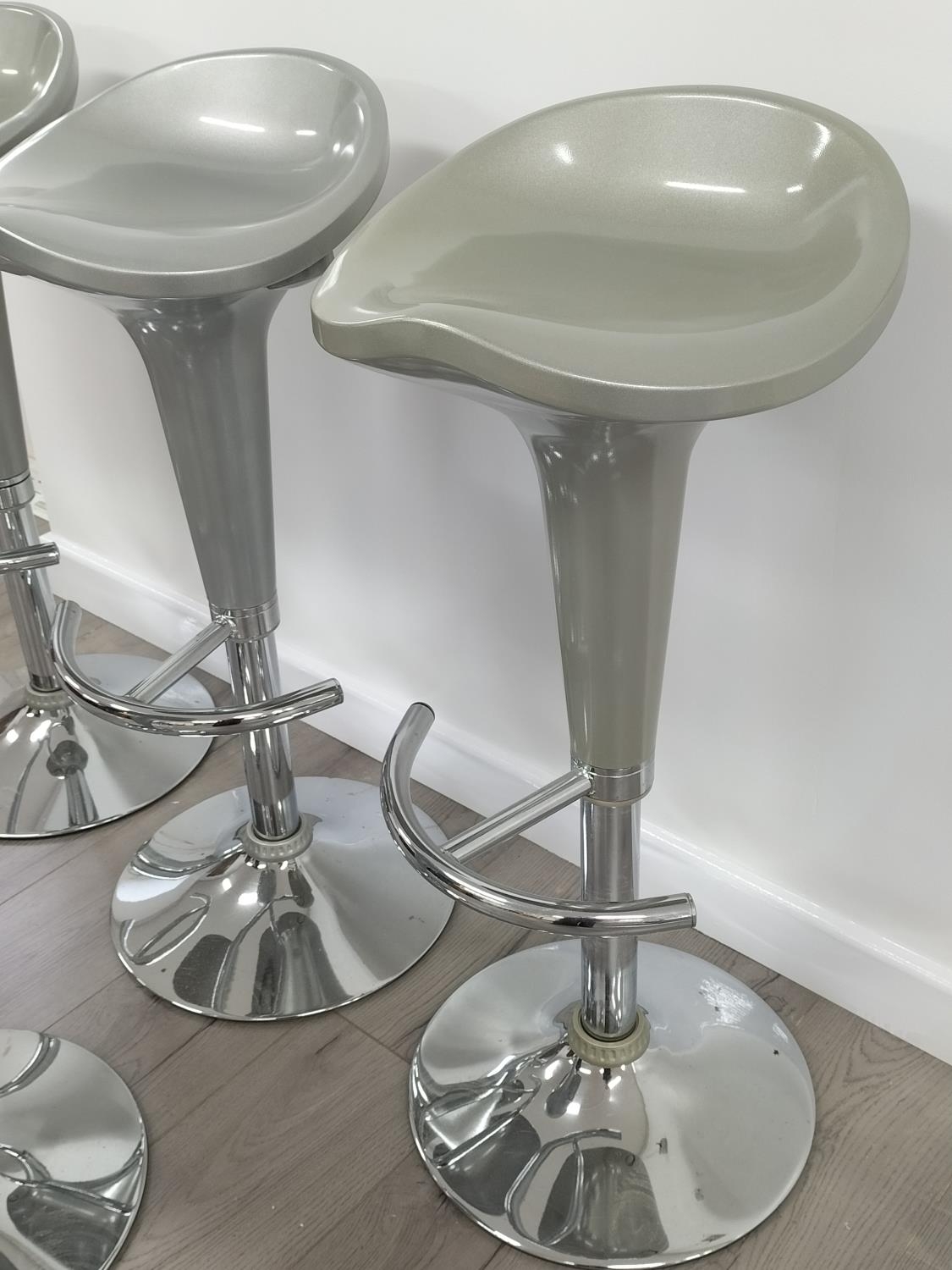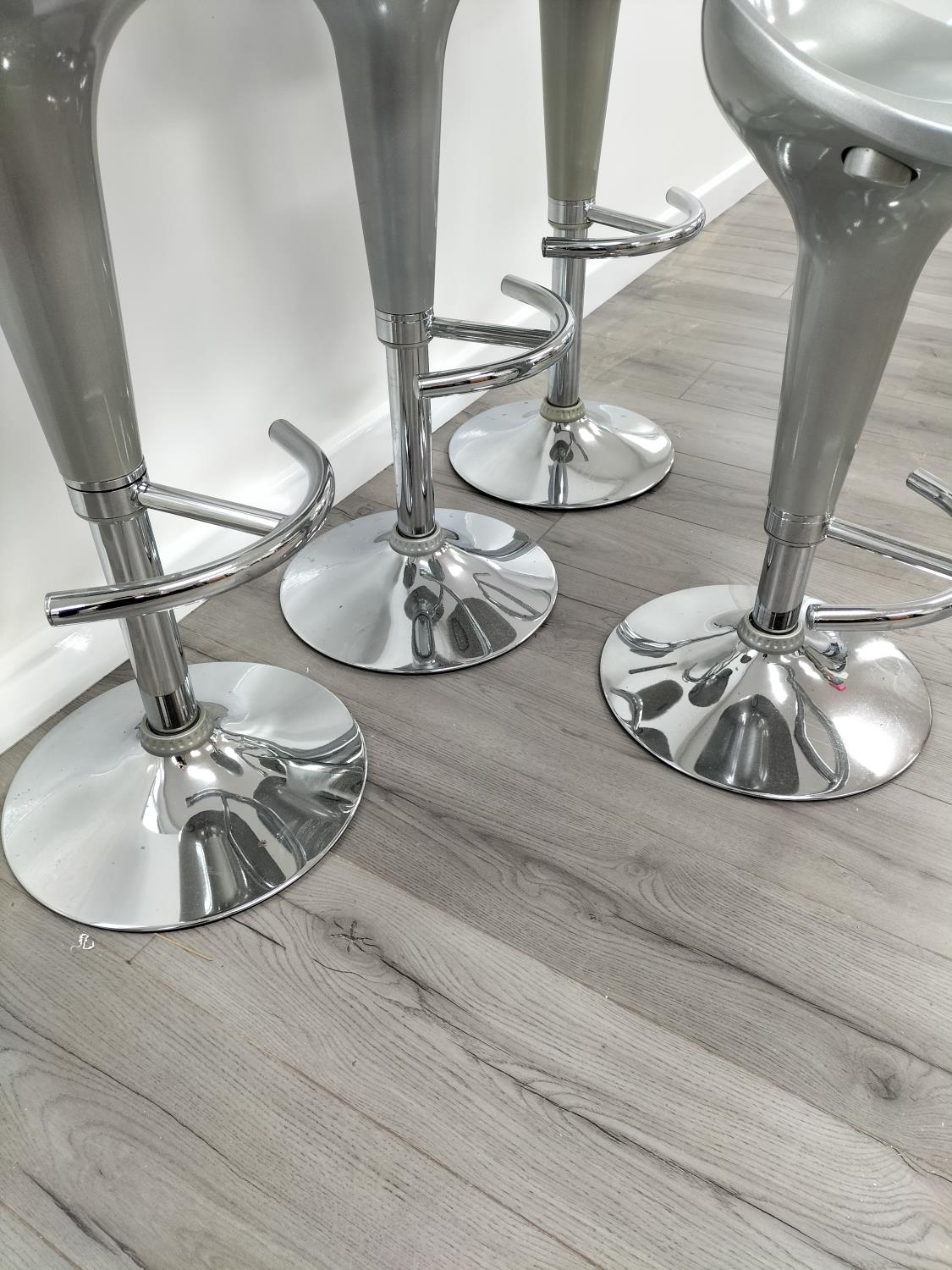 4 x Modern Silver Coloured Air Adjustable Bar/Breakfast Bar Chairs. Full Height 86cm. Collection Only.