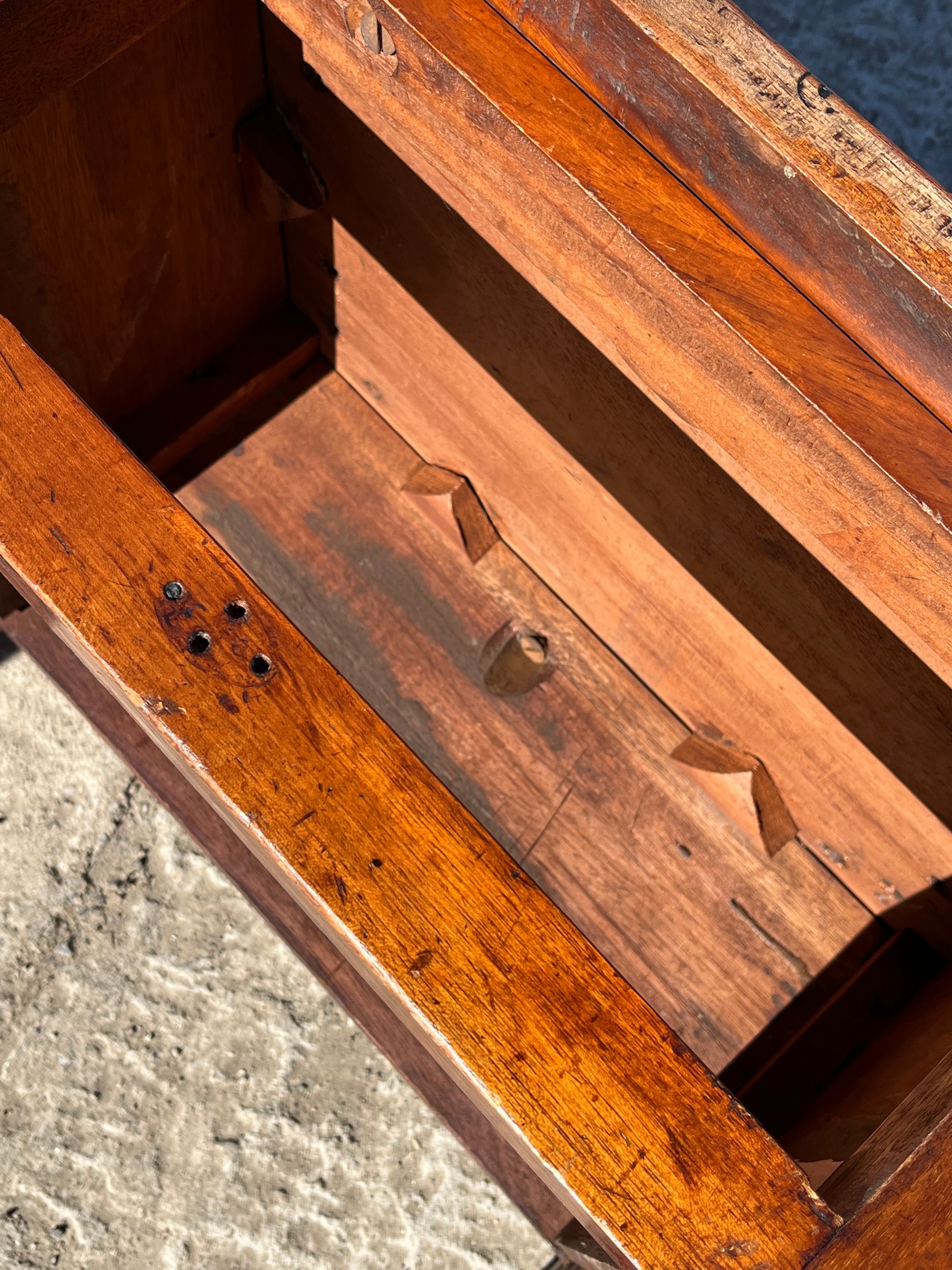 Hall table probably used for a sewing machine hence the holes in the surface