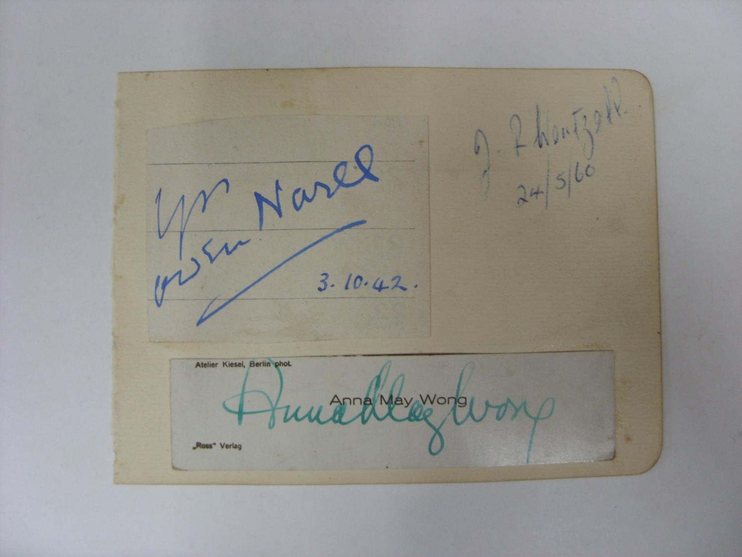 ACTRESS AUTOGRAPH, 1919-1961, Anna May Wong, Mounted original Signature, Mounted to 11cm x 8cm Album Page, with Two other unknown signatures, Anna was an American Actress, considered to be the first Chinese American Hollywood Movie Star. Estimate: £35/£40 - Opening Bid: £30