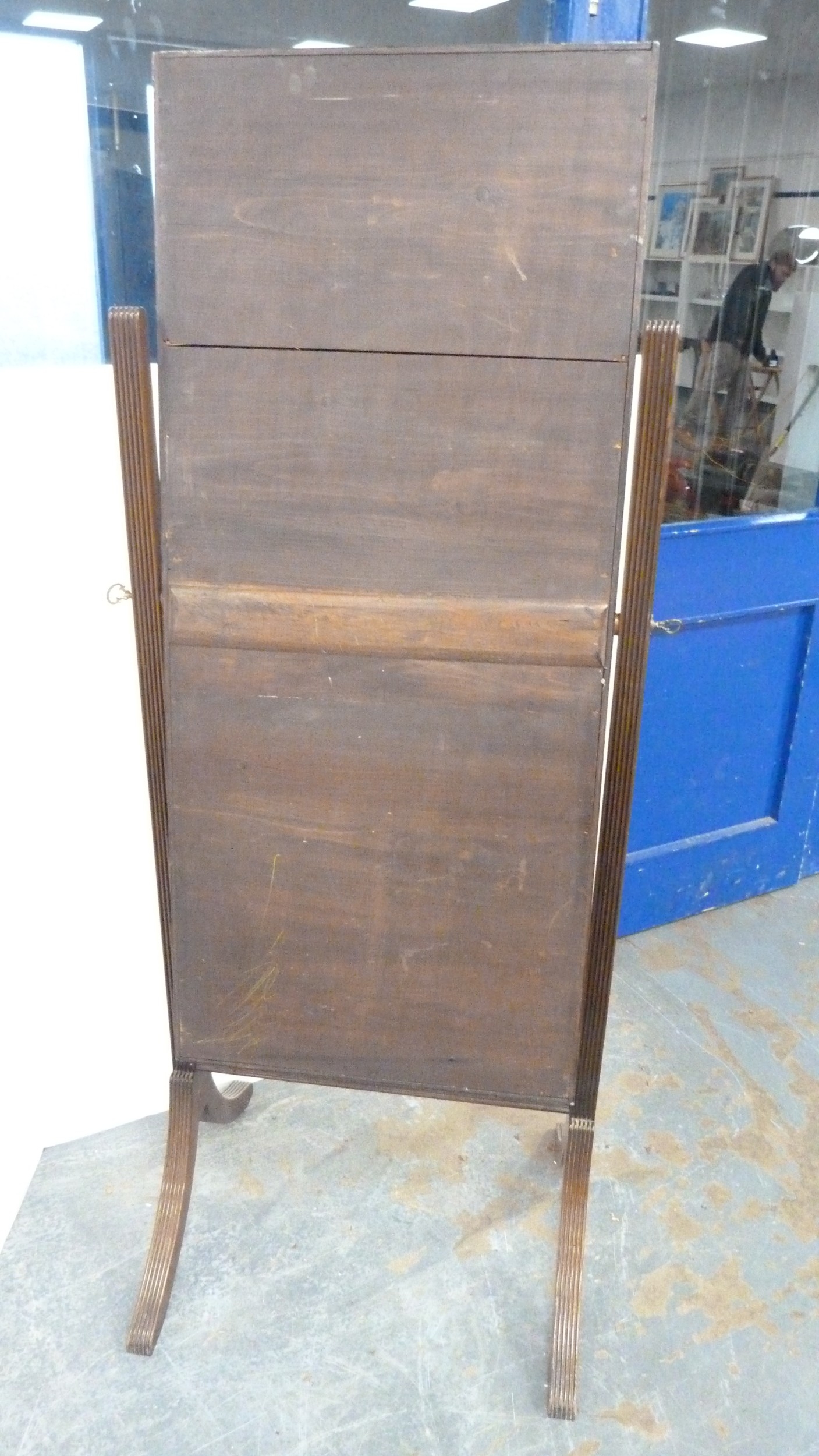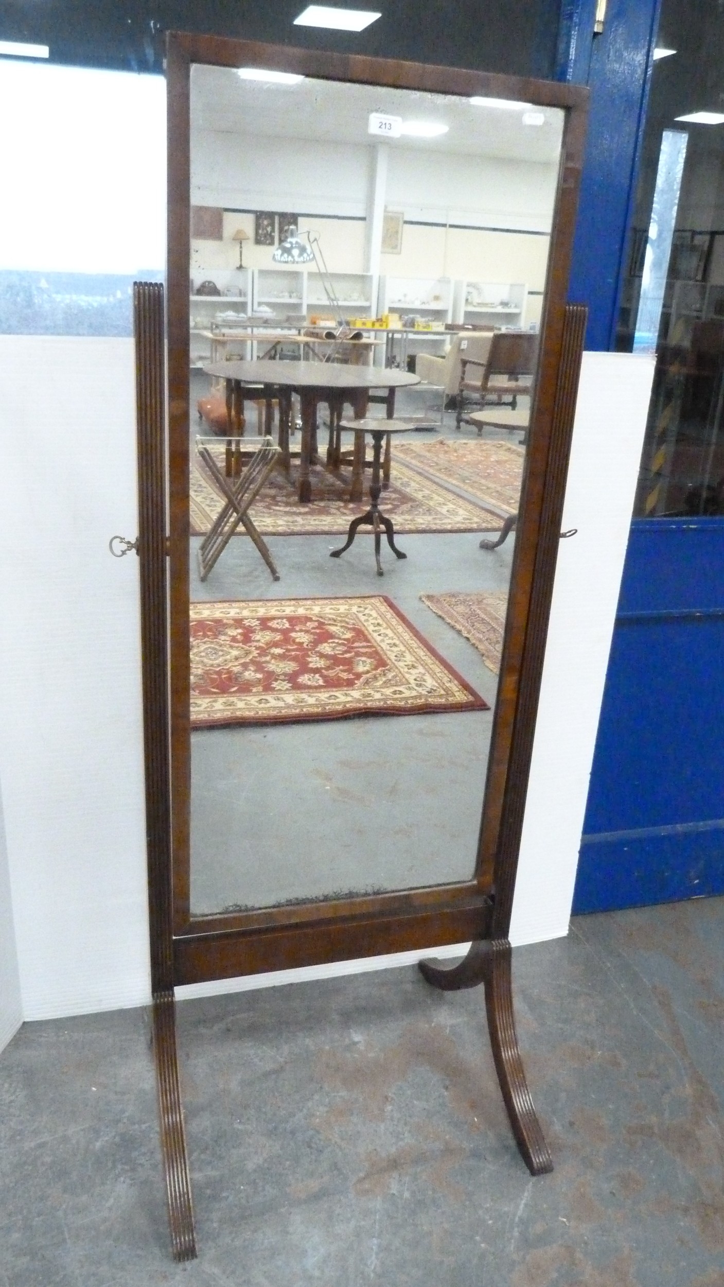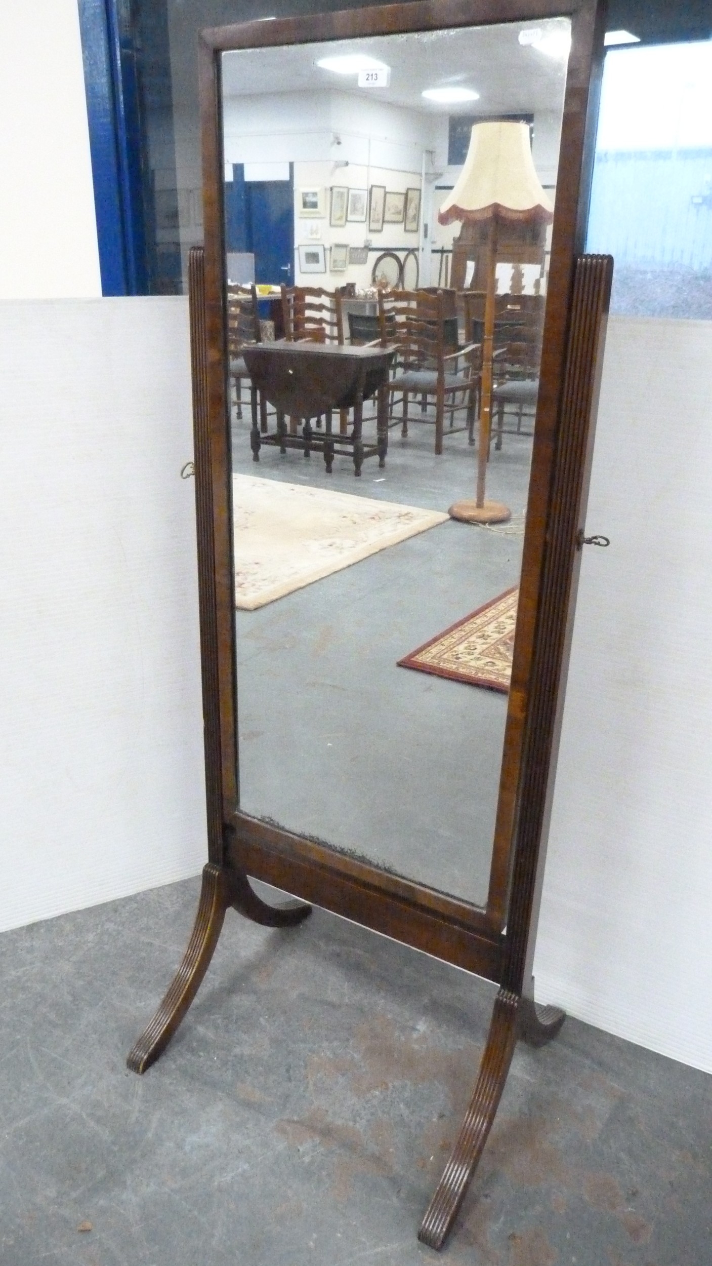 Antique mahogany fluted cheval mirror.