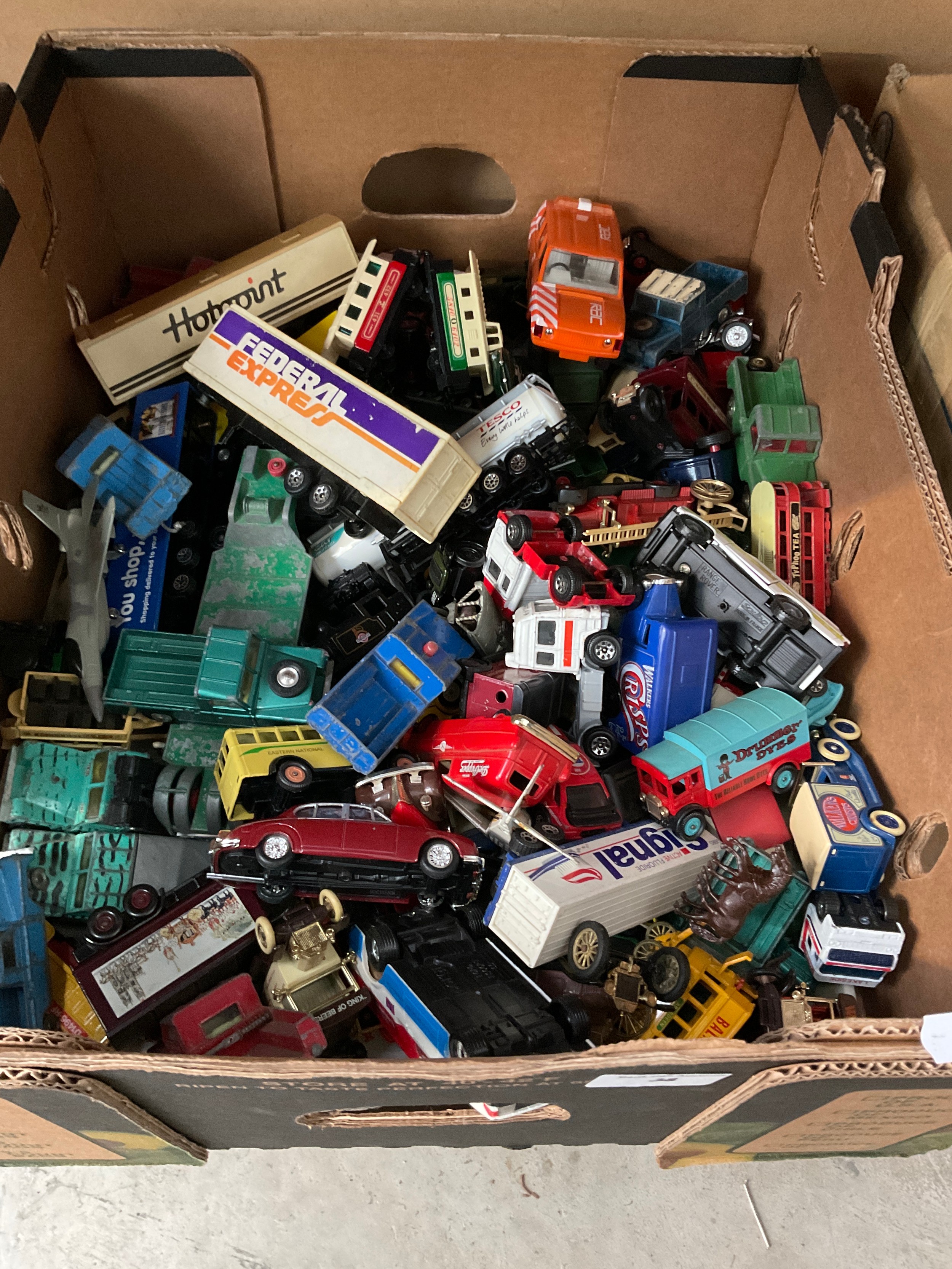 Box of diecast vehicles