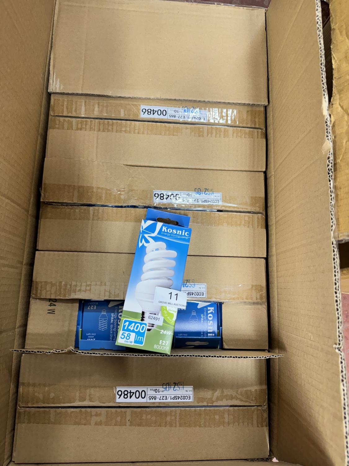 BOX OF 50 BOXED KOSNIC E27 24W SPIRAL BULBS(NEW)