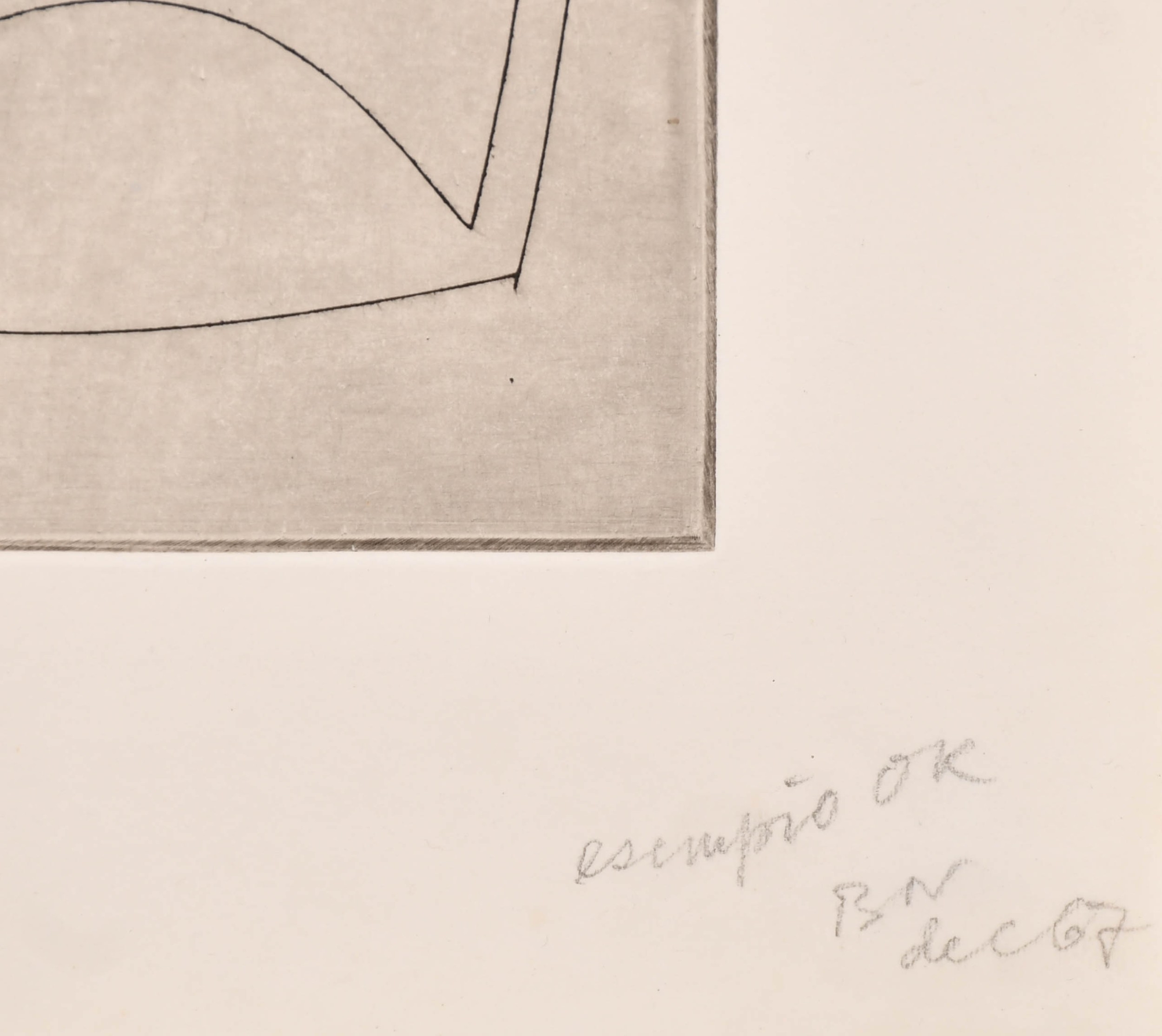 Ben Nicholson (1894-1982) British. Bottles, Etching, Signed with initials and inscribed and dated 67 in pencil, 16.5" x 11" (41.9 x 27.9cm). Provenance: Francois Lafranca collection; Austin Desmond