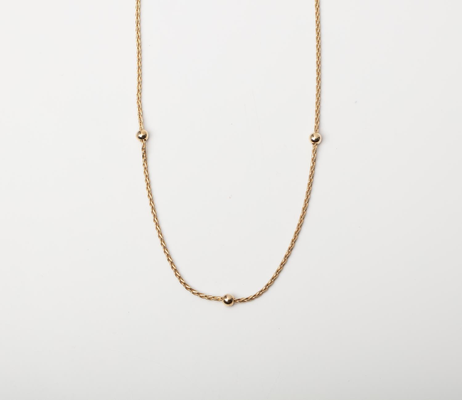 A 9CT GOLD & SILVER BONDED FANCY LINK CHAIN A 45cm long Fancy Link chain with gold ball stations crafted in 1/10 9ct yellow gold and Sterling Silver bonded together weighing 5.21 grams