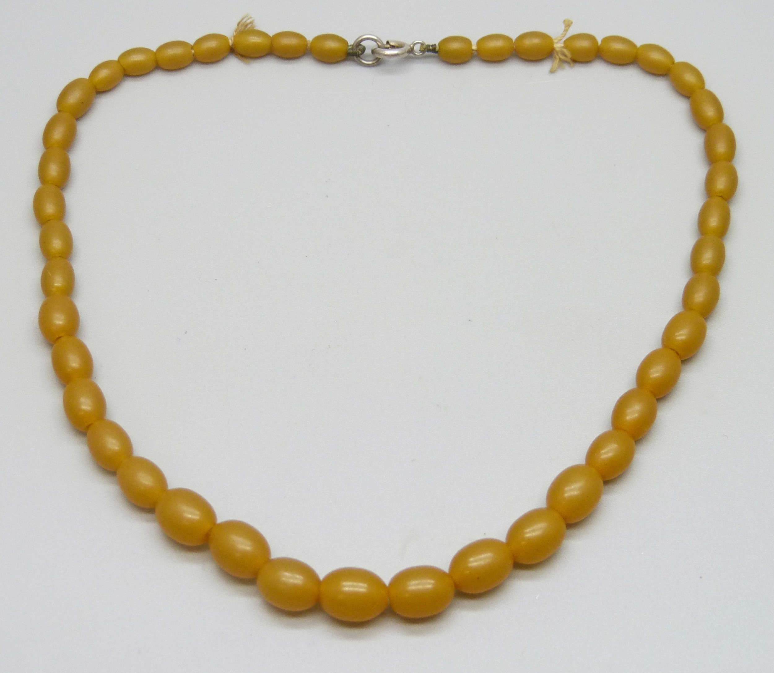 A short amber coloured bead necklace, 34.5cm