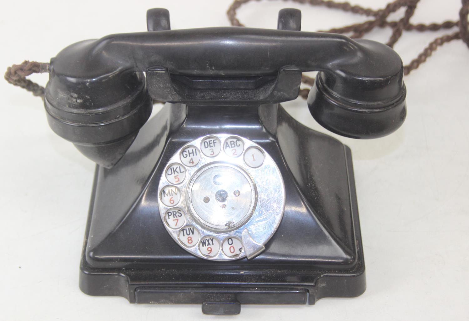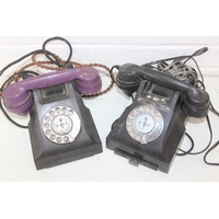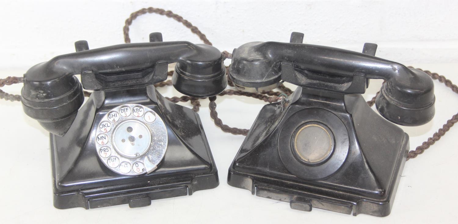 Telephones - two vintage brown/black Bakelite "Pyramid" telephones, one with rotary dial [2]