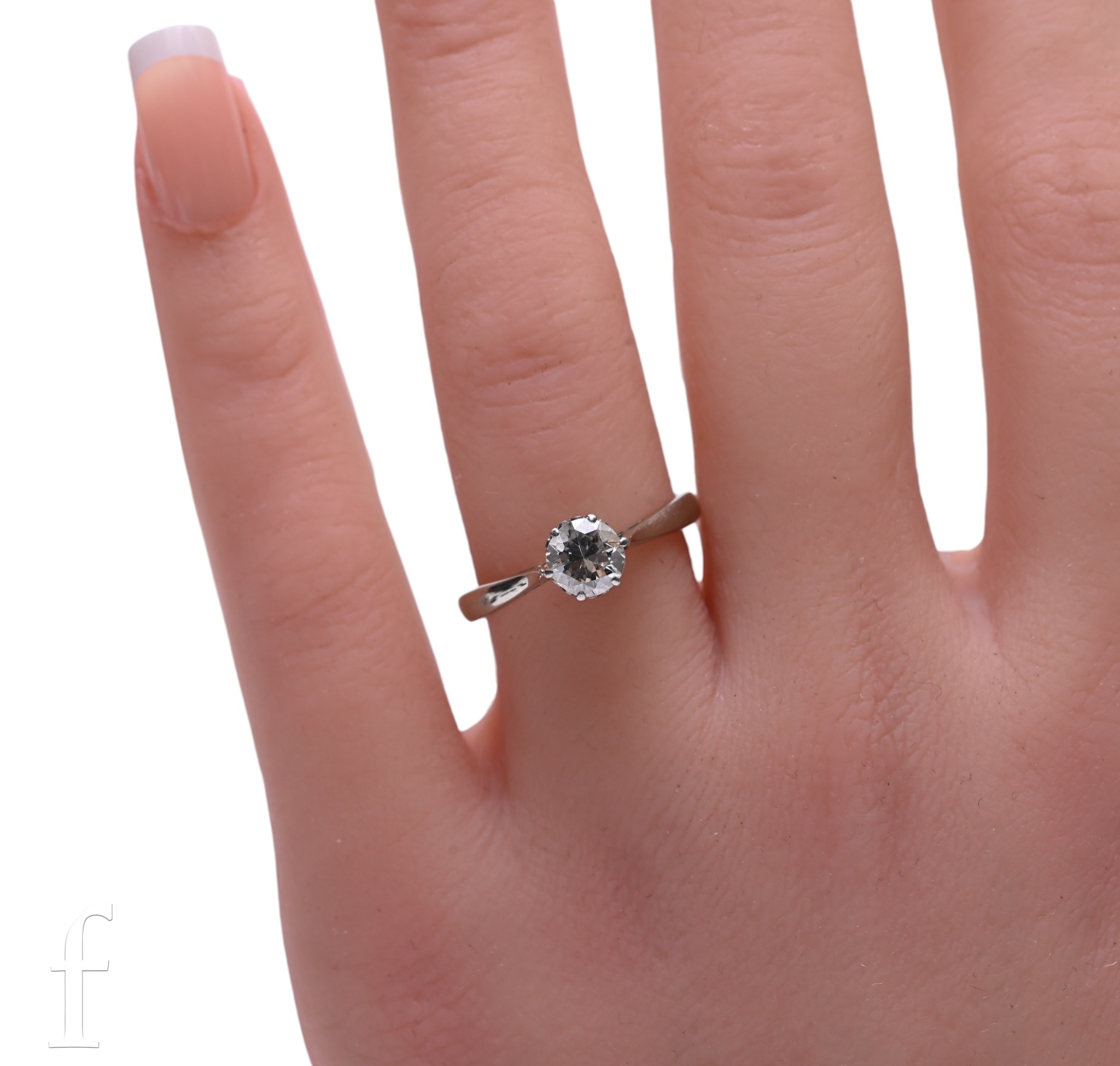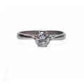 A single stone diamond ring, the brilliant-cut diamond estimated to weigh 0.8 carats, six claw set above pierced shoulders, mount stamped '18CT PLAT', total weight 2.7g, ring size P.