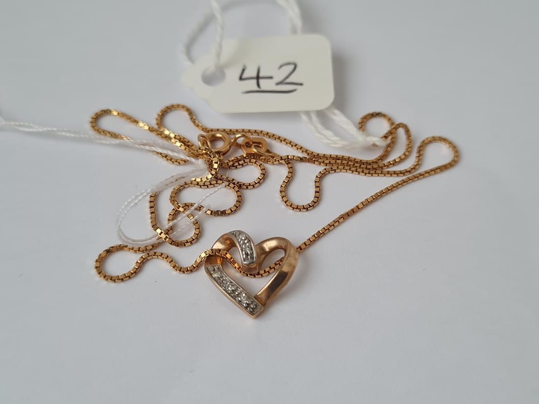 A diamond heart pendant on 9ct chain - 2.8gms