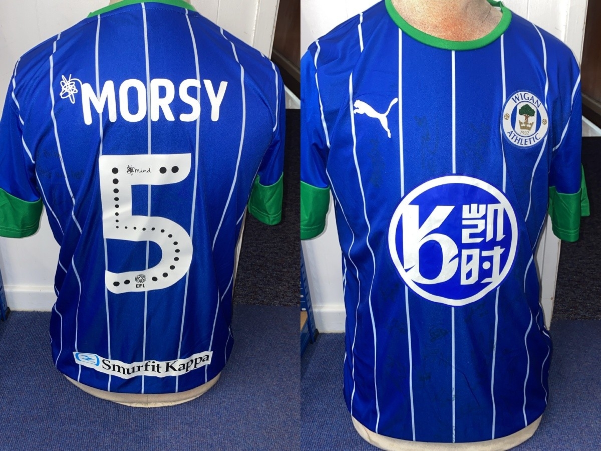 Wigan Athletic FC 2025/2026 full squad signed shirt. Wigan vs Chorley. Callum McManaman, Matthew Smith, Will Aimson, Morgan Fox, Jason Kerr, Fraser and more.