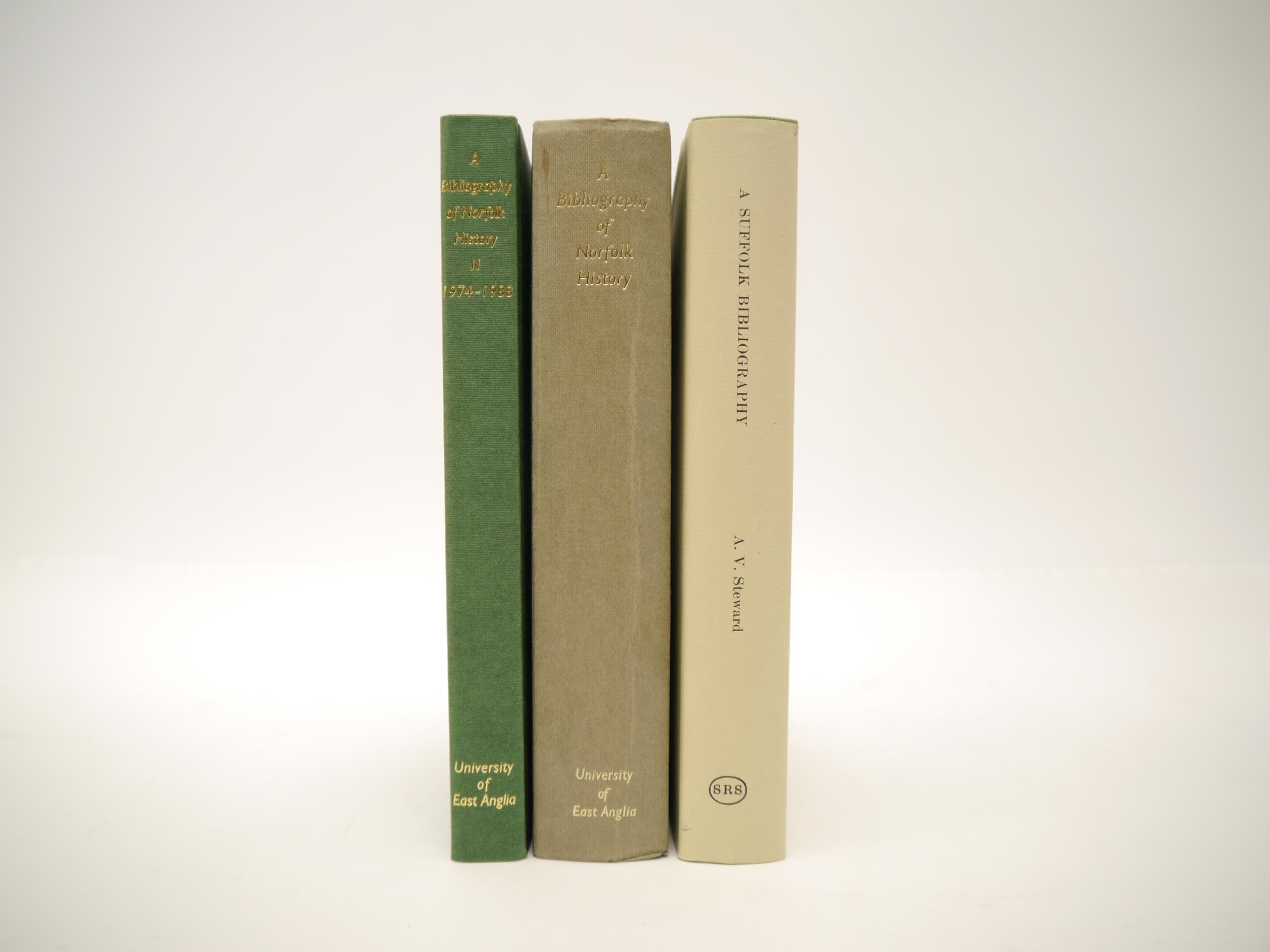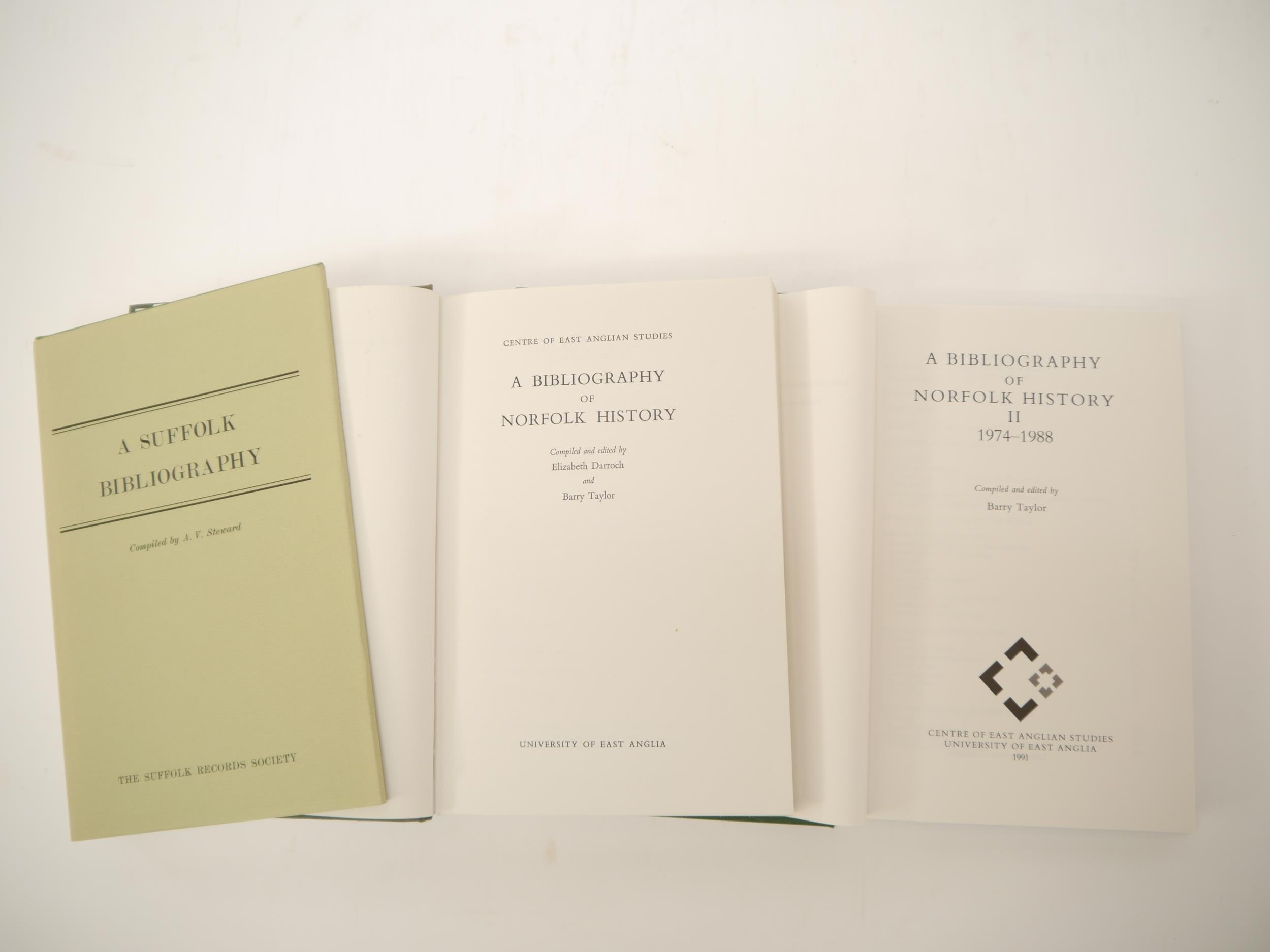 A.V. Steward: 'A Suffolk Bibliography', Suffolk Records Society, 1979, 1st edition, original cloth gilt, dust wrapper (a near fine copy), together with Darroch & Taylor: 'A Bibliography of Norfolk History', UEA, 1975-1991, 2 volumes, uniform original cloth gilt (3)