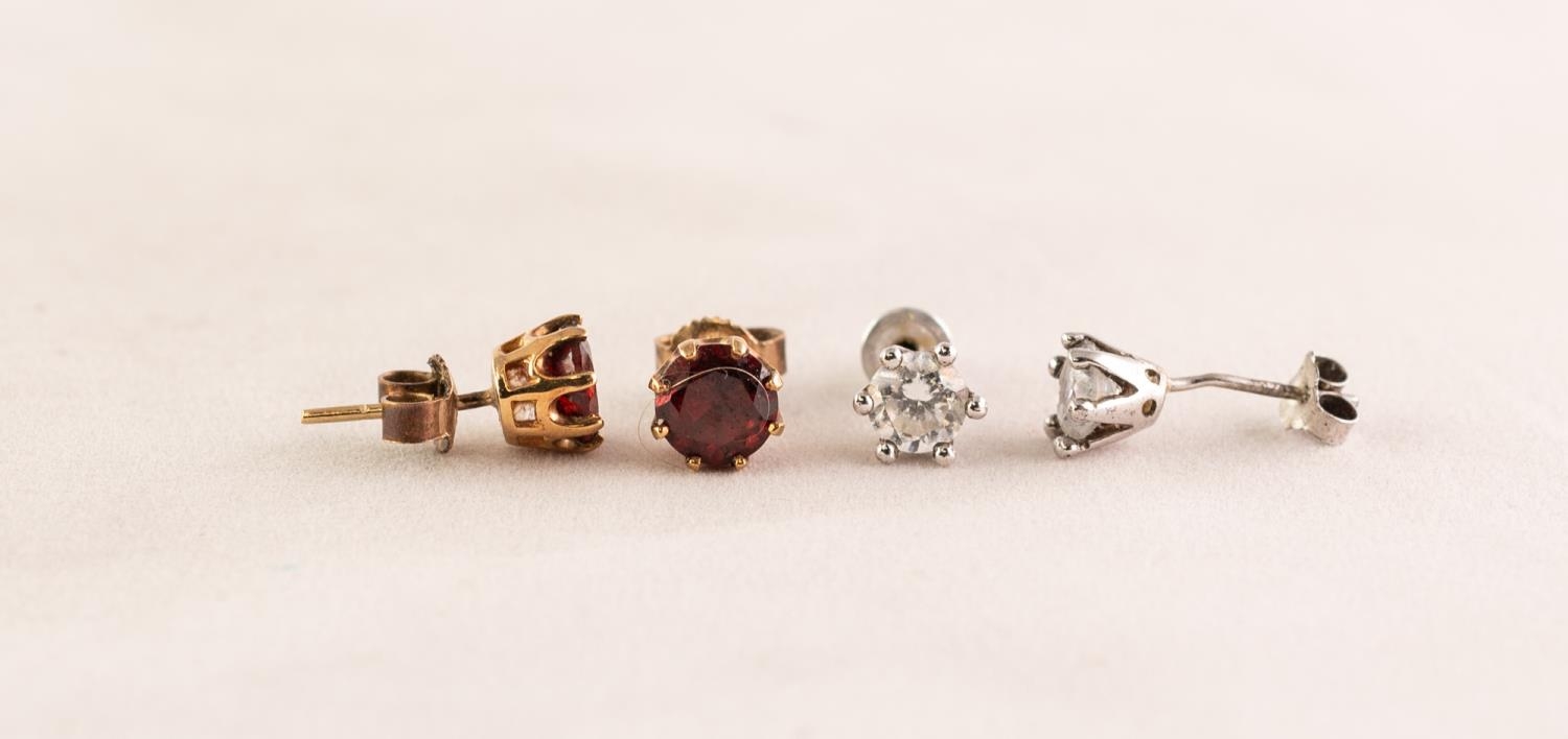 PAIR OF 9ct GOLD GARNET SET EARRINGS and a pair of white metal and white stone set EARRINGS (4)