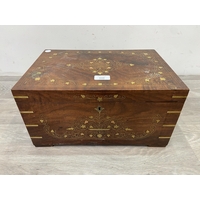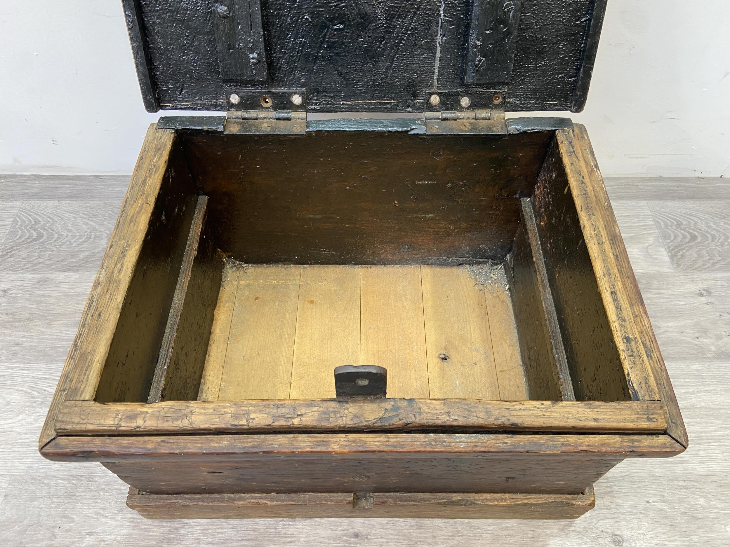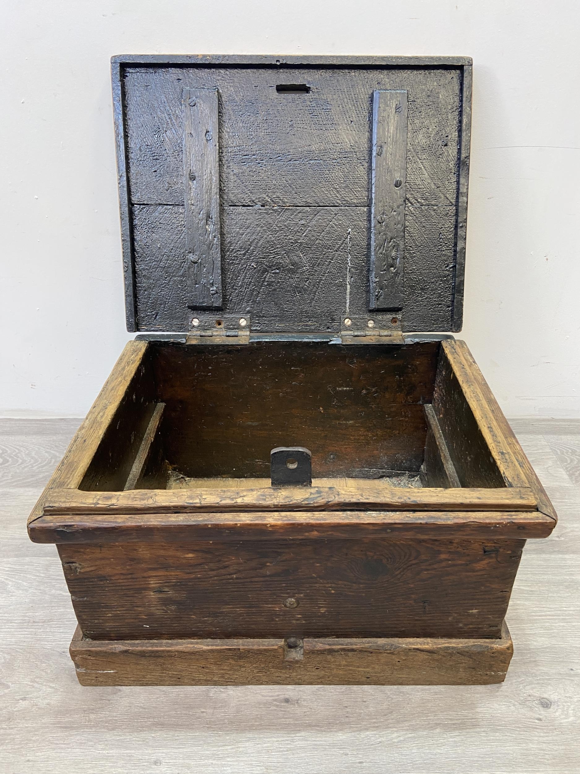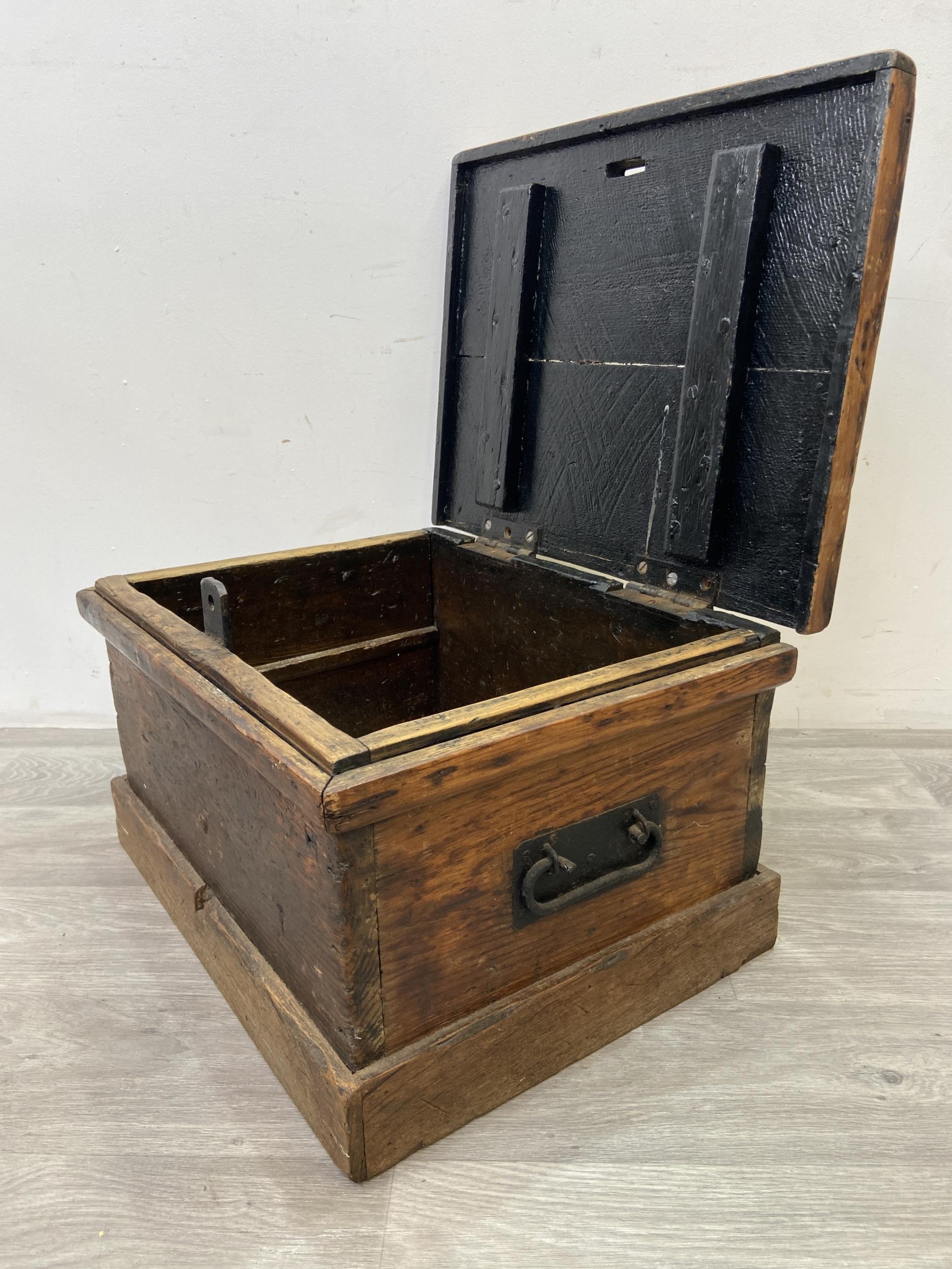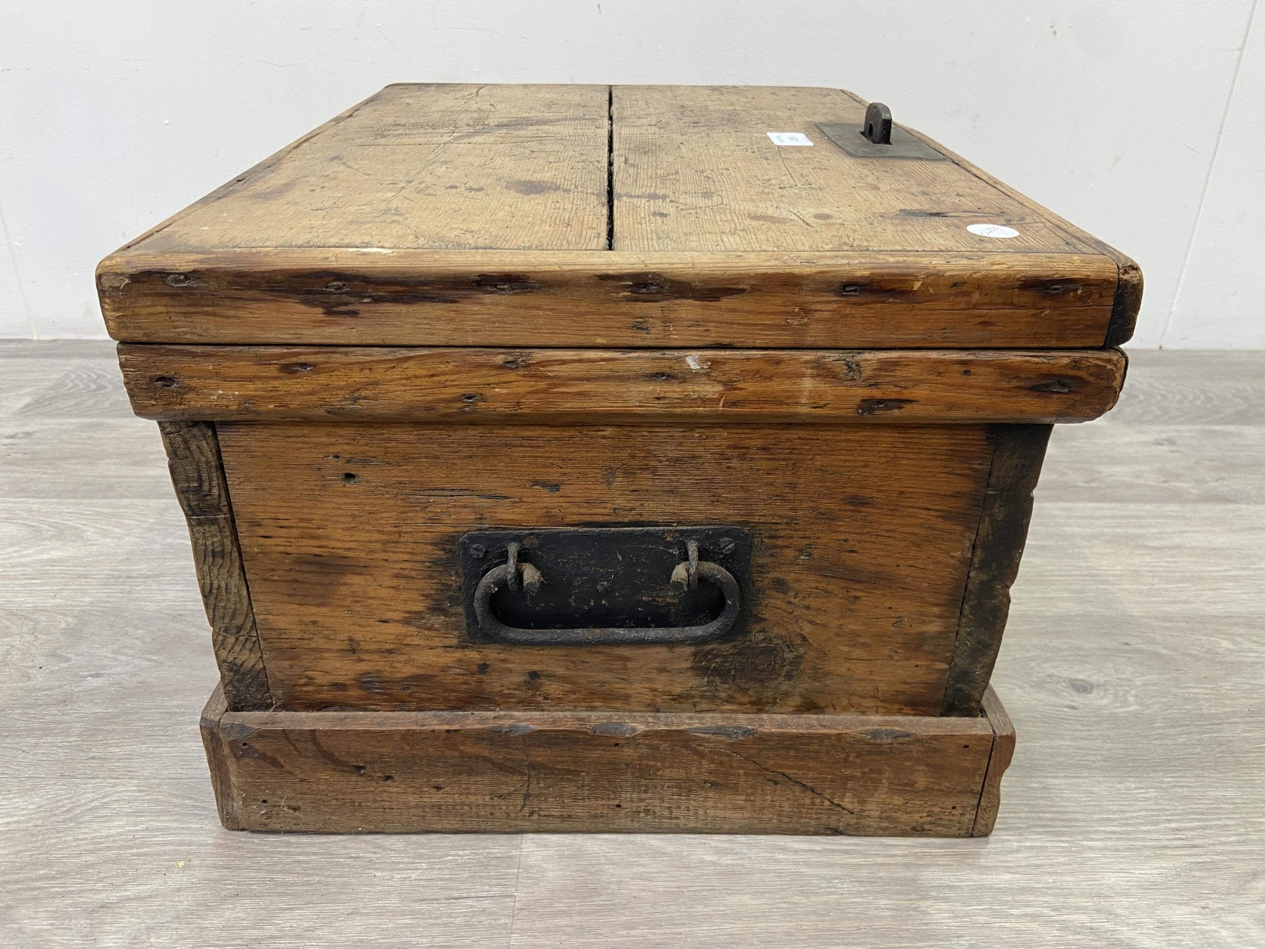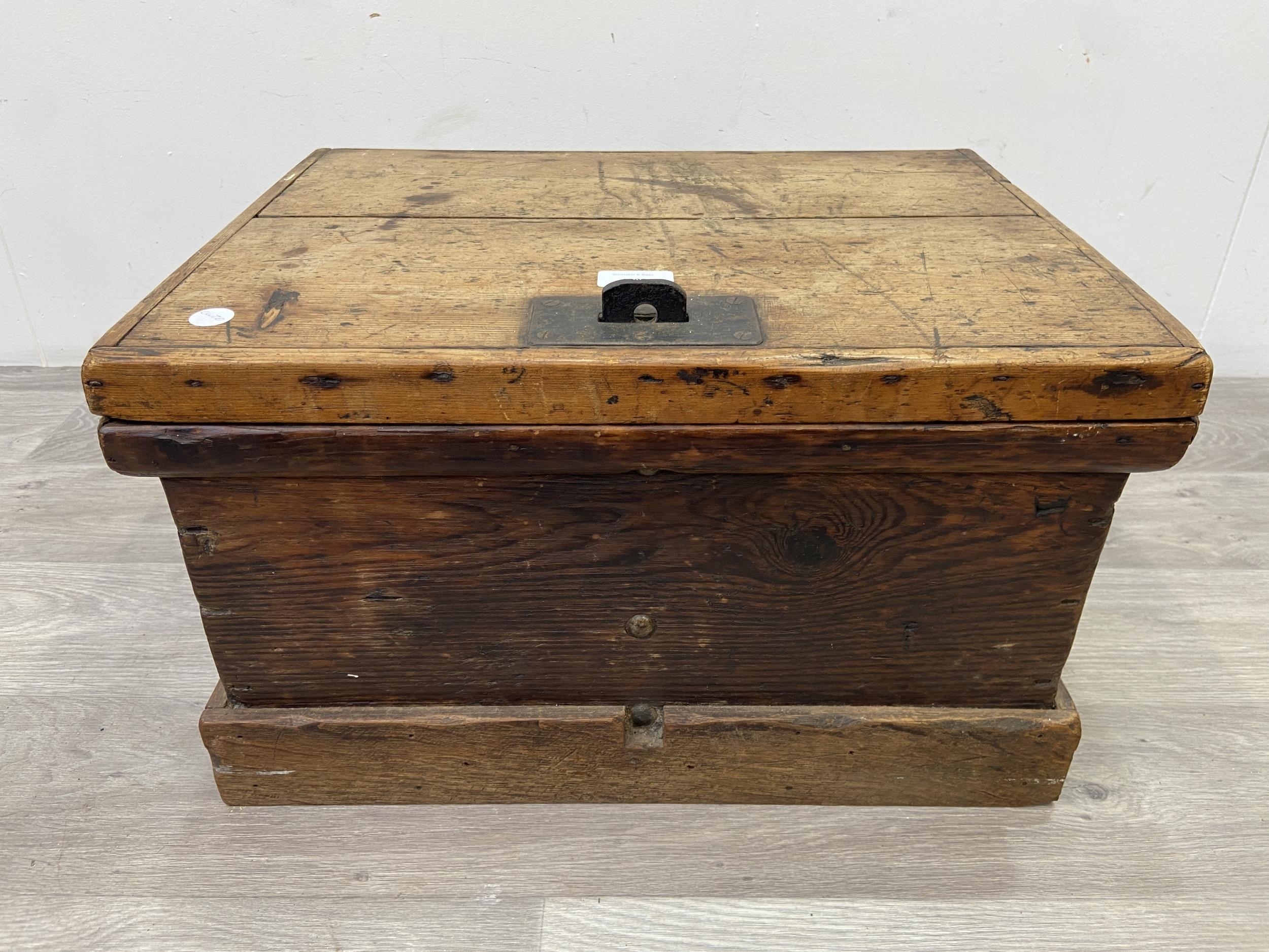 A 19th century pine and metal twin handled trunk - approx. 29cm high x 48cm wide x 38cm deep