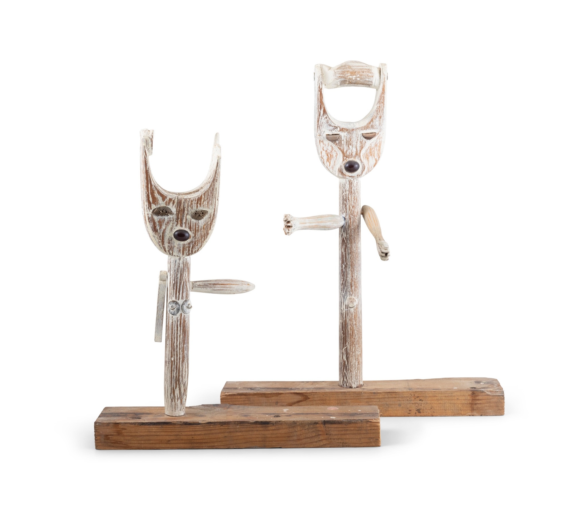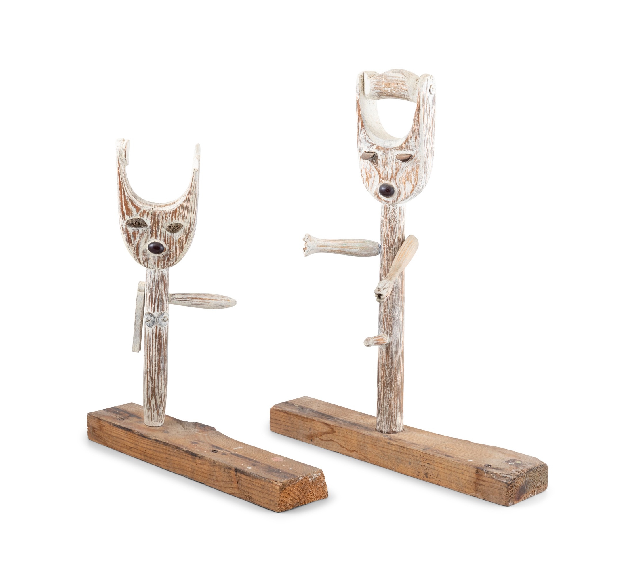 Timber sculpture (objets trouvé) 44 x 9 x 55cm high (17¼ x 3½ x 21½") and 40 x 9 x 45.5cm (15¾ x 3½ x 18")