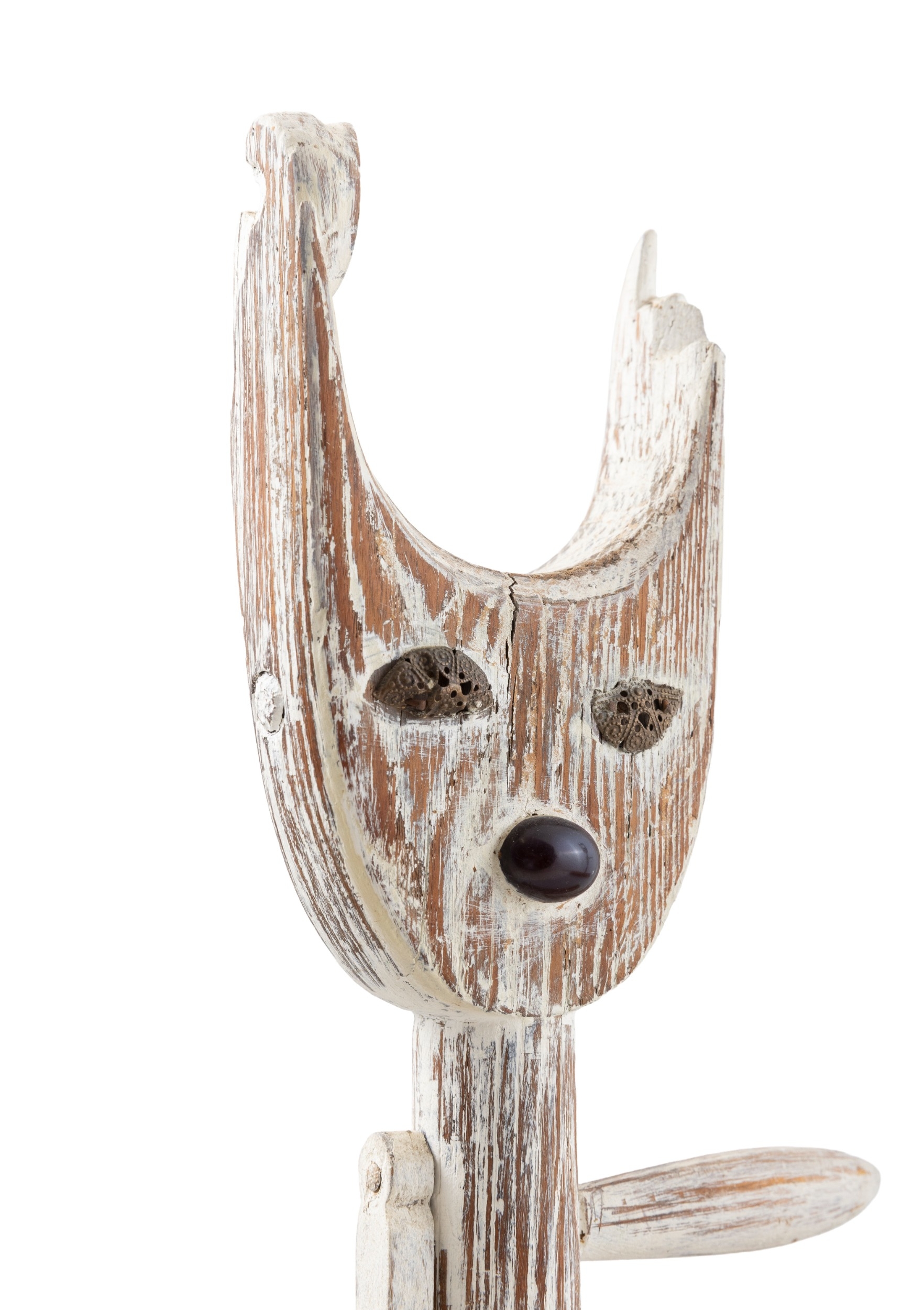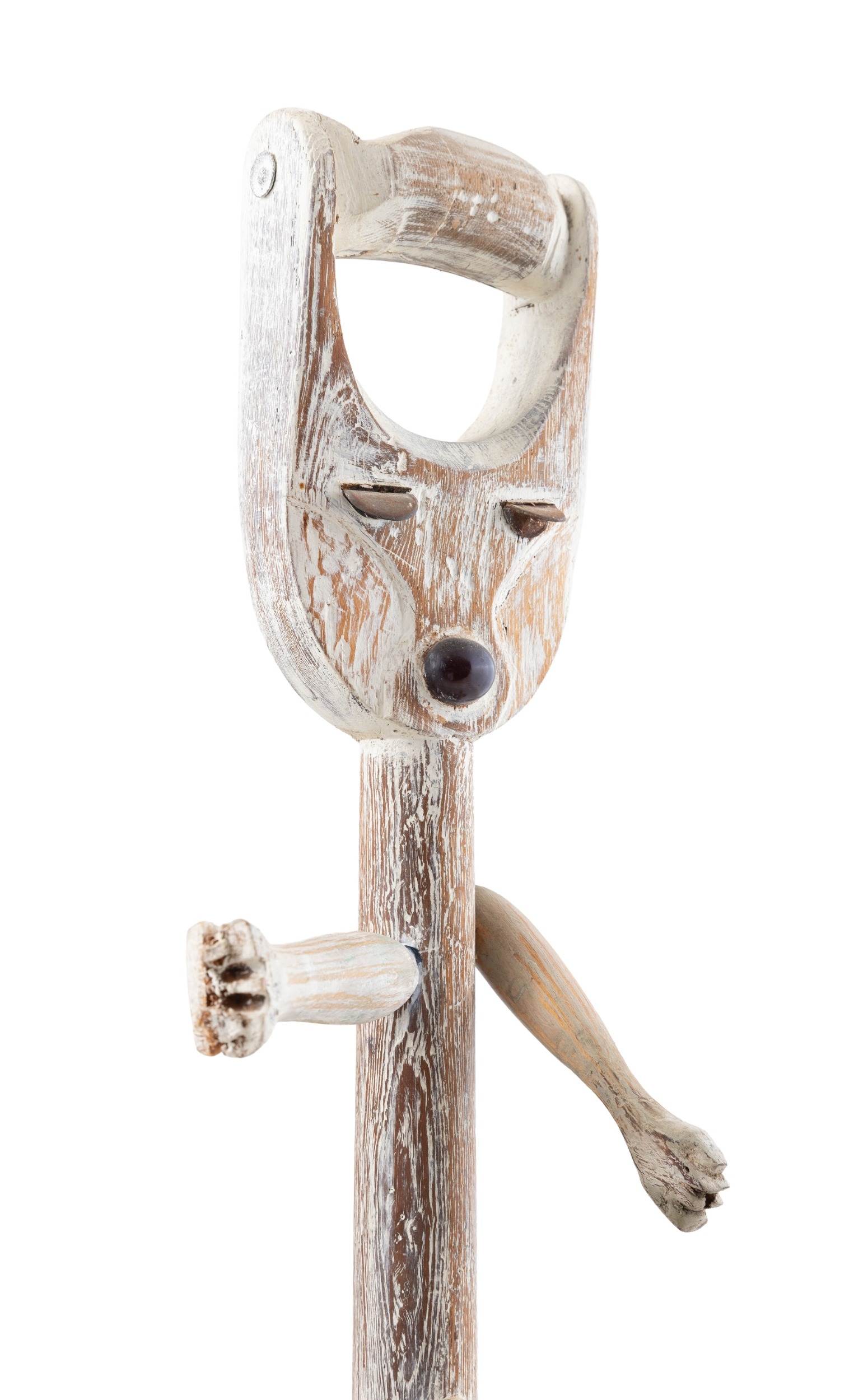 This rare and engaging objets trouvés sculpture by Gerard Dillon exemplifies the artist’s inventive and often playful approach to form and material. Composed from the handles of two wooden garden spades, the piece abstracts the human figure into a pair of totemic shapes — one male, one female — rendered with a simplicity that belies its wit and sensitivity.