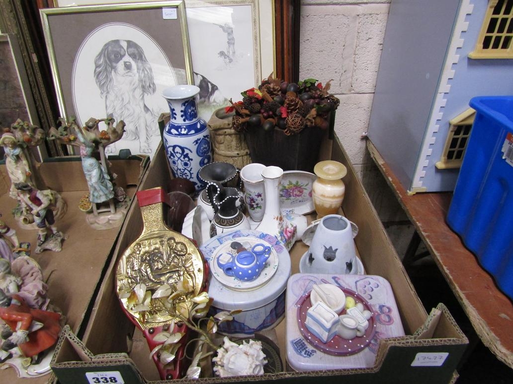 BOX OF MIXED CHINA AND BELLOWS