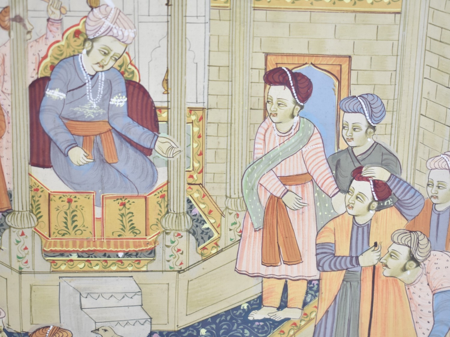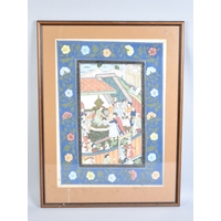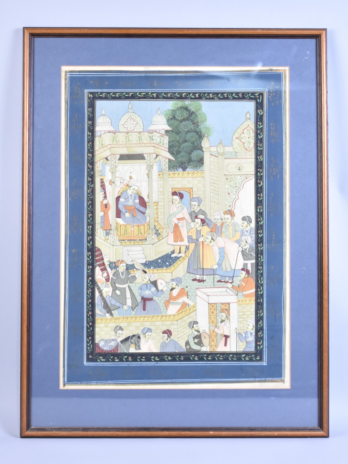 A Framed Indian Mughal Painting on Silk, 34x49cms