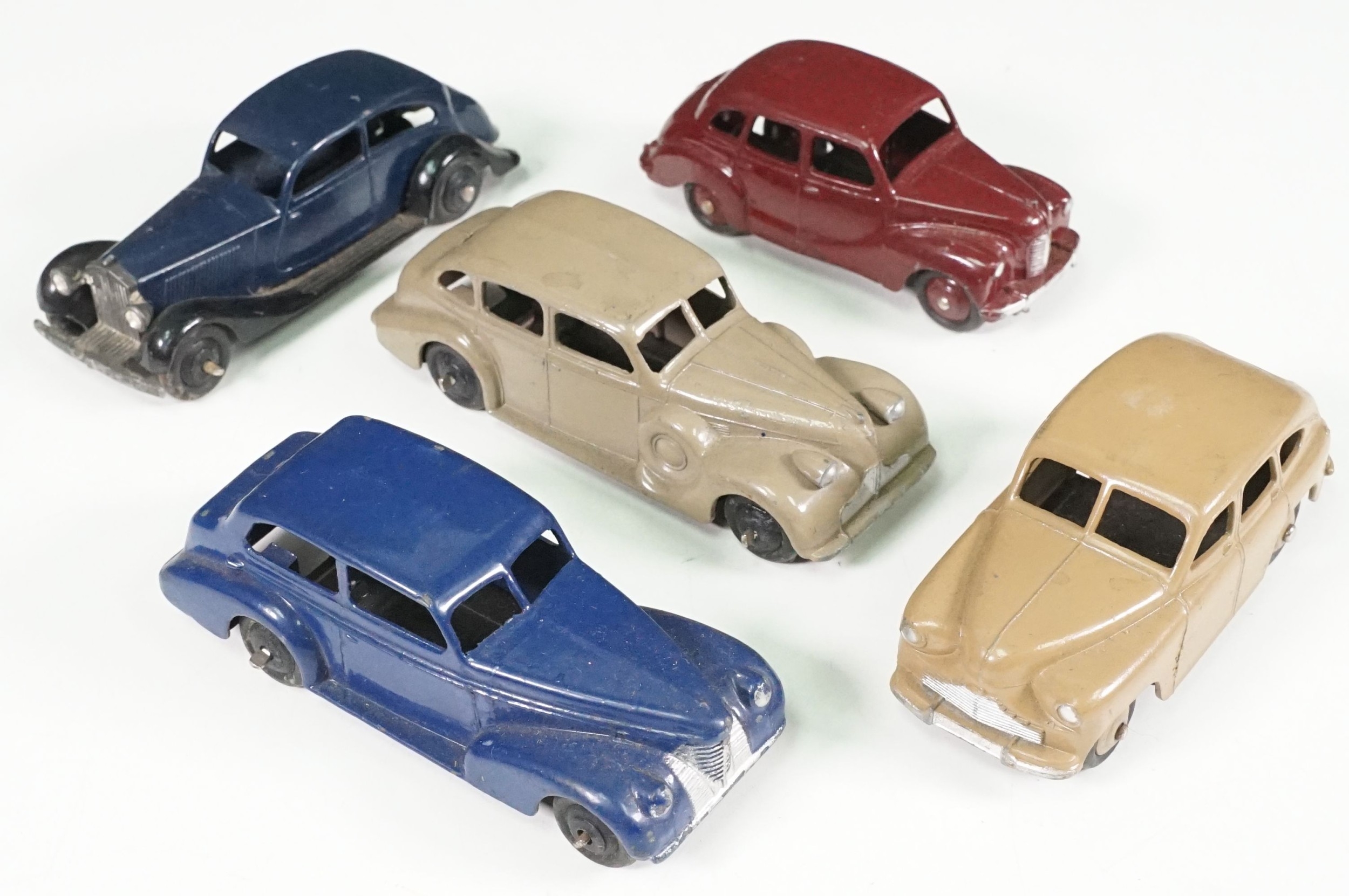 Five boxed Dinky diecast models contained within an original Dinky 39B Oldsmobile Six Sedan, includes Vanguard, Buick, Austin Devon and an Oldsmobile, diecast gd with some wear, box gd