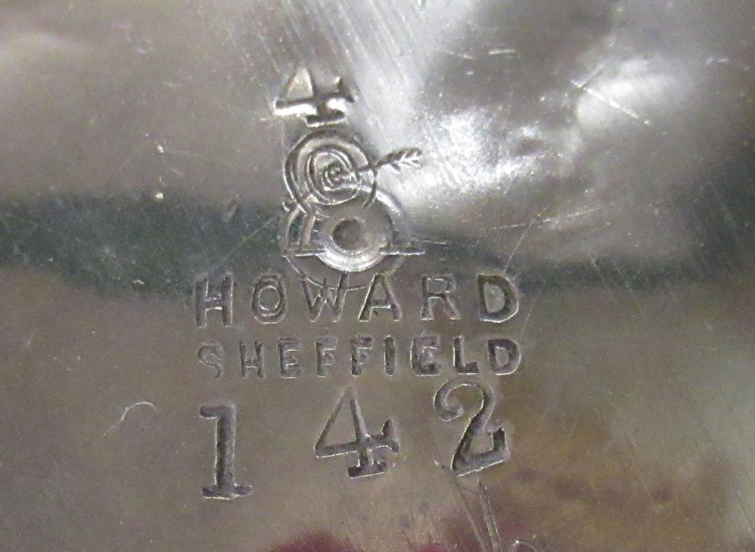 Victorian Howard of Sheffield, silver plated three-piece bullet shaped tea set, early C20th ebony tray with EPNS gallery, and other plated items