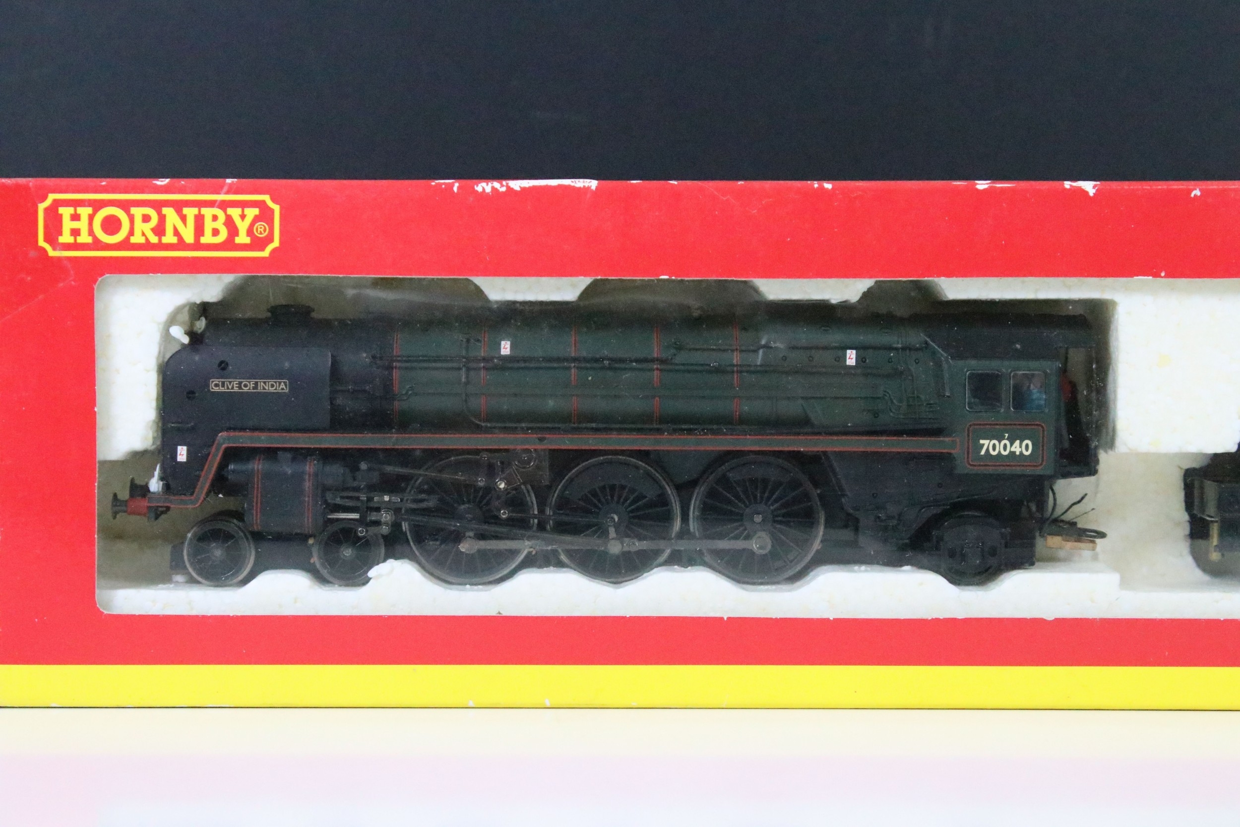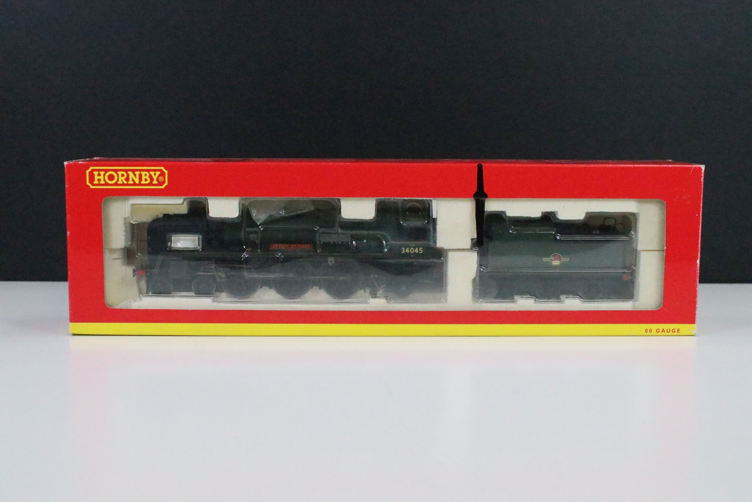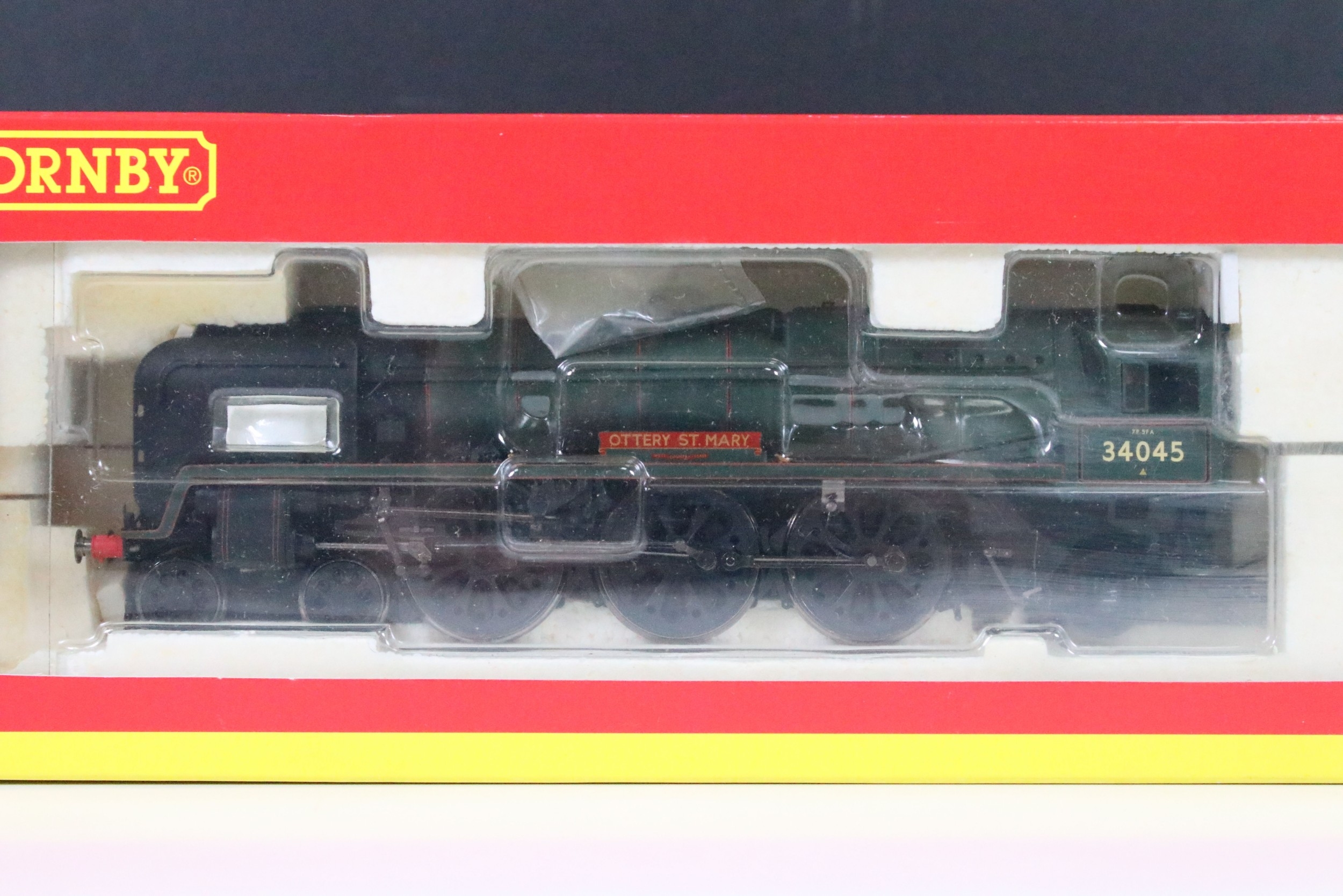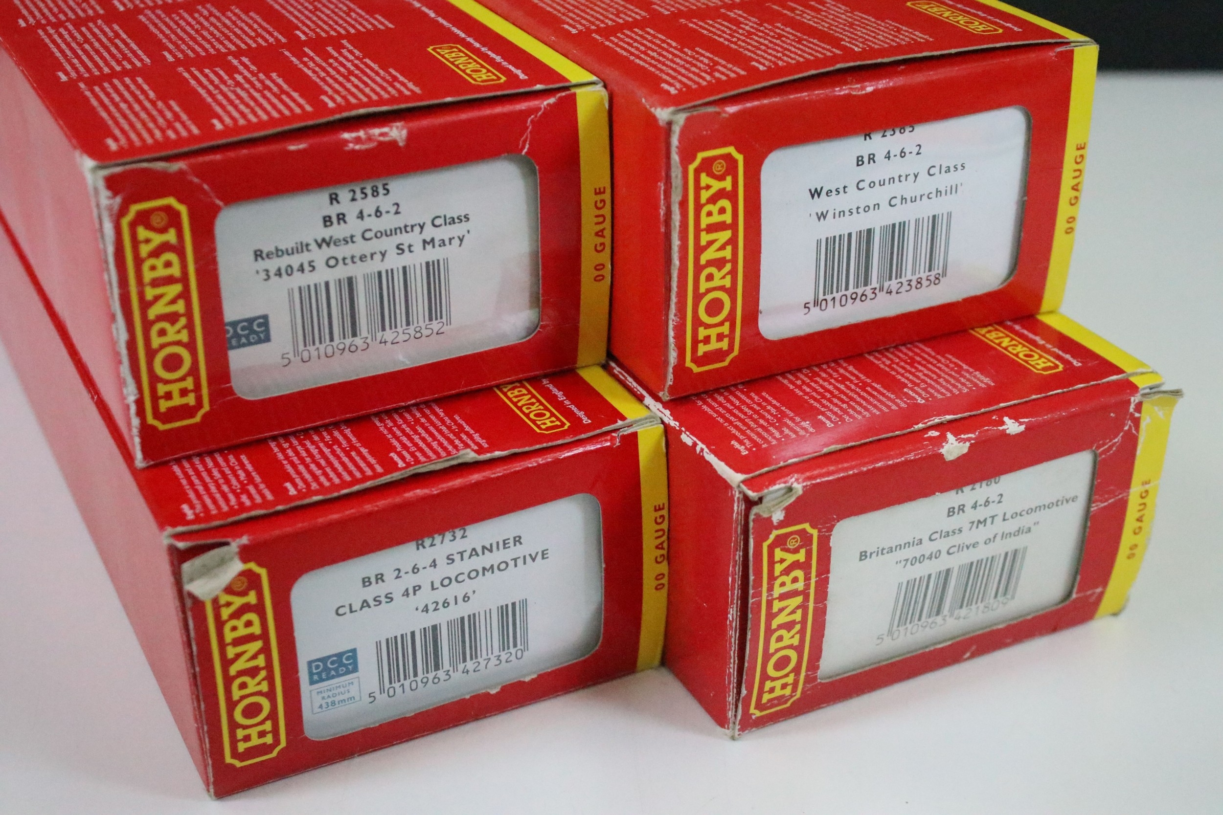 Four boxed Hornby OO gauge locomotives to include R2385 BR 4-6-2 West Country Class Winston Churchill, R2585 BR 4-6-2 Rebuilt West Country Class 34045 Ottery St Mary, R2180 BR 4-6-2 Britannia Class 7MT Locomotive 70040 Clive Of India and R2732 BR 2-6-4 Stanier Class 4P Locomotive 42616