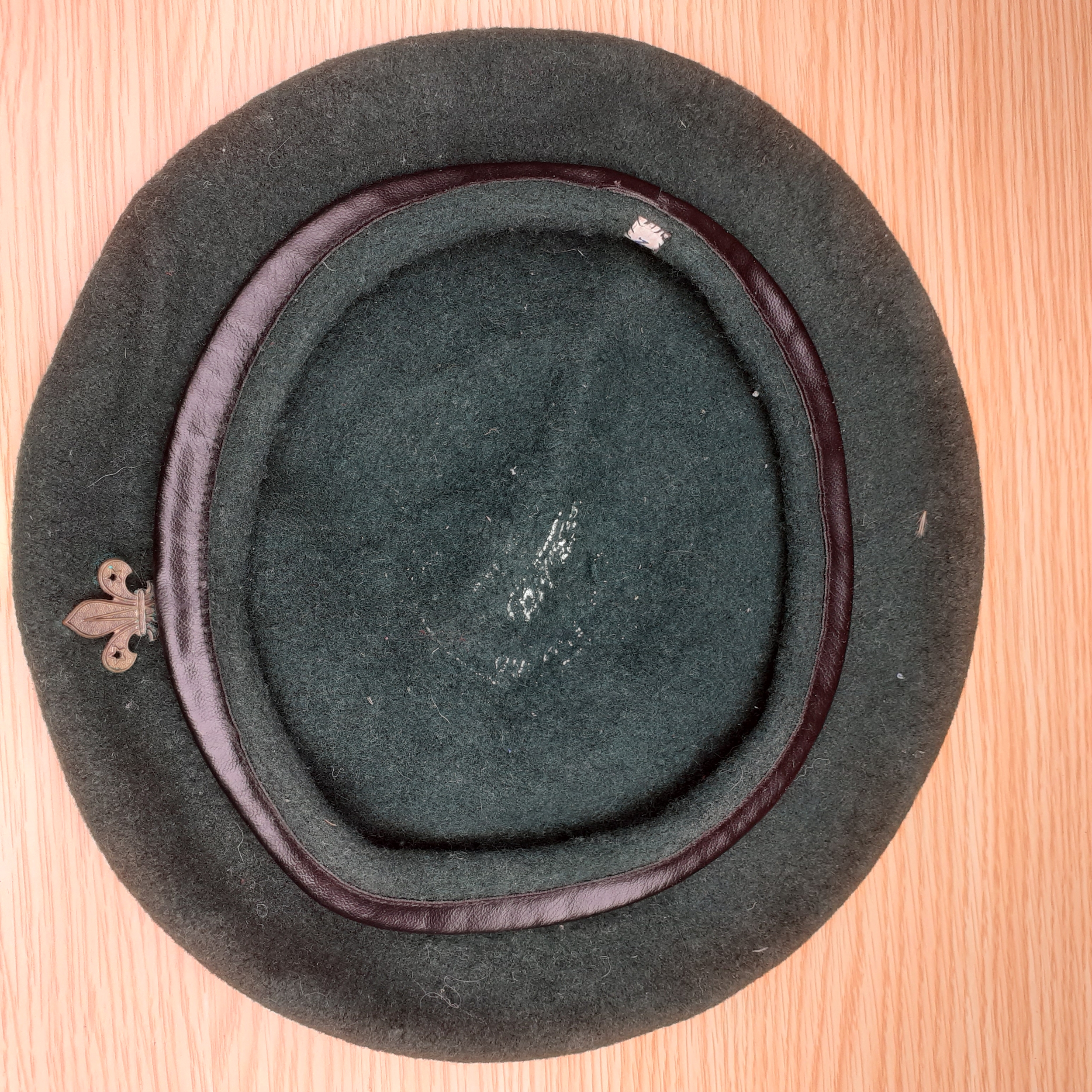 Boy scout beret with cap badge. Shows age. No damage but requires a clean up.