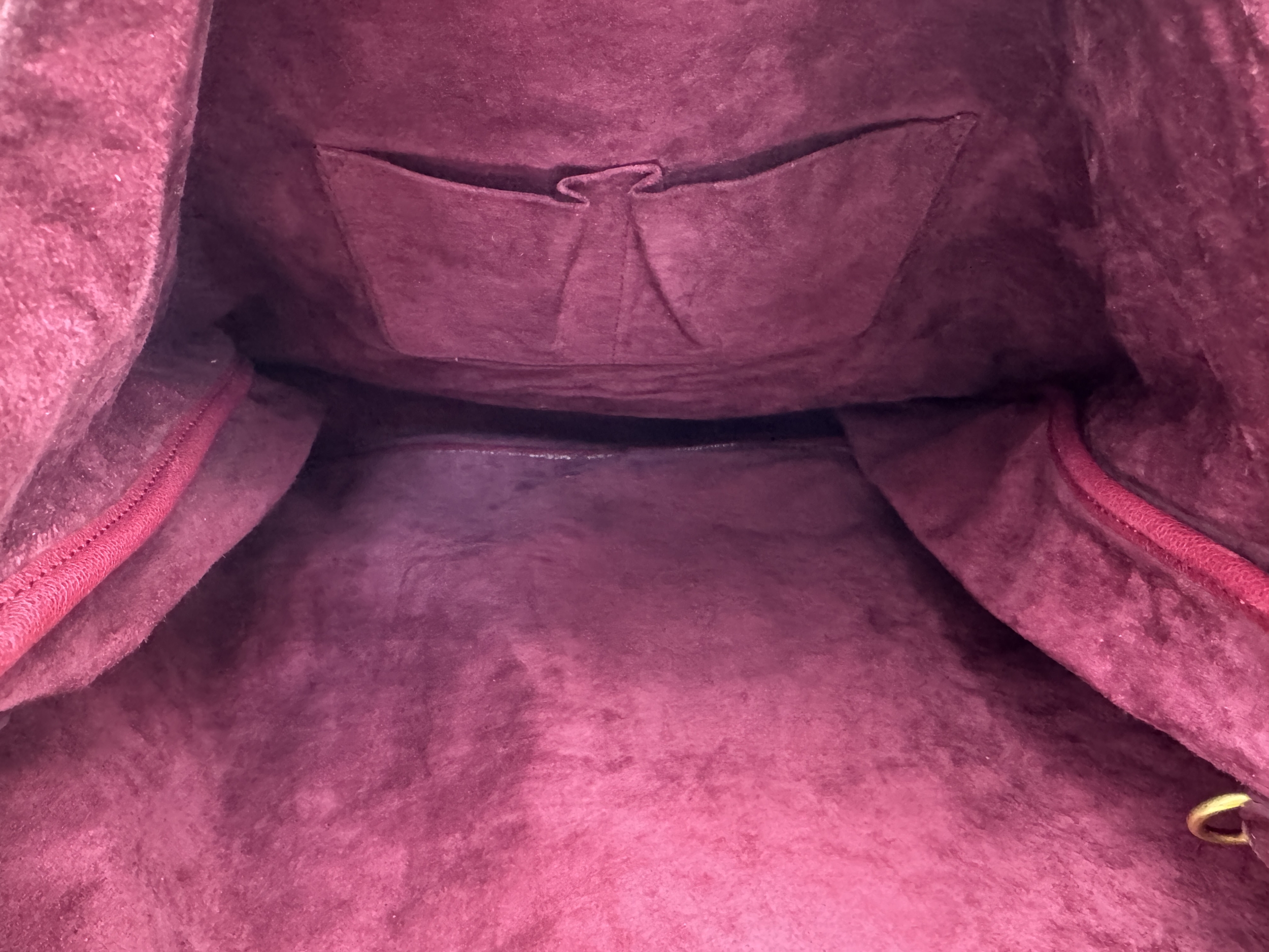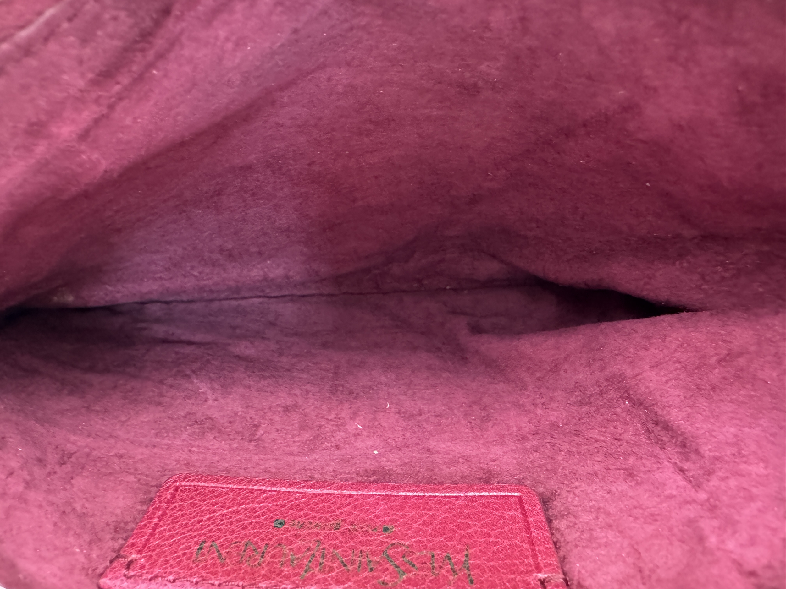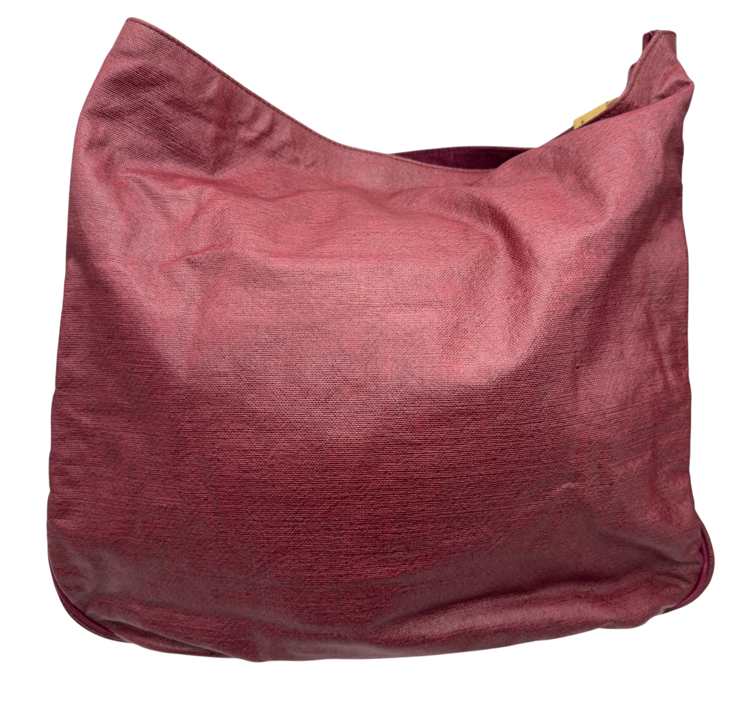 A Yves Saint Laurent Roady Hobo Bag. Burgundy leather exterior with gold-tone hardware and a single leather rolled bag handle. Magnetic closure, opening to a burgundy suede interior with two open inner side pocket. Comes a detachable matching zipped pouch and certificate of authenticity. Approximately 37.5cm in length x 35cm in height. In good condition overall but Please see photos or request a condition report. Ref: 27317