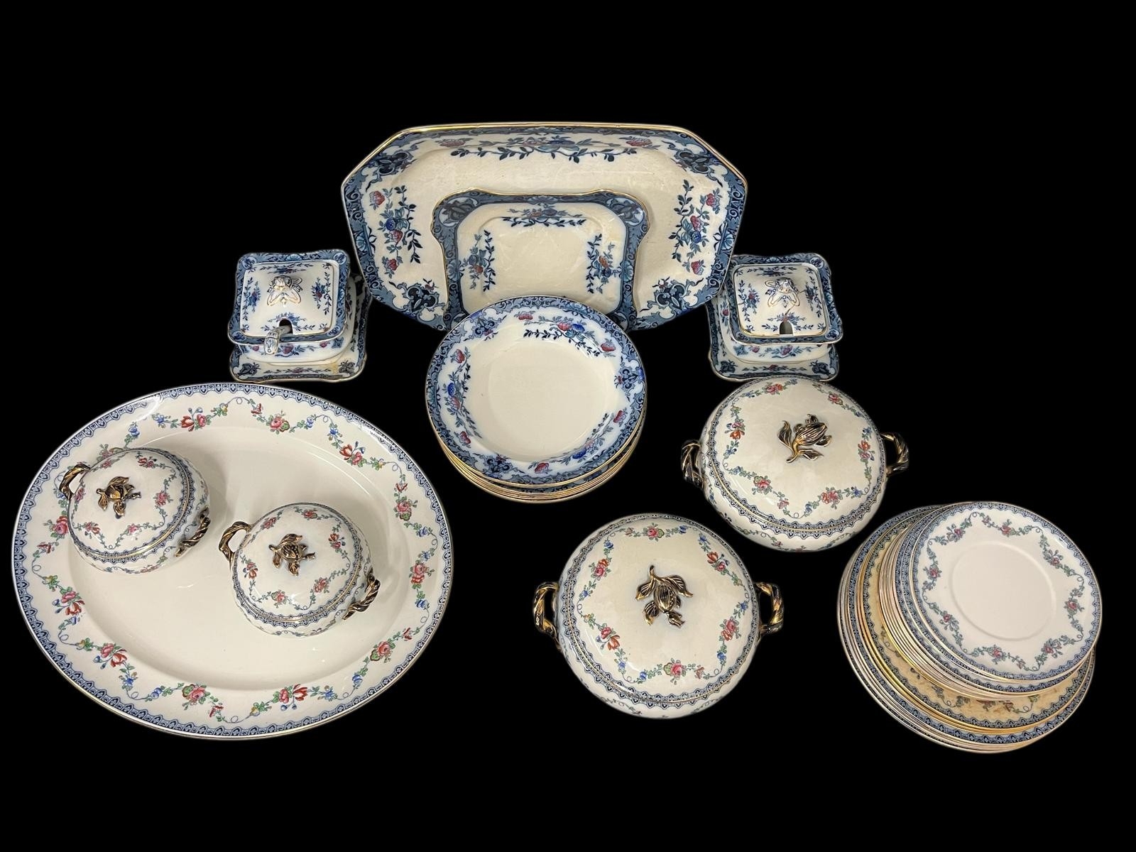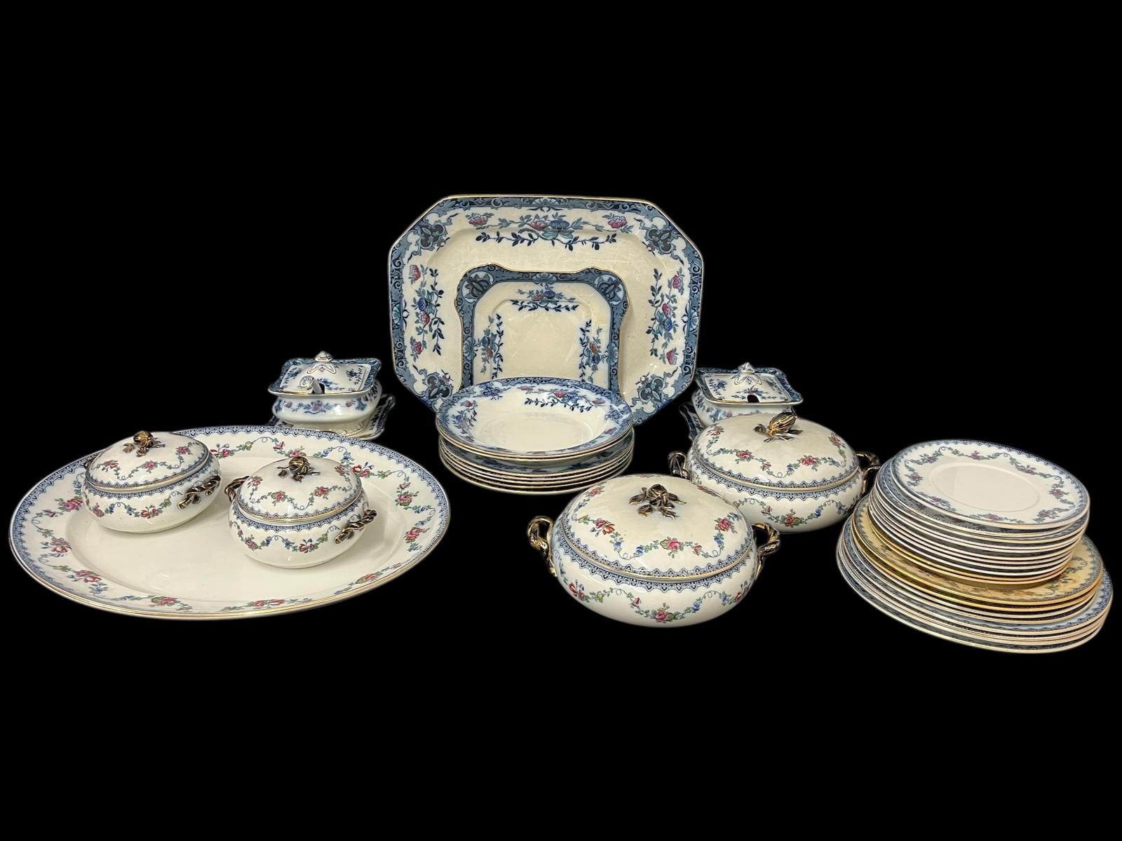 A THIRTY-SIX PIECE BURLEIGHWARE IRONSTONE CHINA DINNER SERVICE the white ground with blue floral border