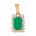 AN EMERALD AND DIAMOND PENDANT