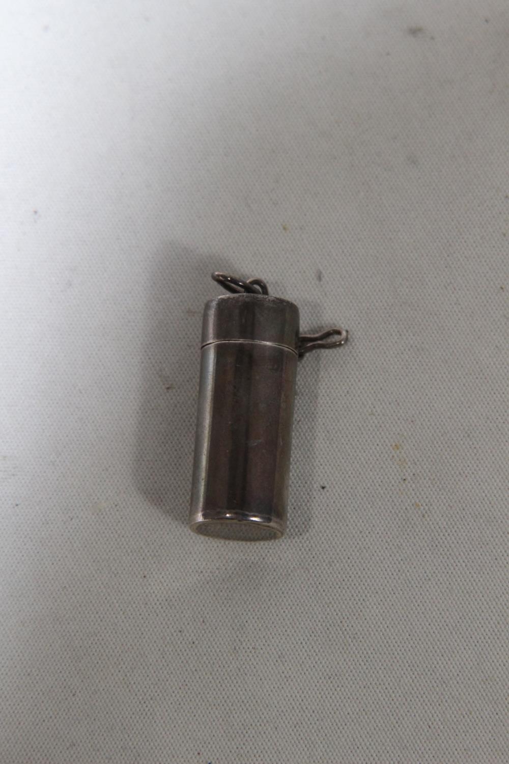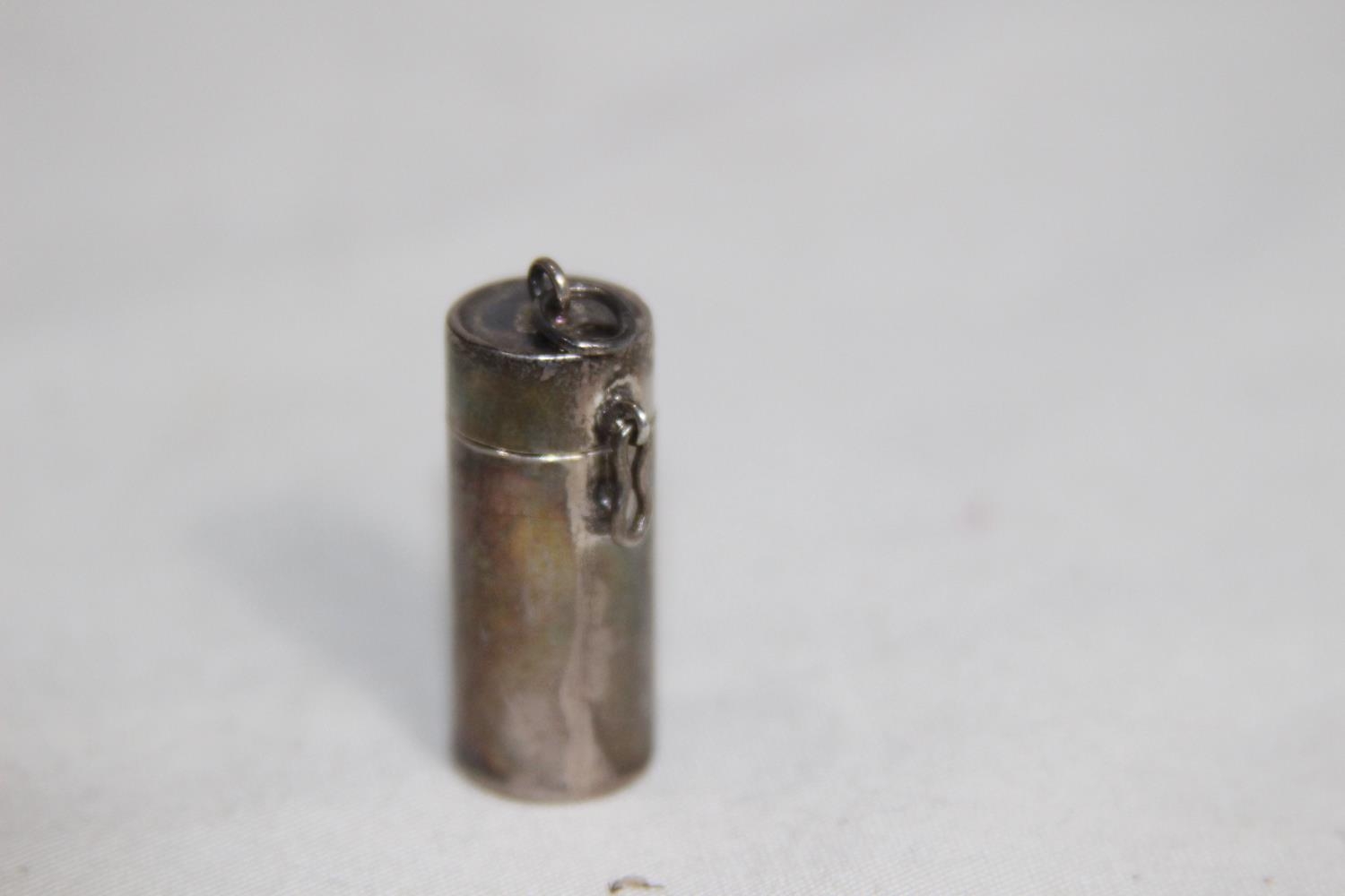 SMALL SILVER PENDANT CANISTER - 5.5G - MARKED 925 AND LONDON IMPORT MARK
