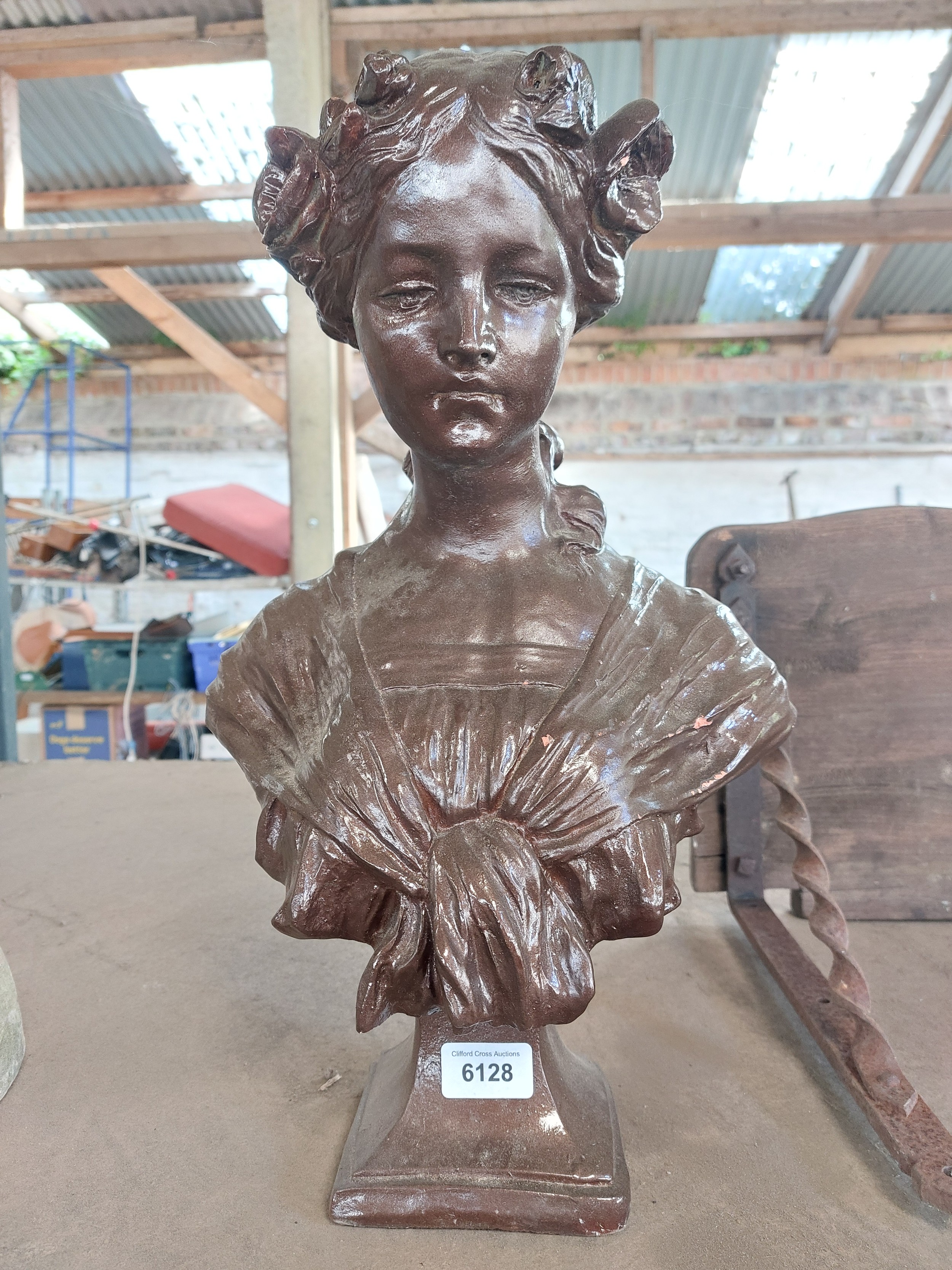 A Gustave Van Vaerenbeugh bronze painted bust of a lady, measuring 46cm high.