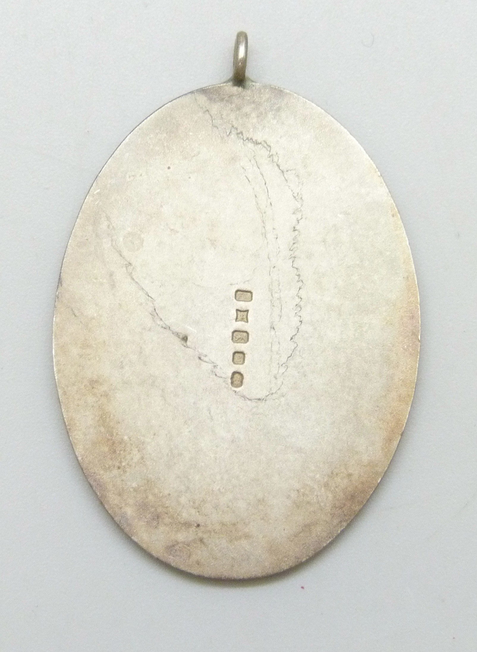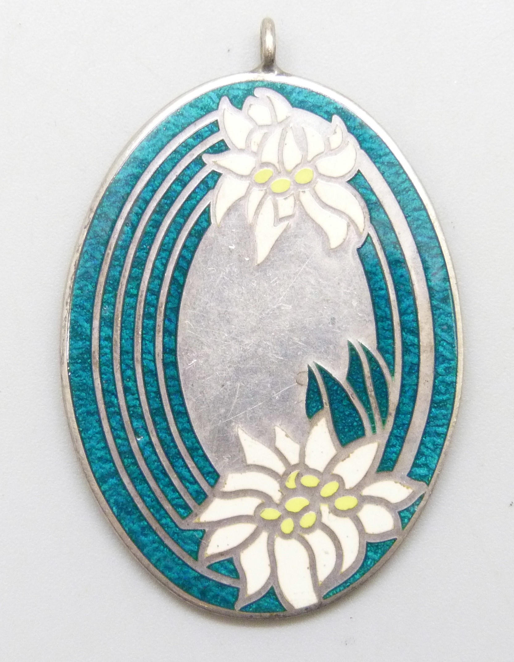 A Franklin Mint silver and enamel edelweiss flower design pendant, hallmarked Birmingham, 1977, 4.5cm