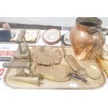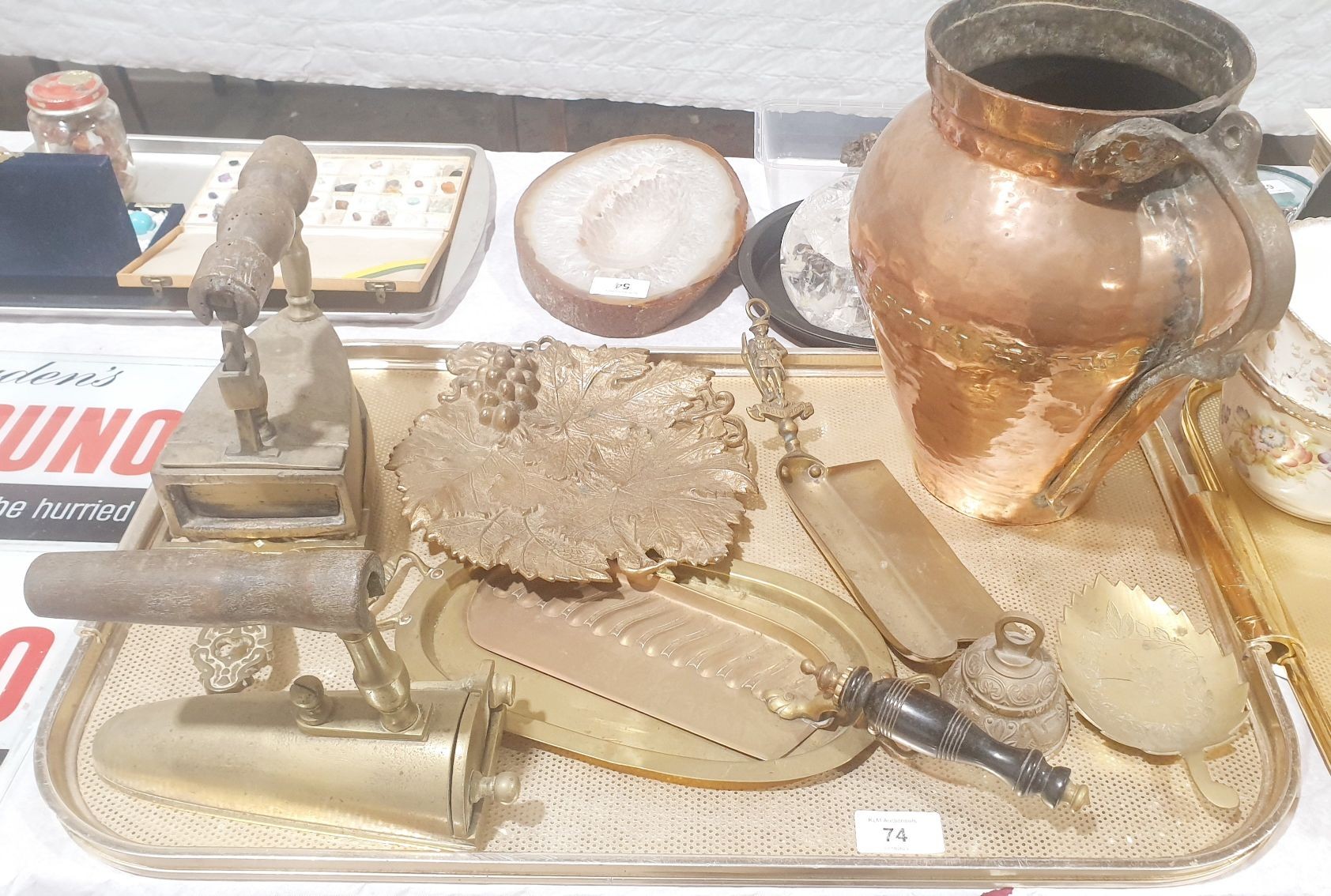 A selection of metal ware including an antique copper jug, height 10.25". UK shipping £14.
