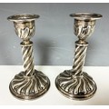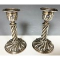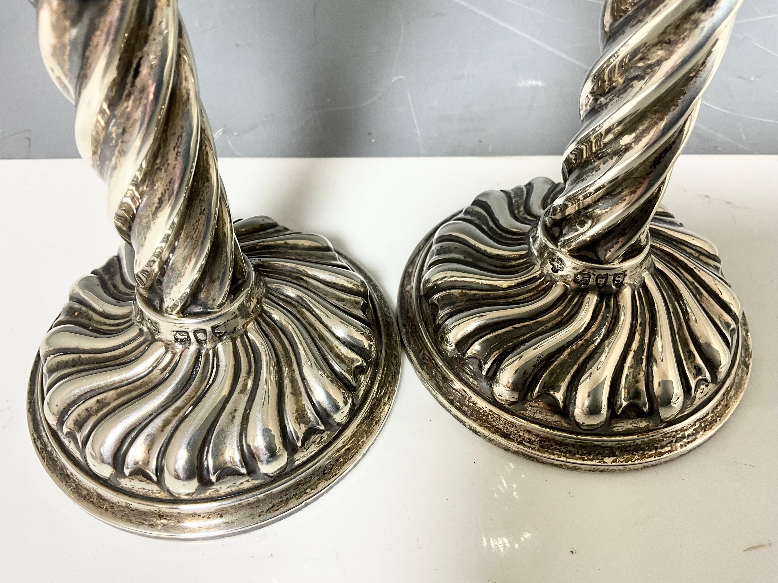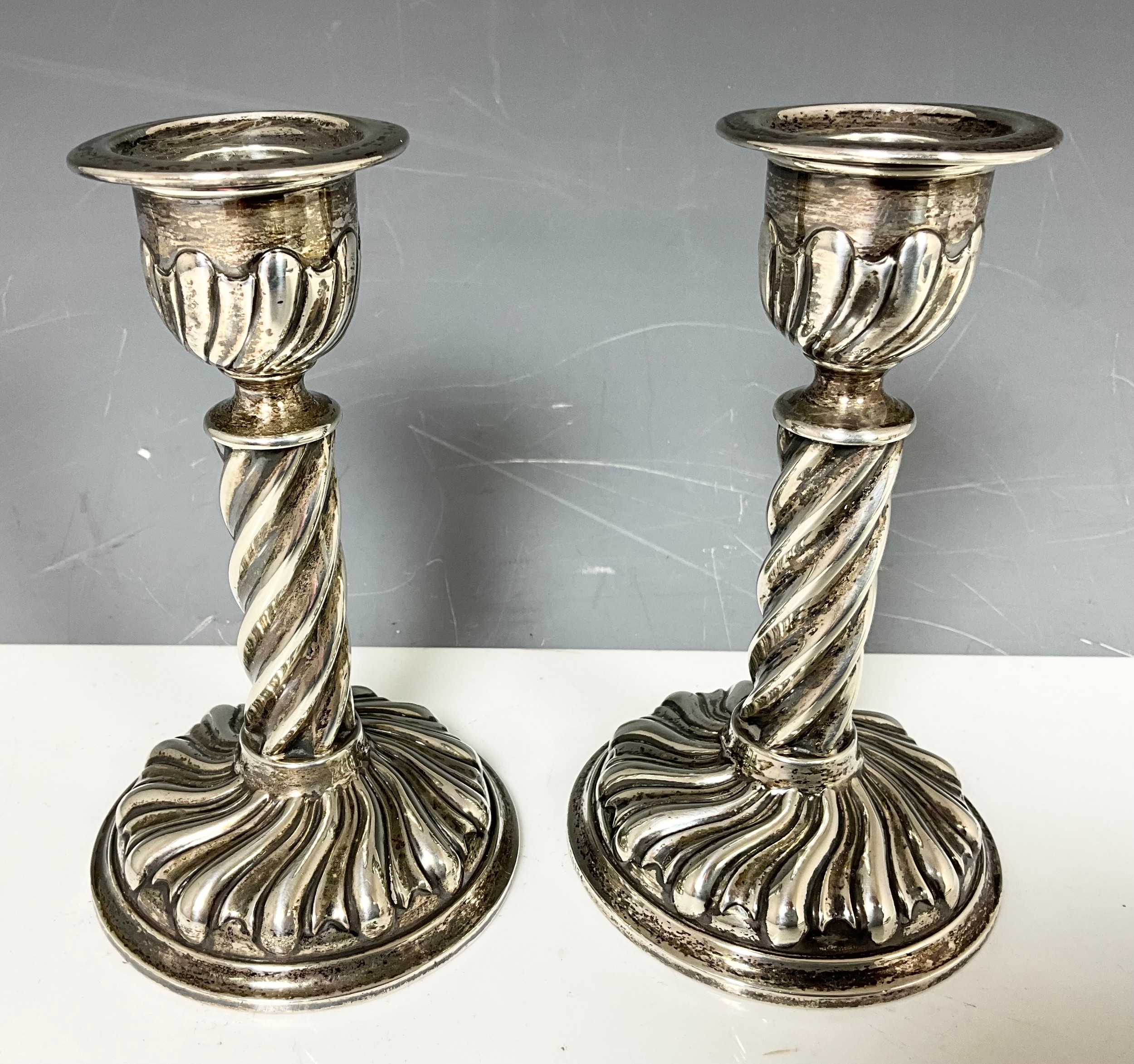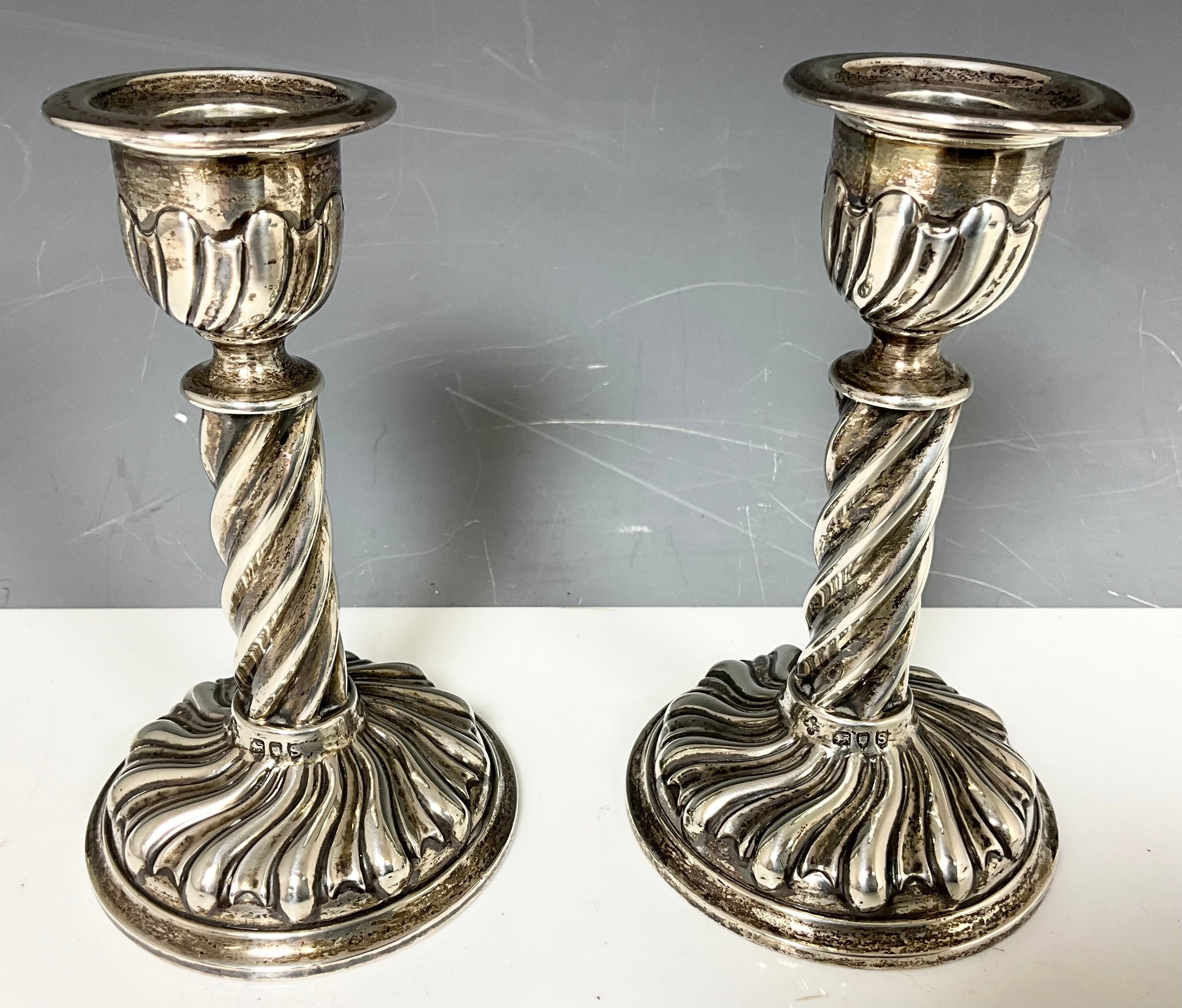 PAIR OF HALLMARKED HORACE WOODWARD & CO LONDON 1893 ORNATE CANDLSTICKS 14cm TALL WEIGHTED 709g GROSS