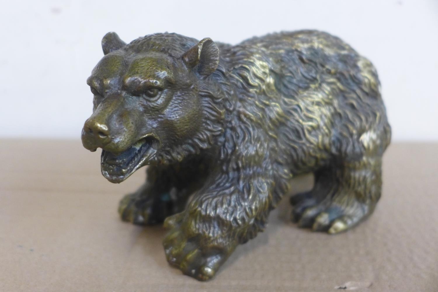 A small bronze figure of a grizzly bear