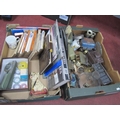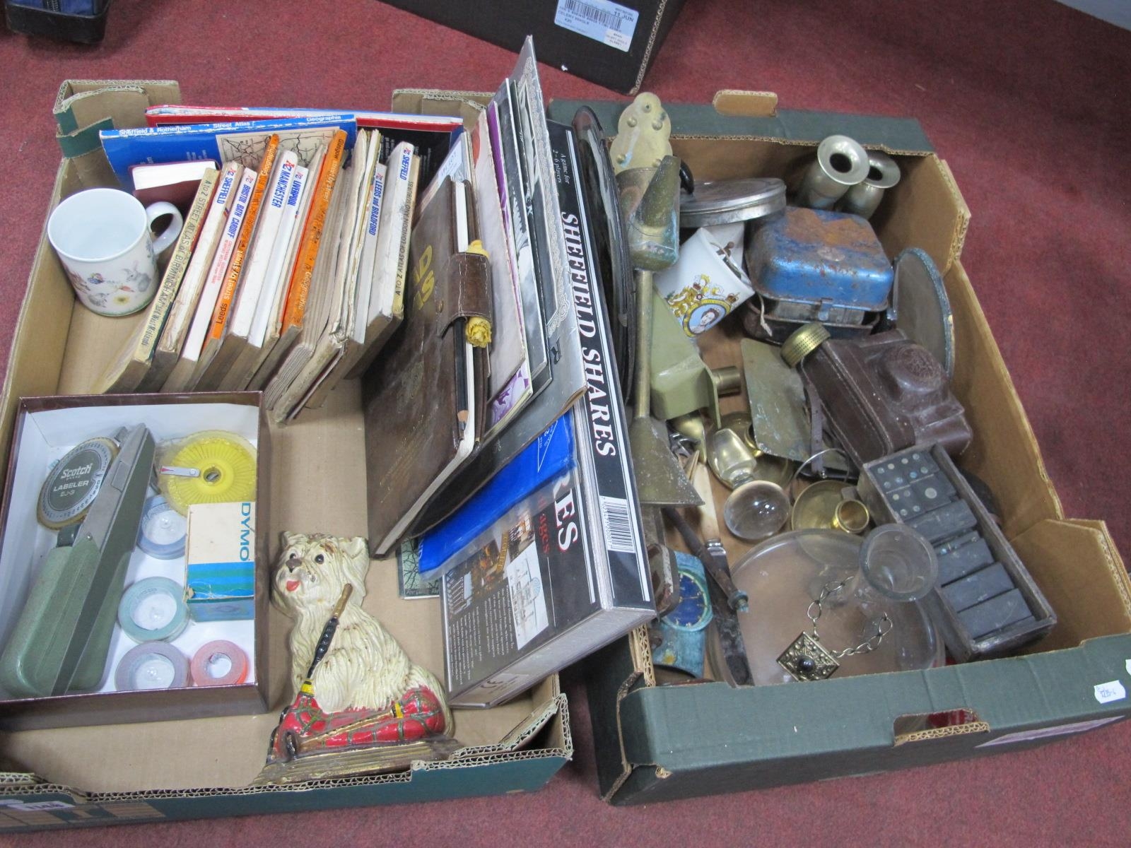 Ilford Camera, Scotch Brand Labeler, cast iron doorstop in the form of a Terrier, etc, Ordnance survey maps, street atlas:- Two Boxes.