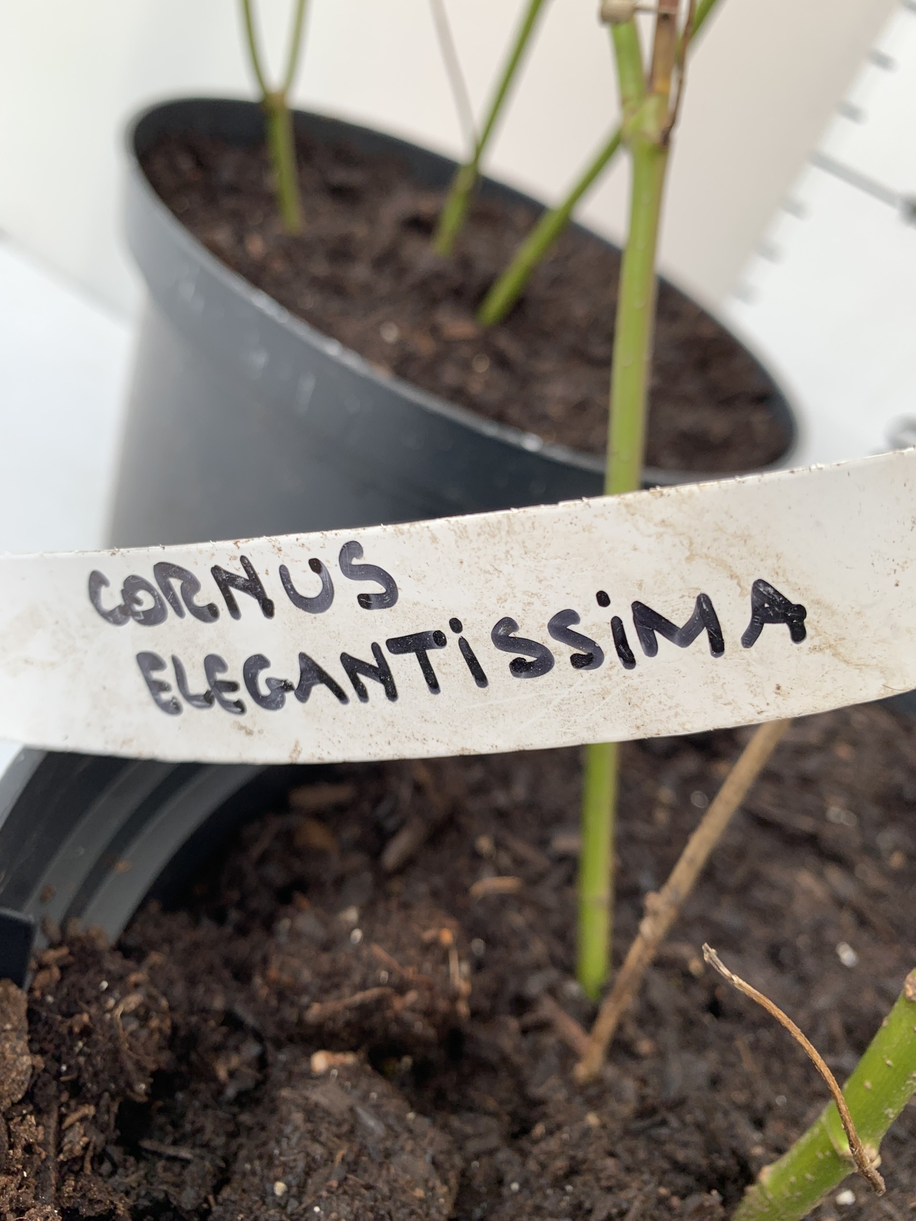 THREE LARGE CORNUS ELEGANTISSIMA IN 10 LTR POTS. APPROX 80-90CM TALL, TO BE SOLD FOR THE THREE