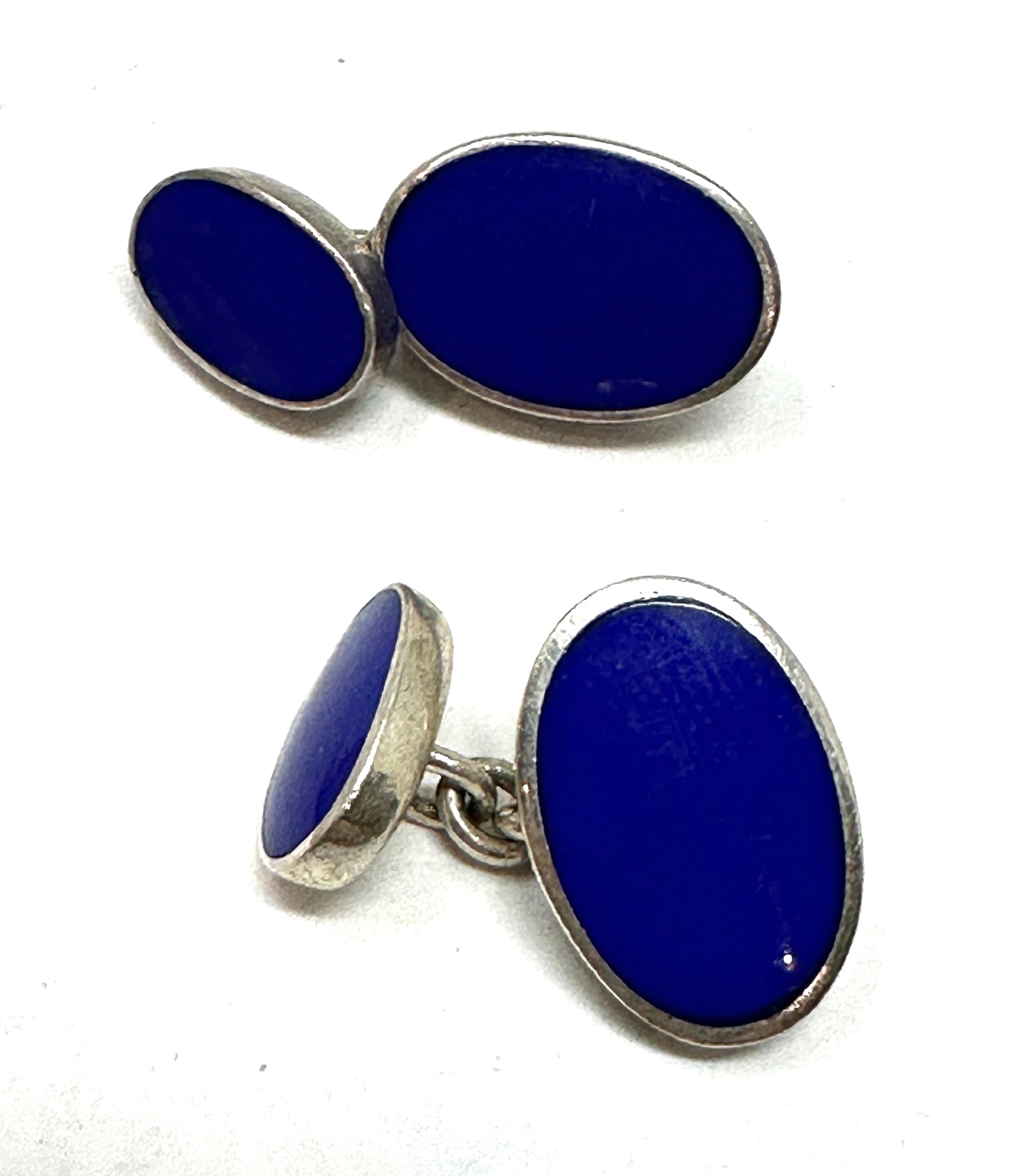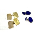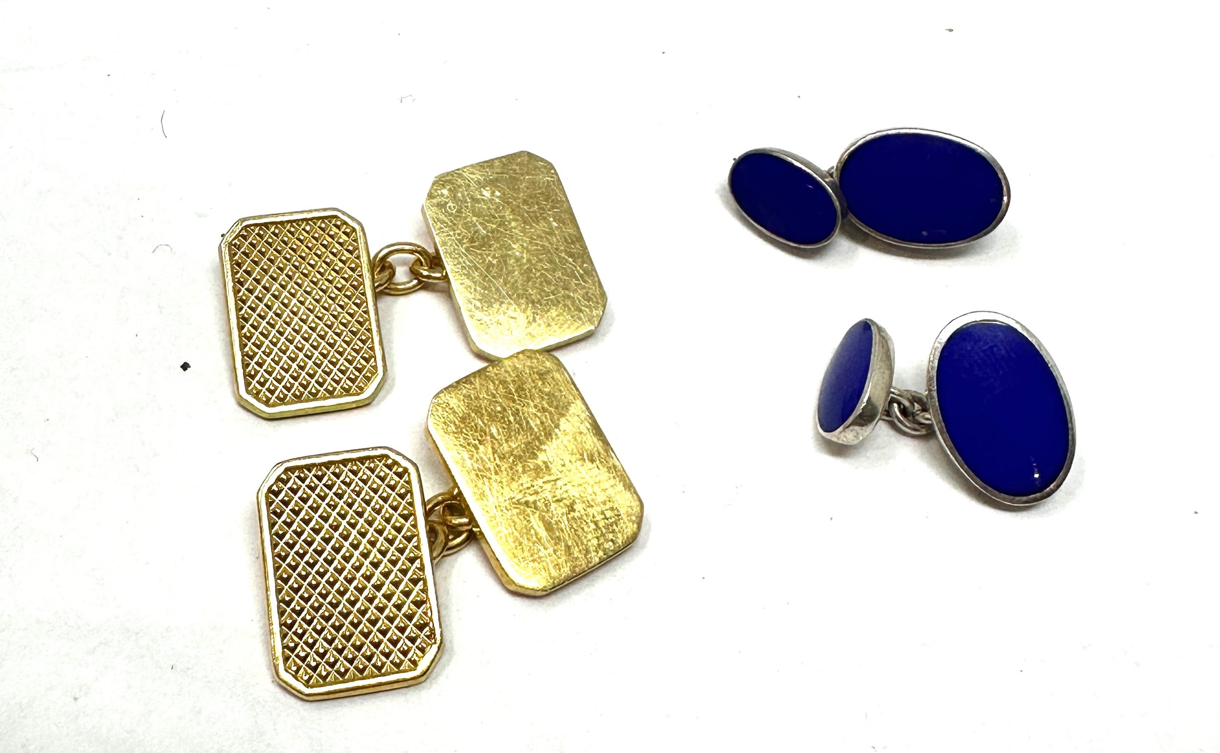 2 Pairs of heavy silver hallmarked cuff links inc blue enamel & gold gilt hallmarked ASP total weight 25g