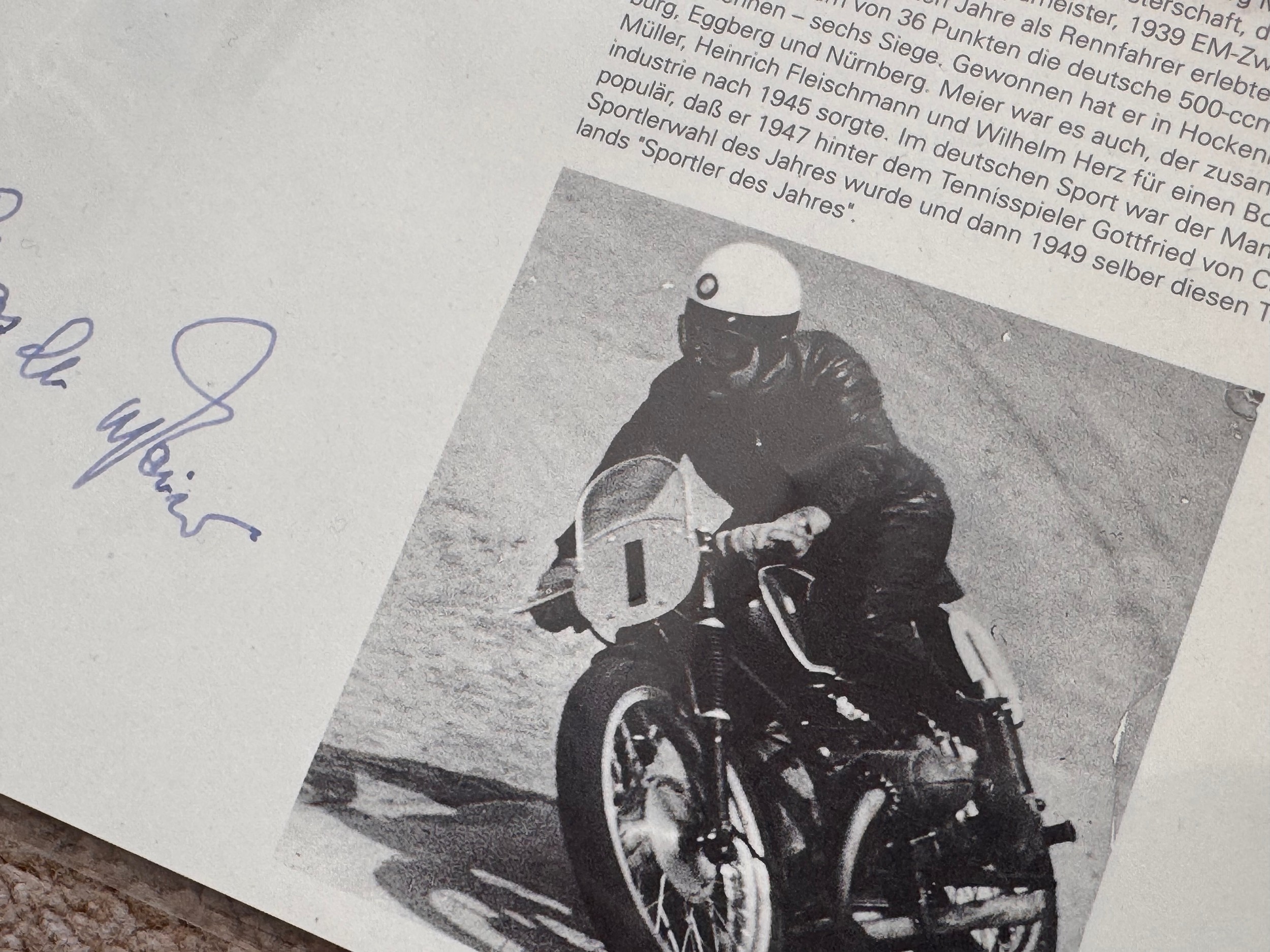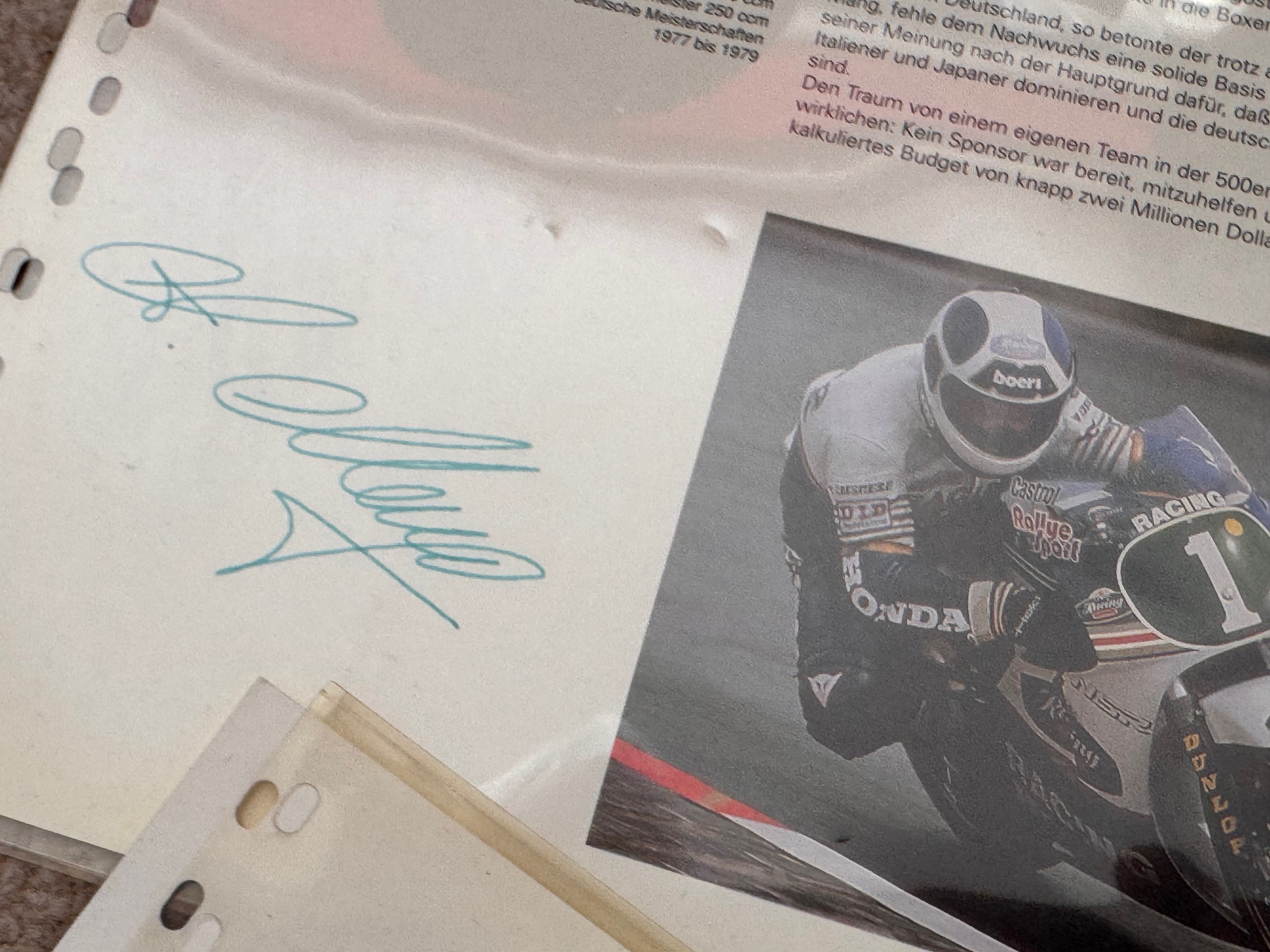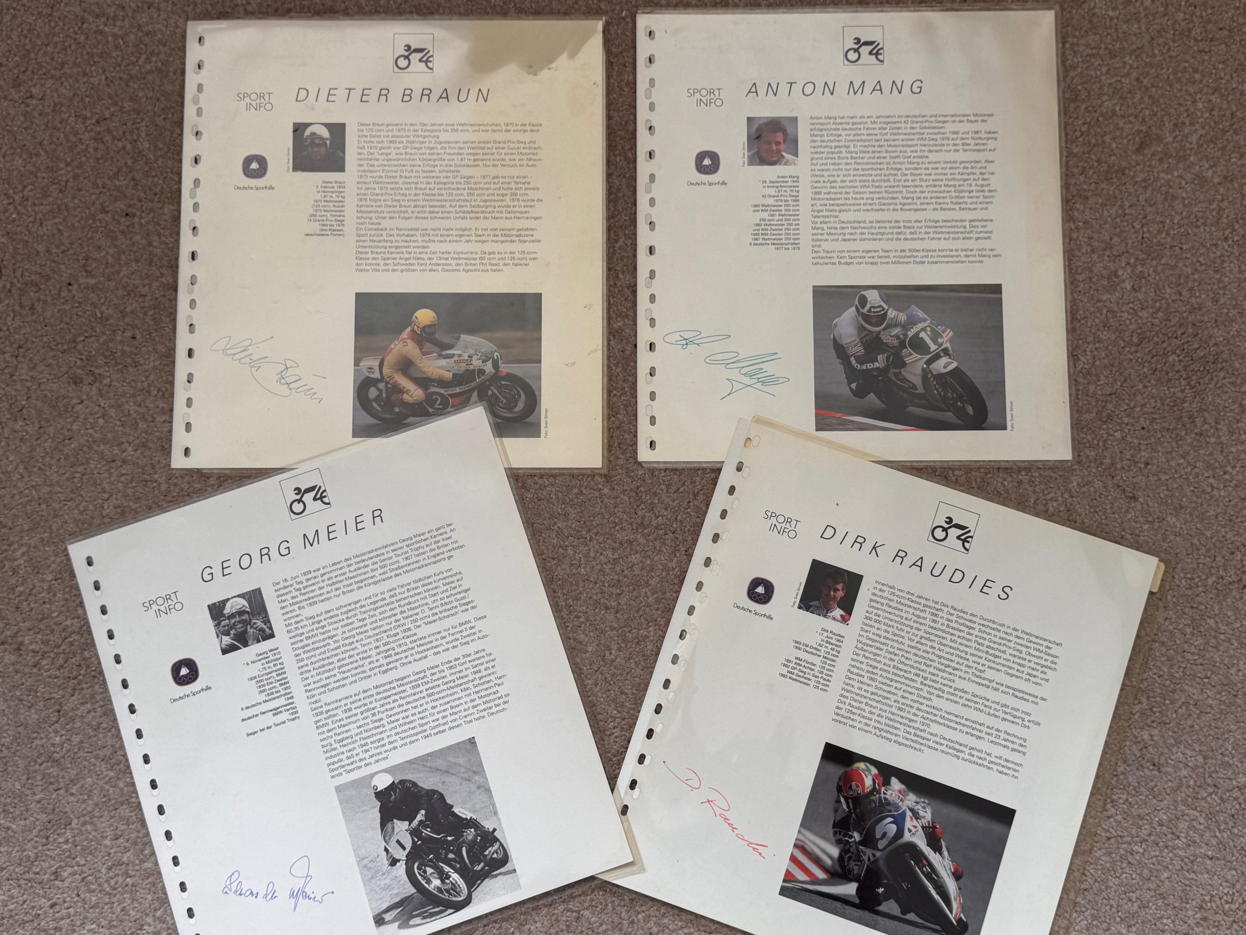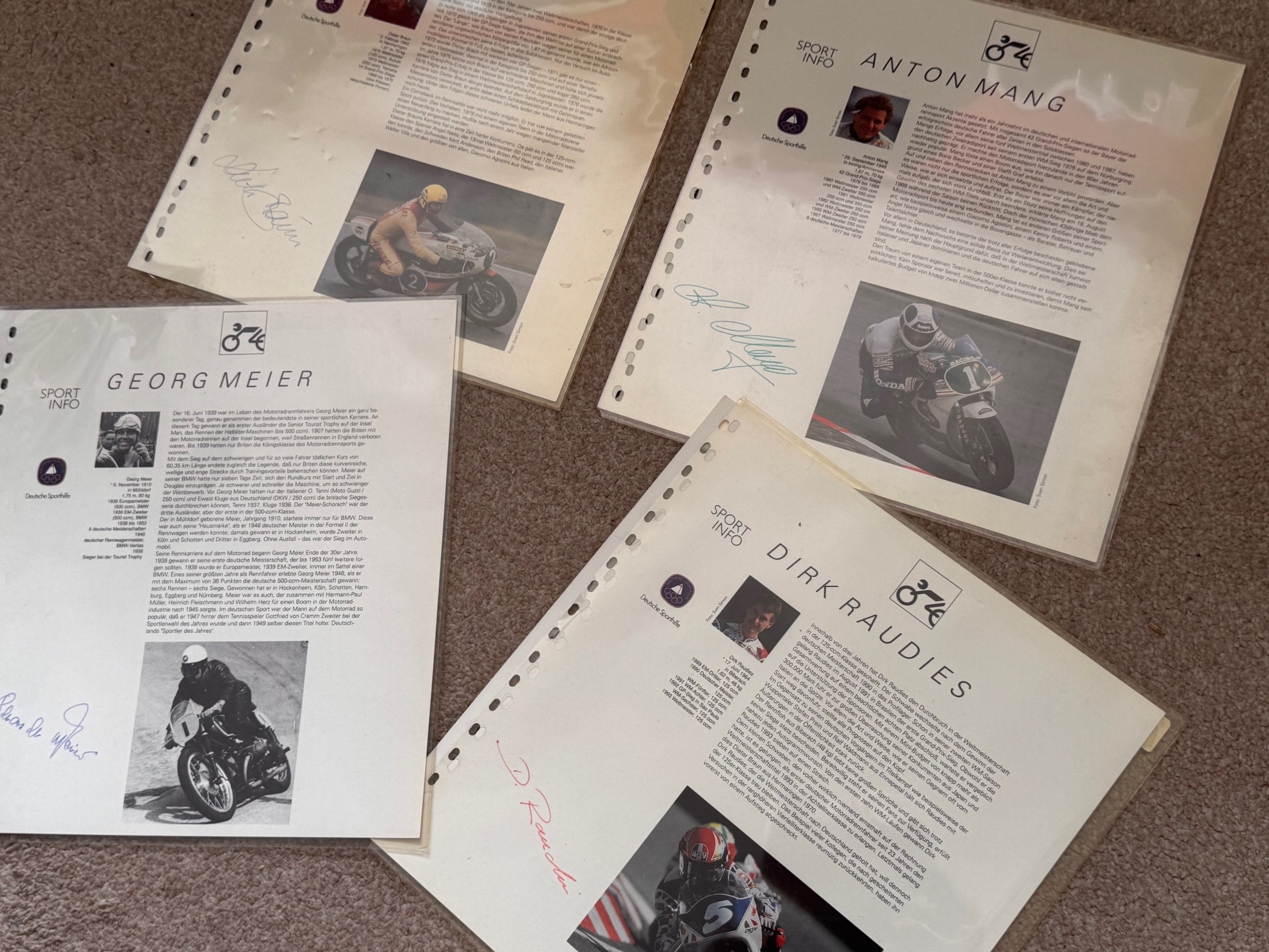 Automobila, autogtraphs, motorcycle racing photography, Ephemera, 4 signed career resumes for German motorcycle racers.
