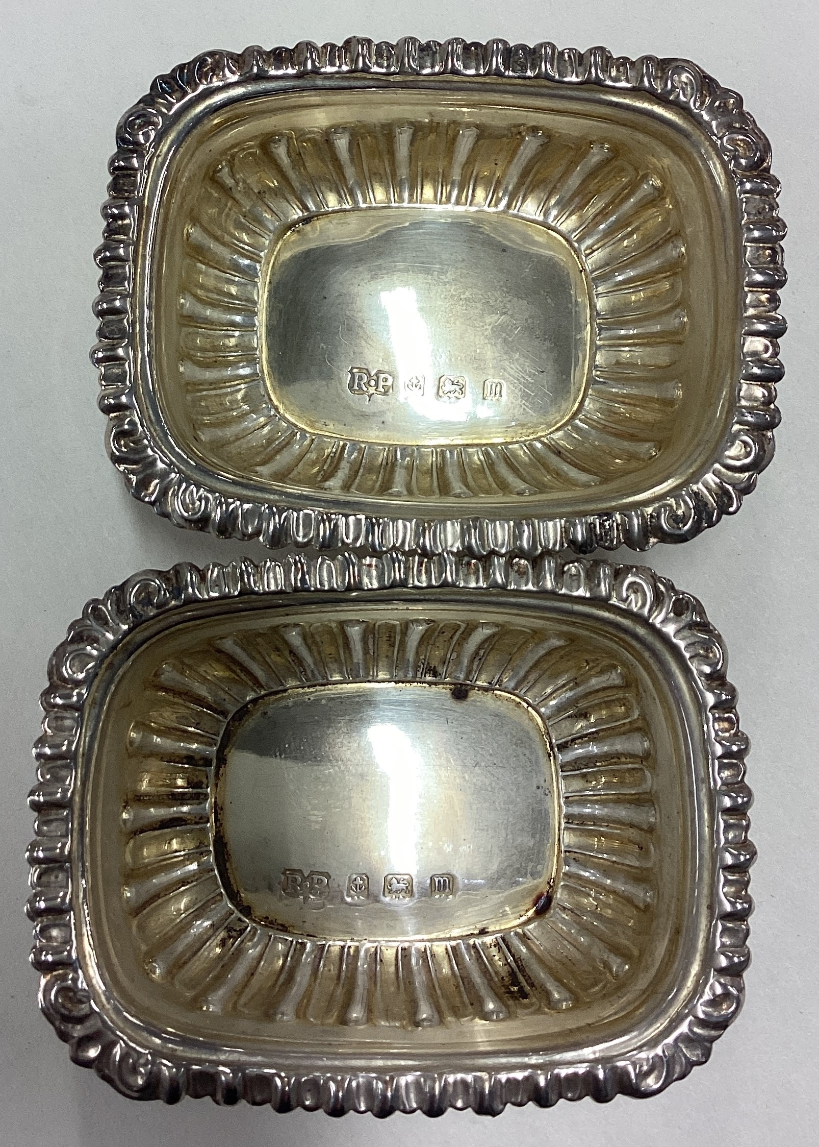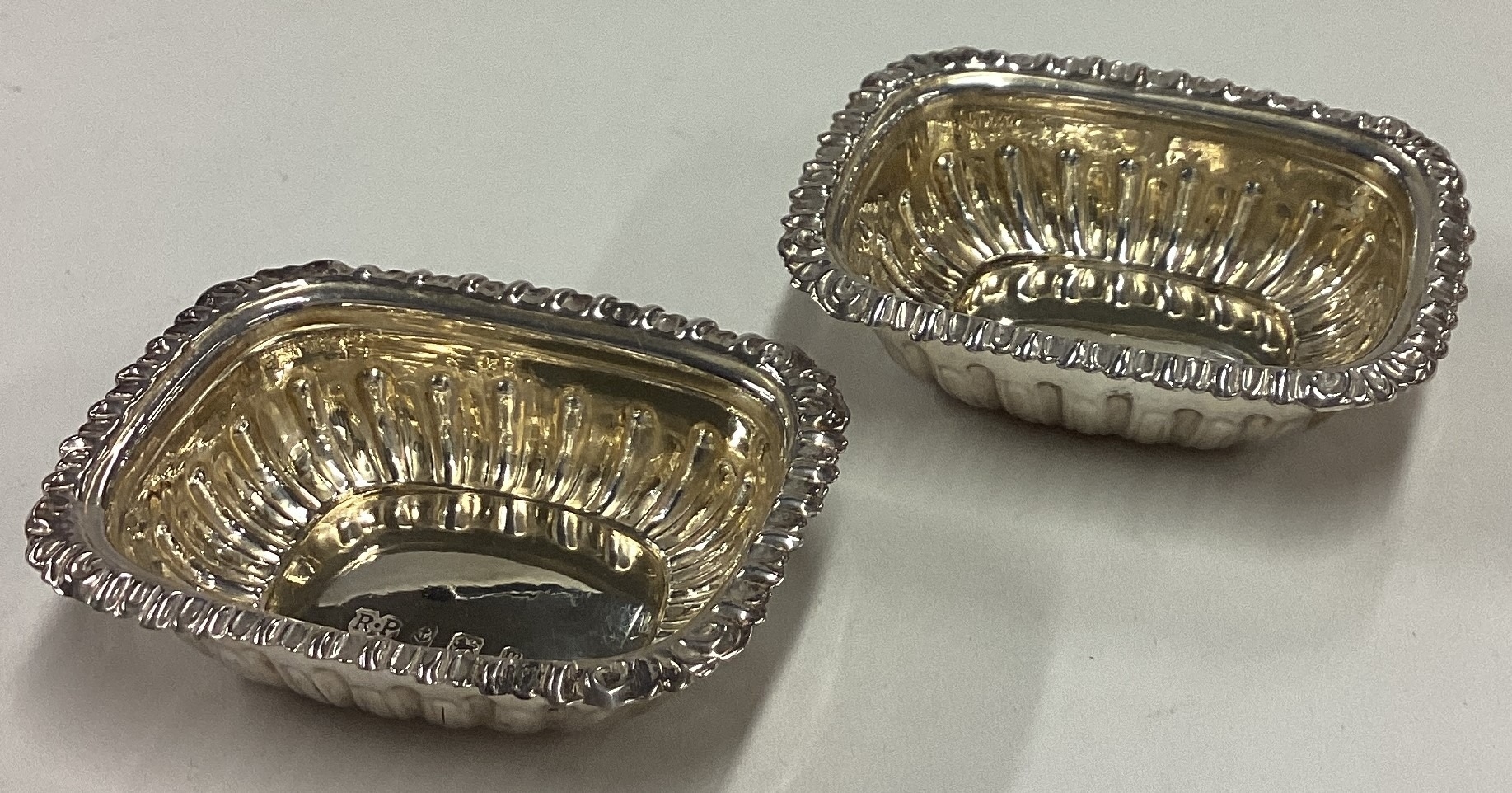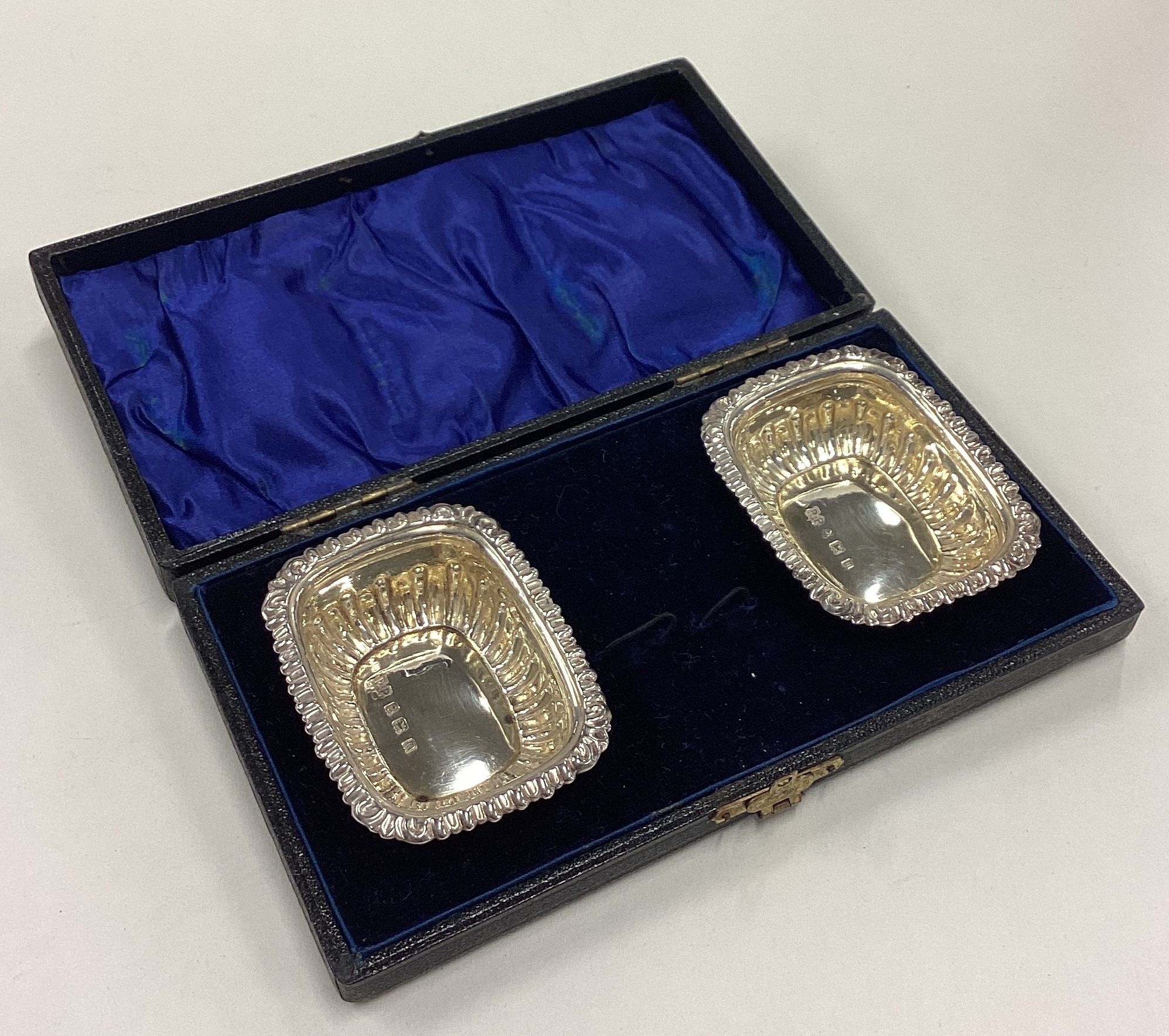 A pair of cased silver salts. Birmingham 1907. By RP. Approx. 22 grams. Est. £20 - £30.