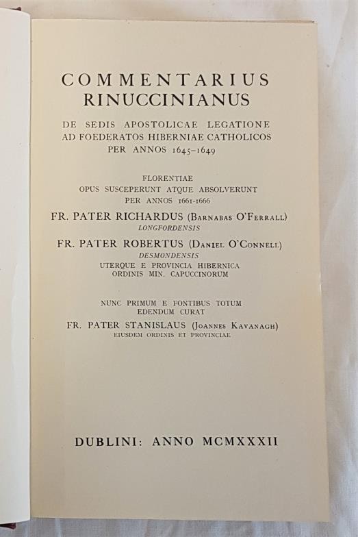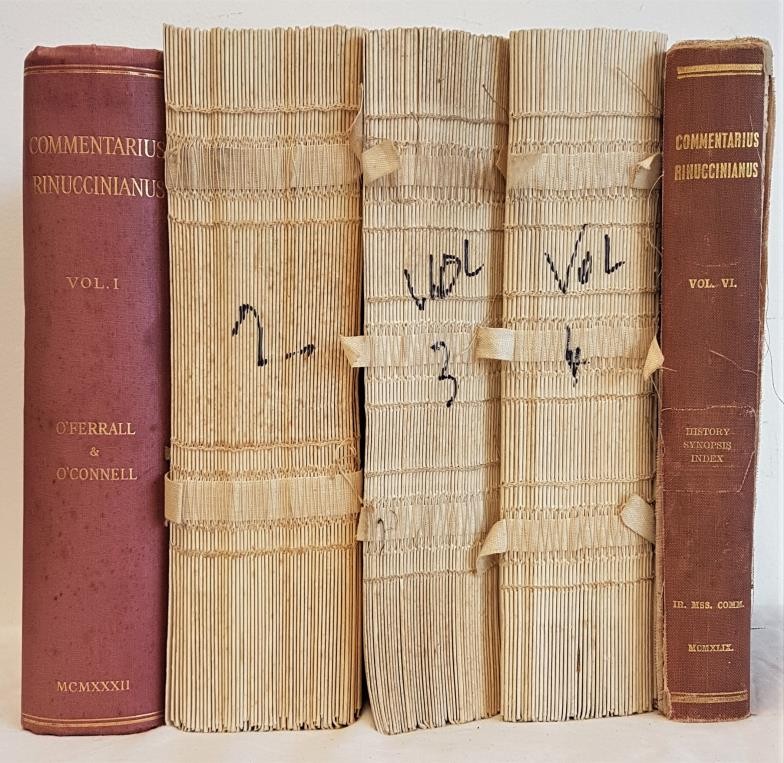 Commentarius Rinuccianus IMC Dublin 1932. Five vols ex 6, Vol 1, Vol 2, 3, 4 and 6. Vols 2,3,4 disbound. All important Vol 6 with history and index and synopsis, 1939. (5).