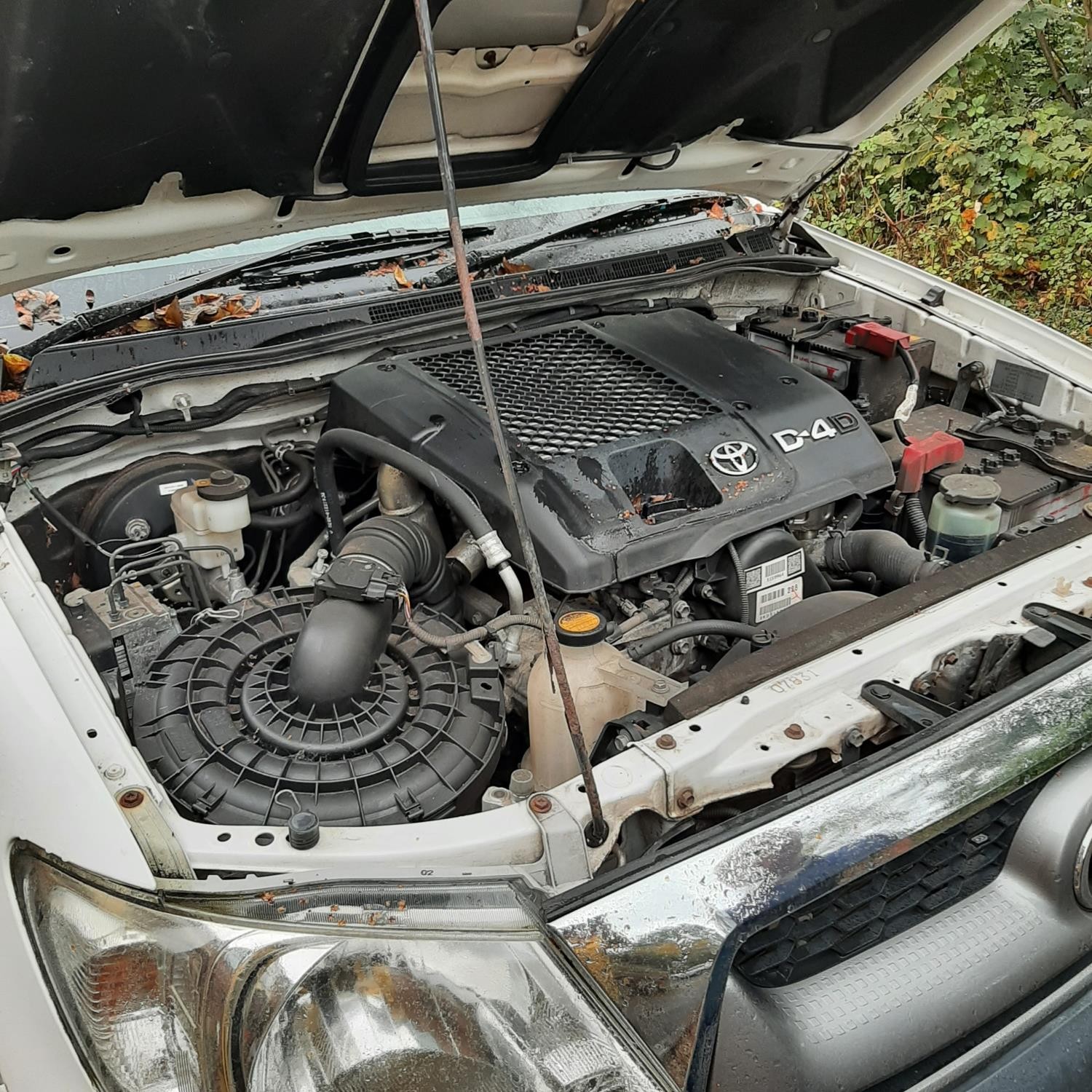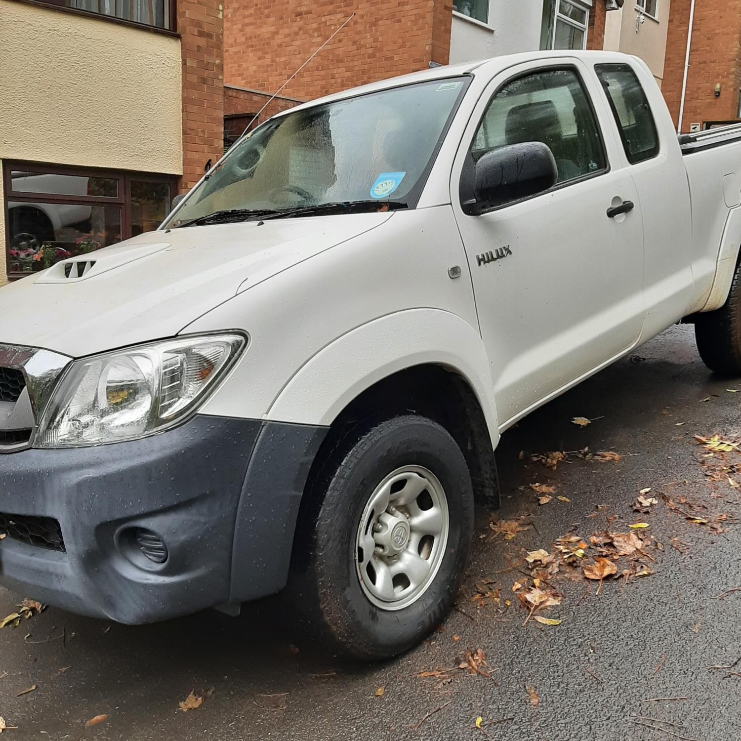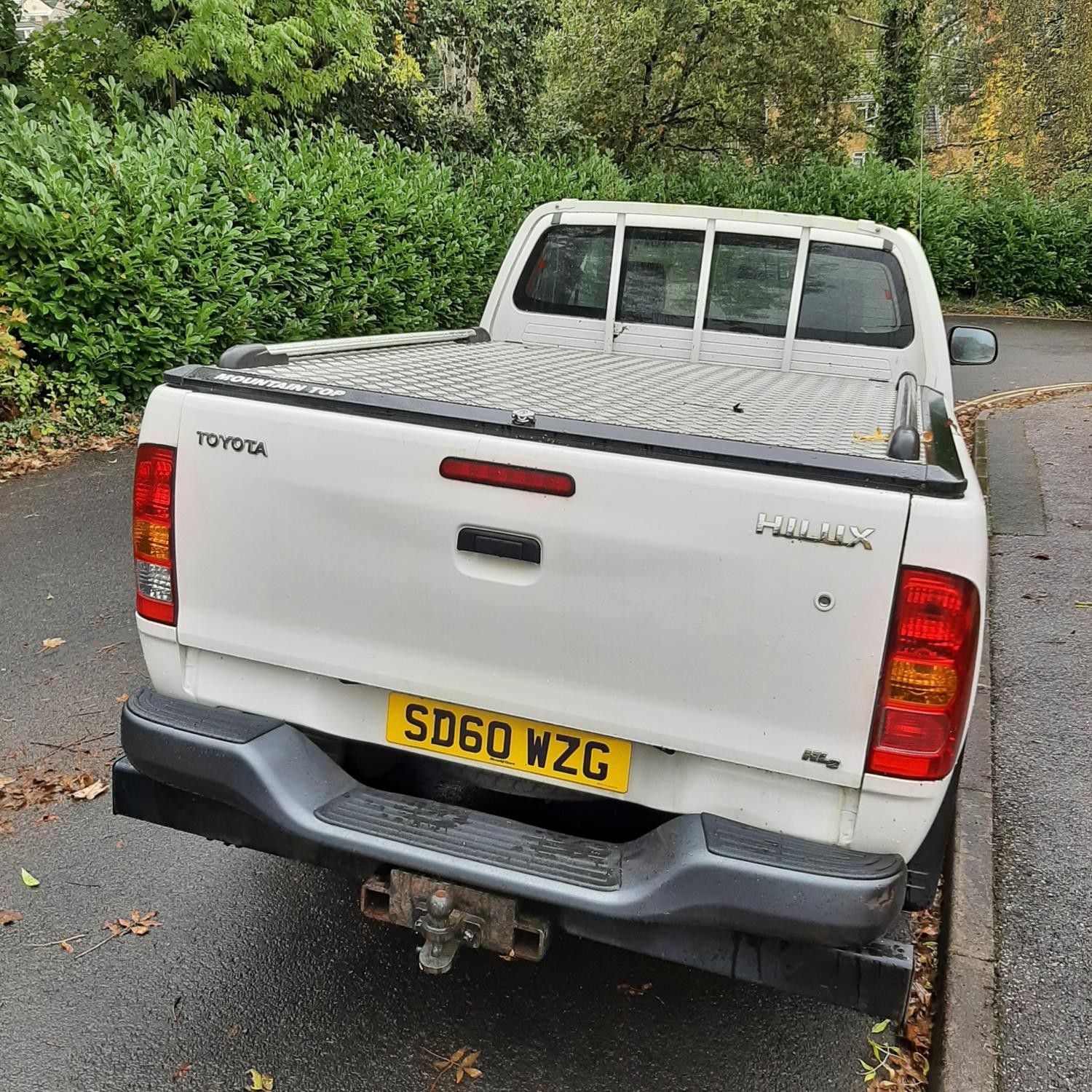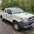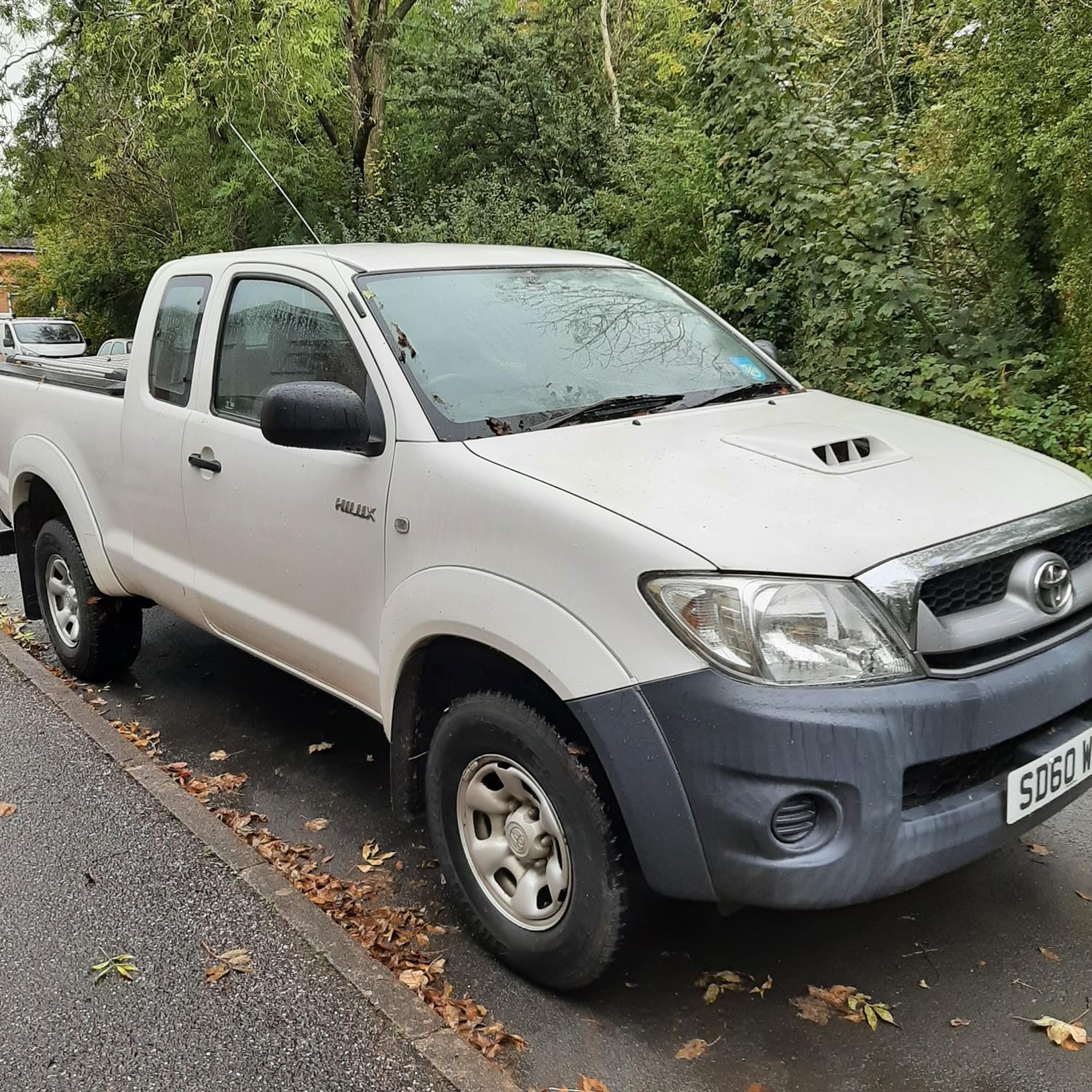 (NOTE buyers premium only 5%) White diesel Toyota Hilux extra cab pick up truck 2010 , MOT 14-12 -21, 2dr 4 seats. 1 owner from new furniture maker. Serviced and mot'd by main dealer every year from new, 27272 miles. Fitted with body liner from new, fitted with mountain top which simply lifts off. Small body rub offside rear, small dent to bumper, small stain on drivers seat. Hilux HL2 D-4D 4x4 ECB. First reg 14/12/2010 2940KG Gross 2494cc White