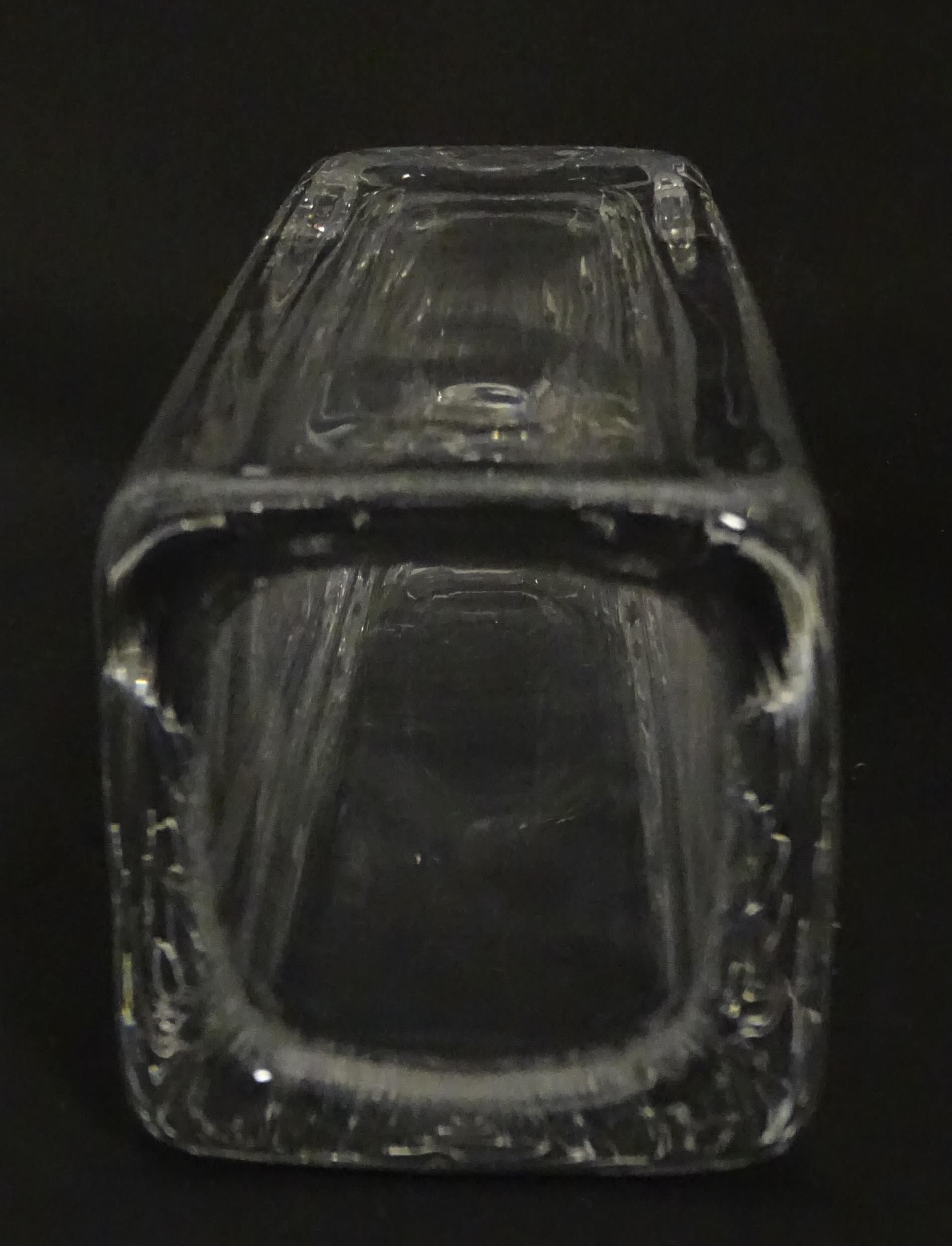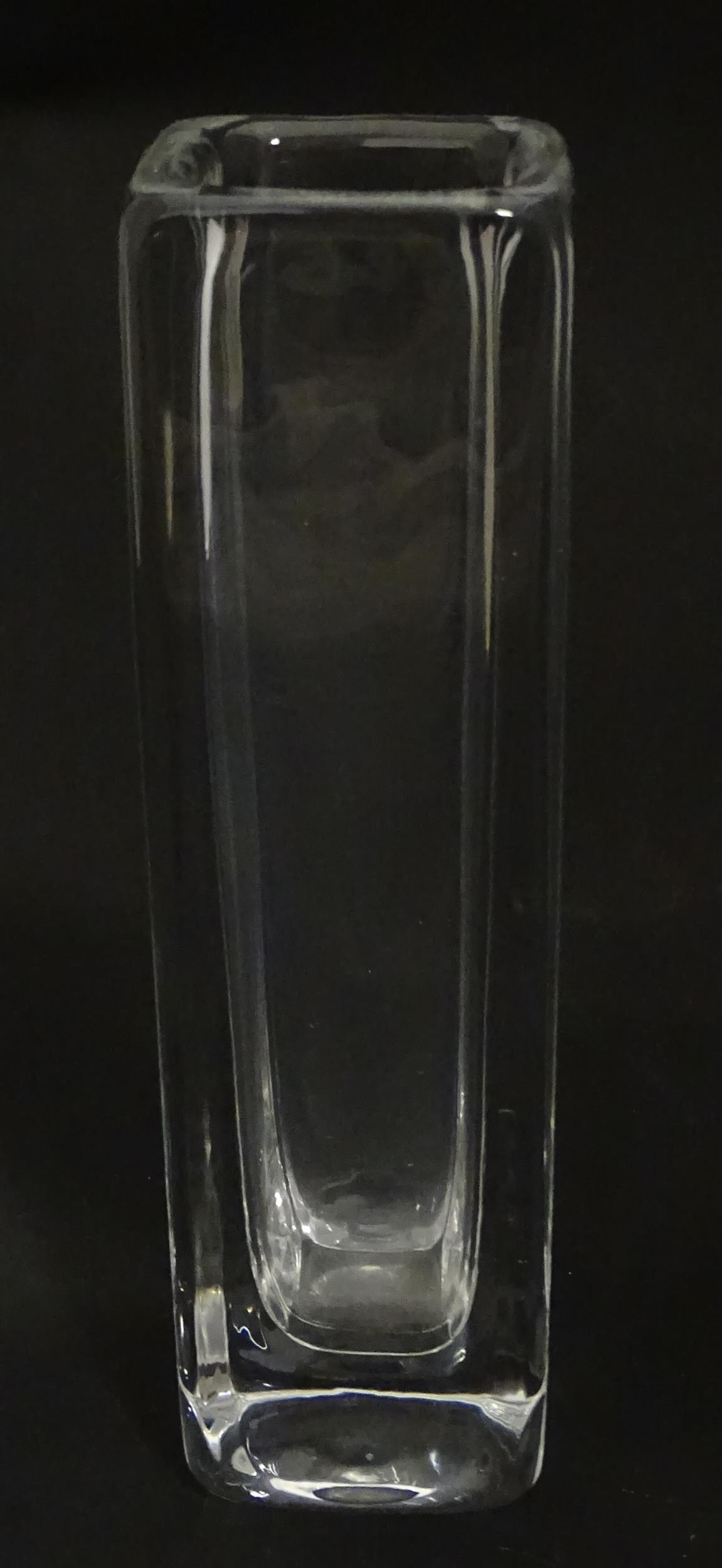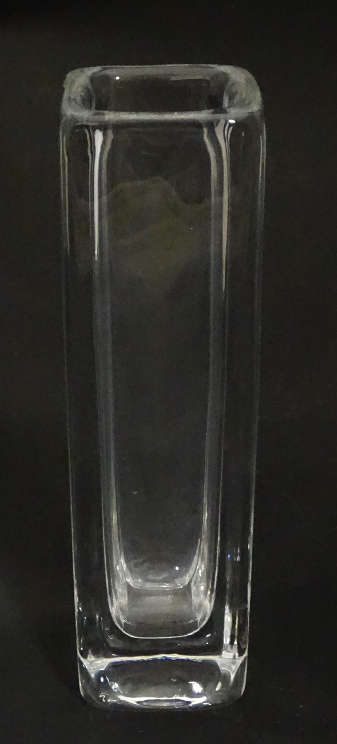 A Swedish Orrefors glass vase of squared form. Signed under. Approx. 9" high