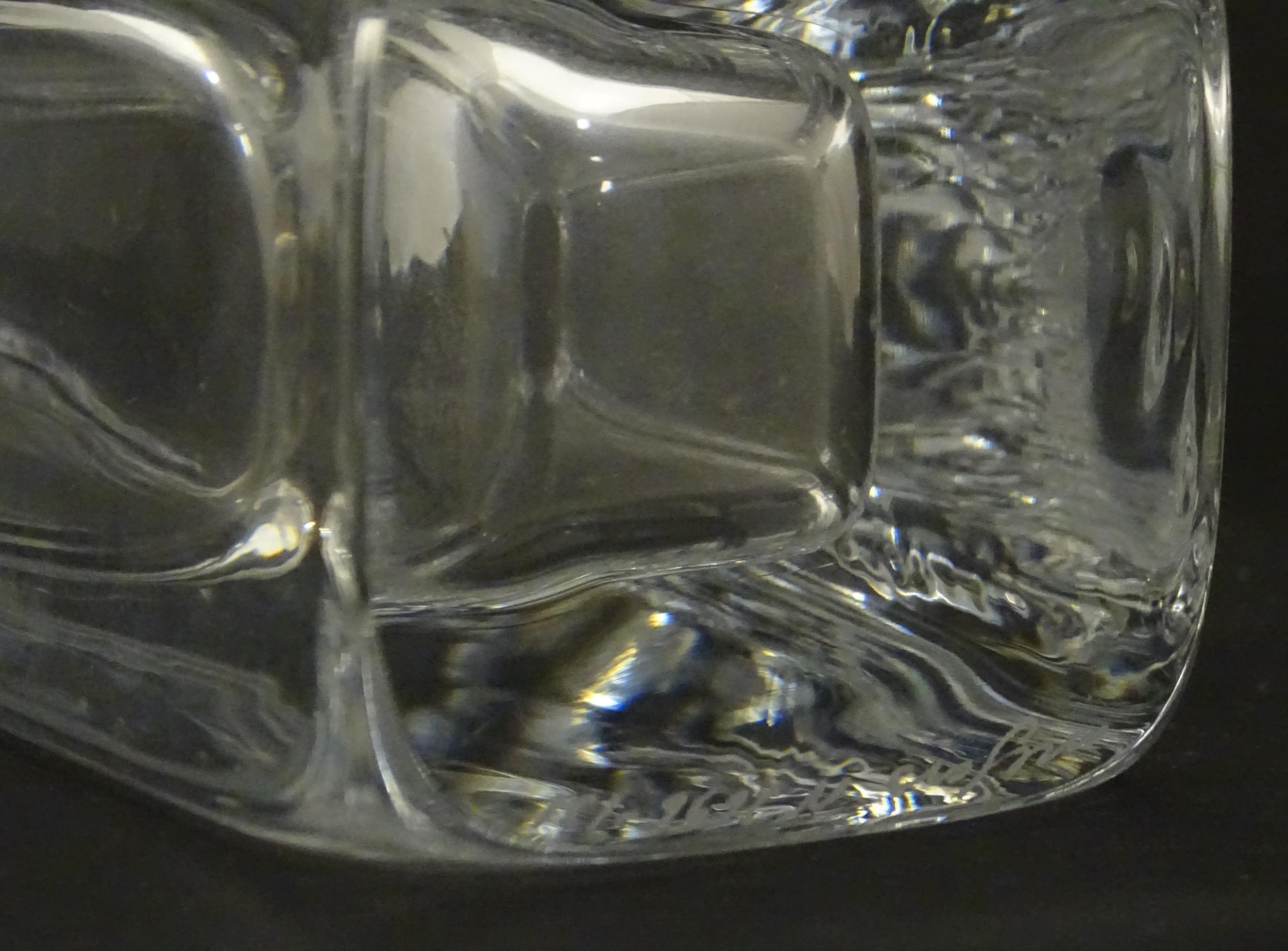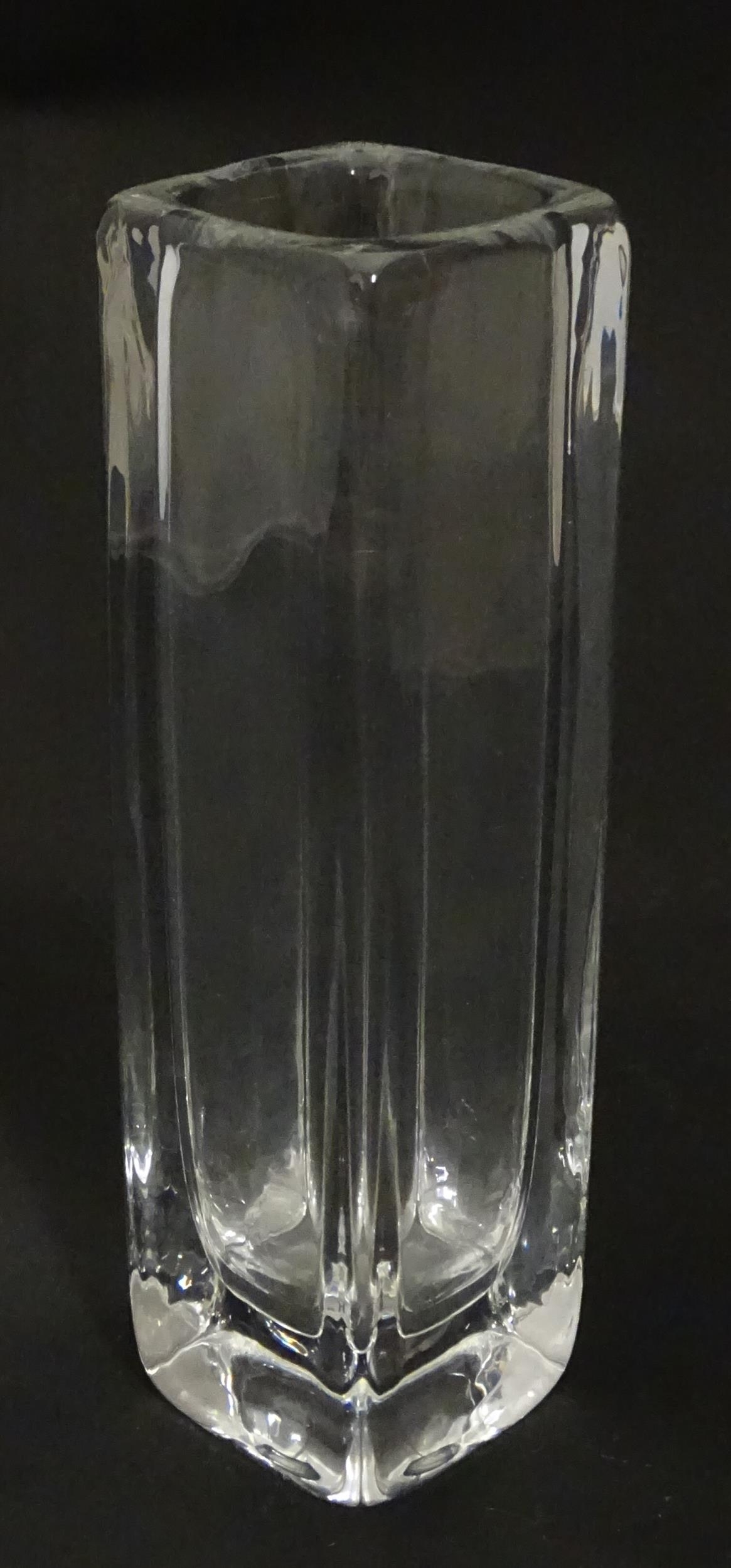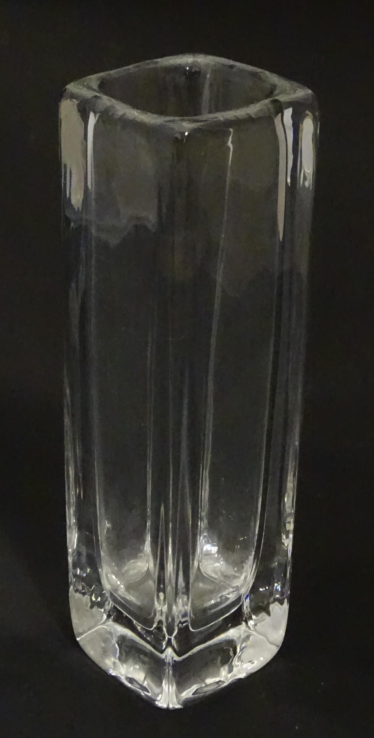 A Swedish Orrefors glass vase of squared form. Signed under. Approx. 9" high