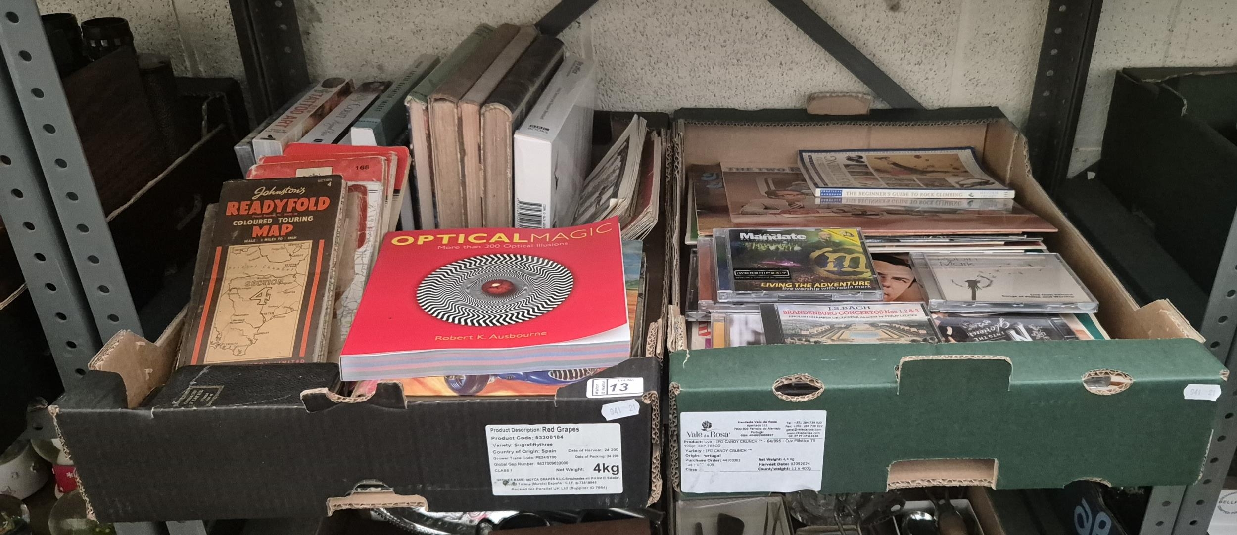 2 Boxes containing LPs, CDs, maps and books etc