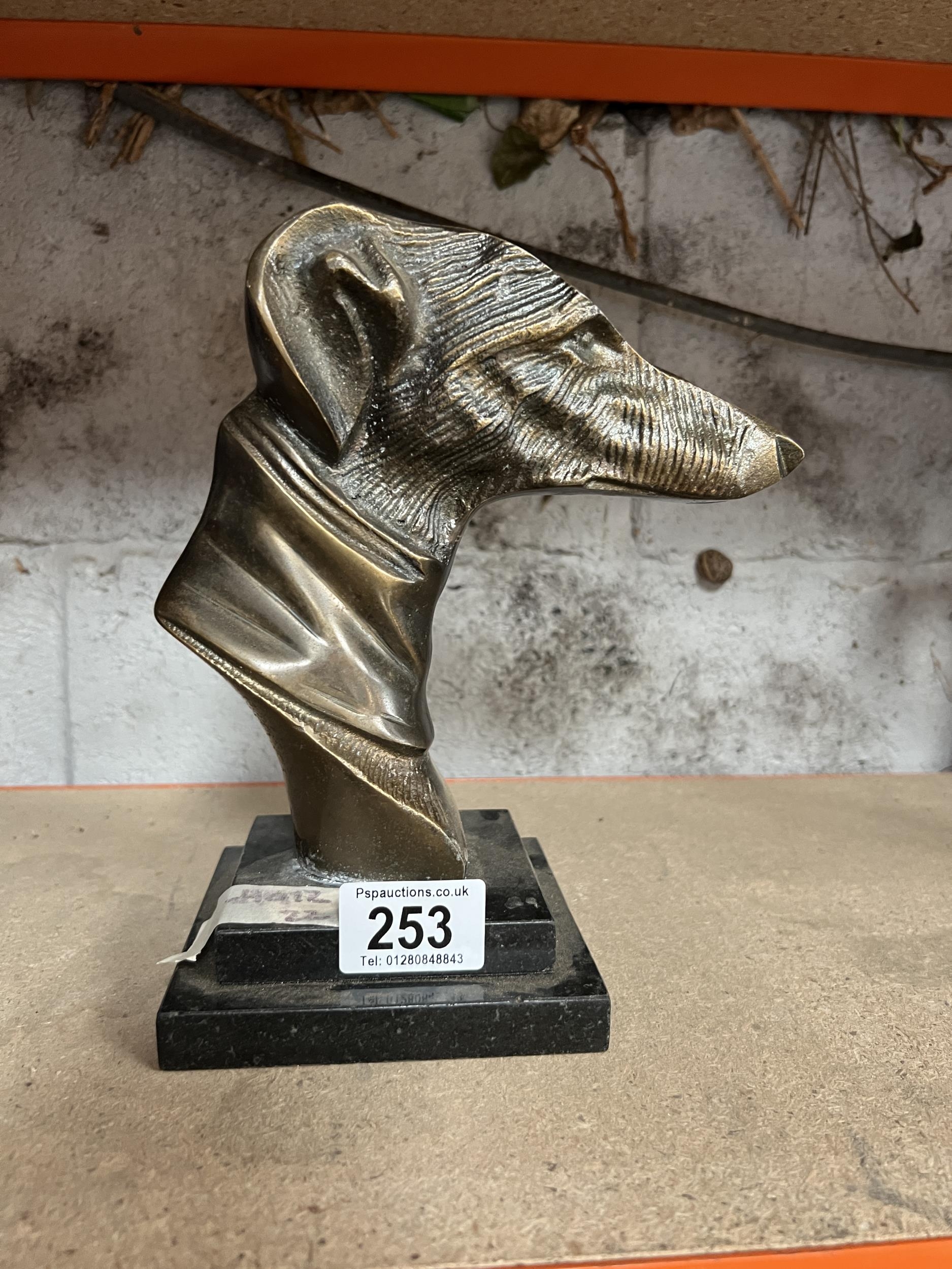 Dog head bust on plinth h412